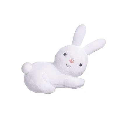 - Features 2 shiny stars and 2 cute plush bunny figures hanging on white ribbons under a circular open canopy in a soft pink color