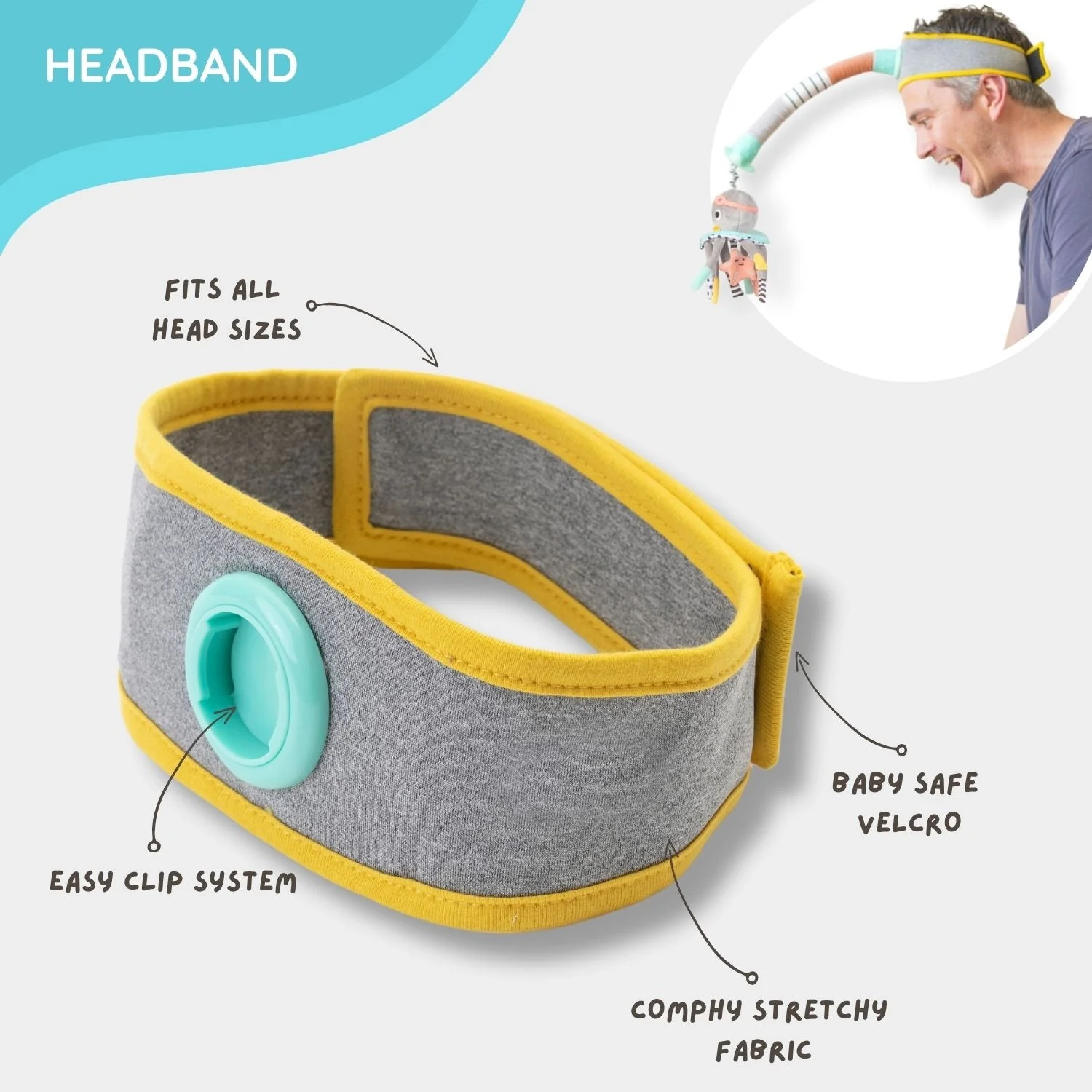 Comfy, Adjustable Headband: Soft, baby-safe velcro ensures this headband fits pretty much any head size. Whether you’re team mom or dad (or anyone stepping up to the diaper changing table), you’re covered!