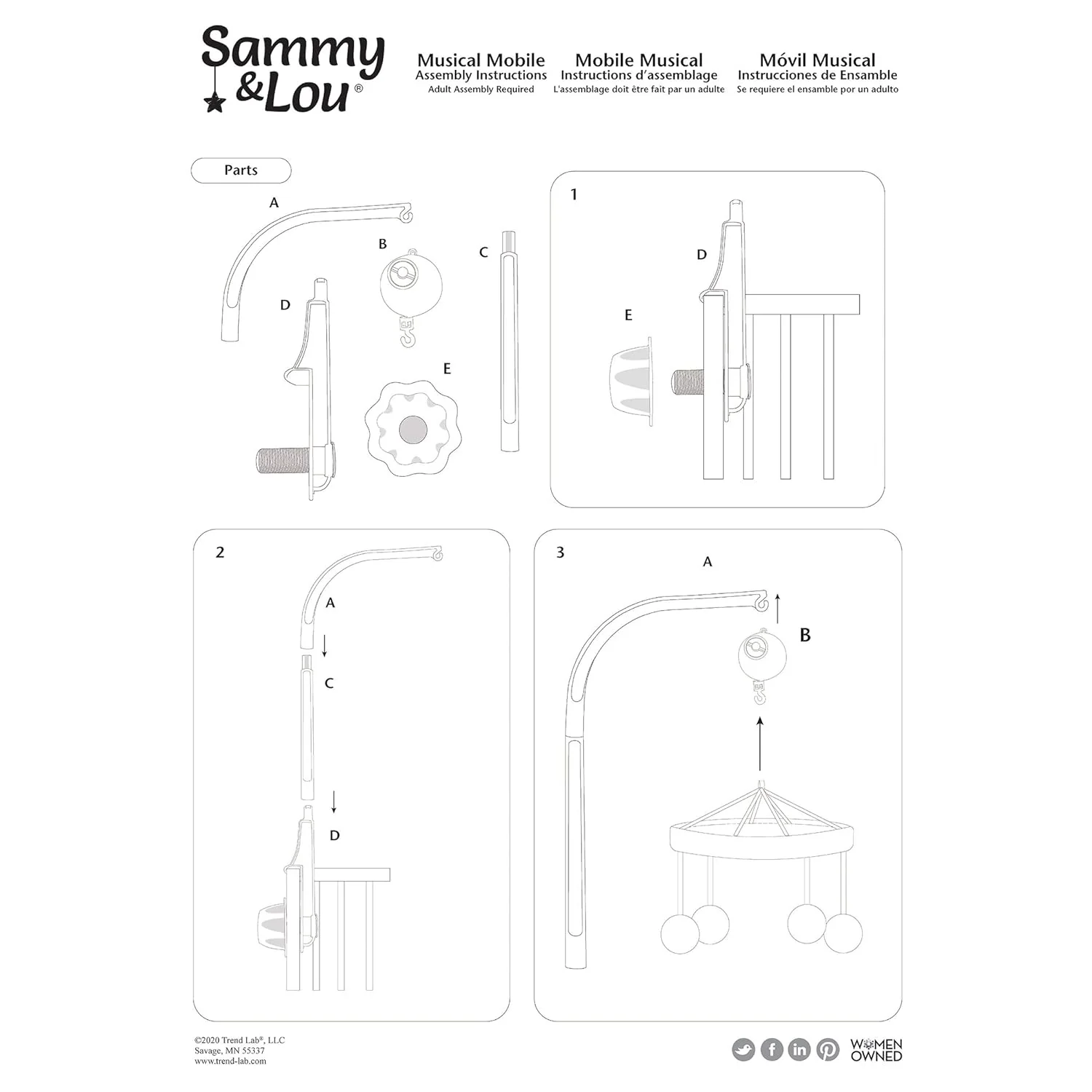 - WARNING: Possible entanglement or strangulation injury. Remove mobile when baby begins to push up on hands and knees.