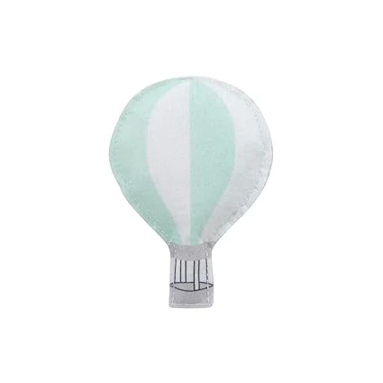 - Features 3 plush puffy clouds and 3 balloons hanging on white ribbons under a circular open grey canopy