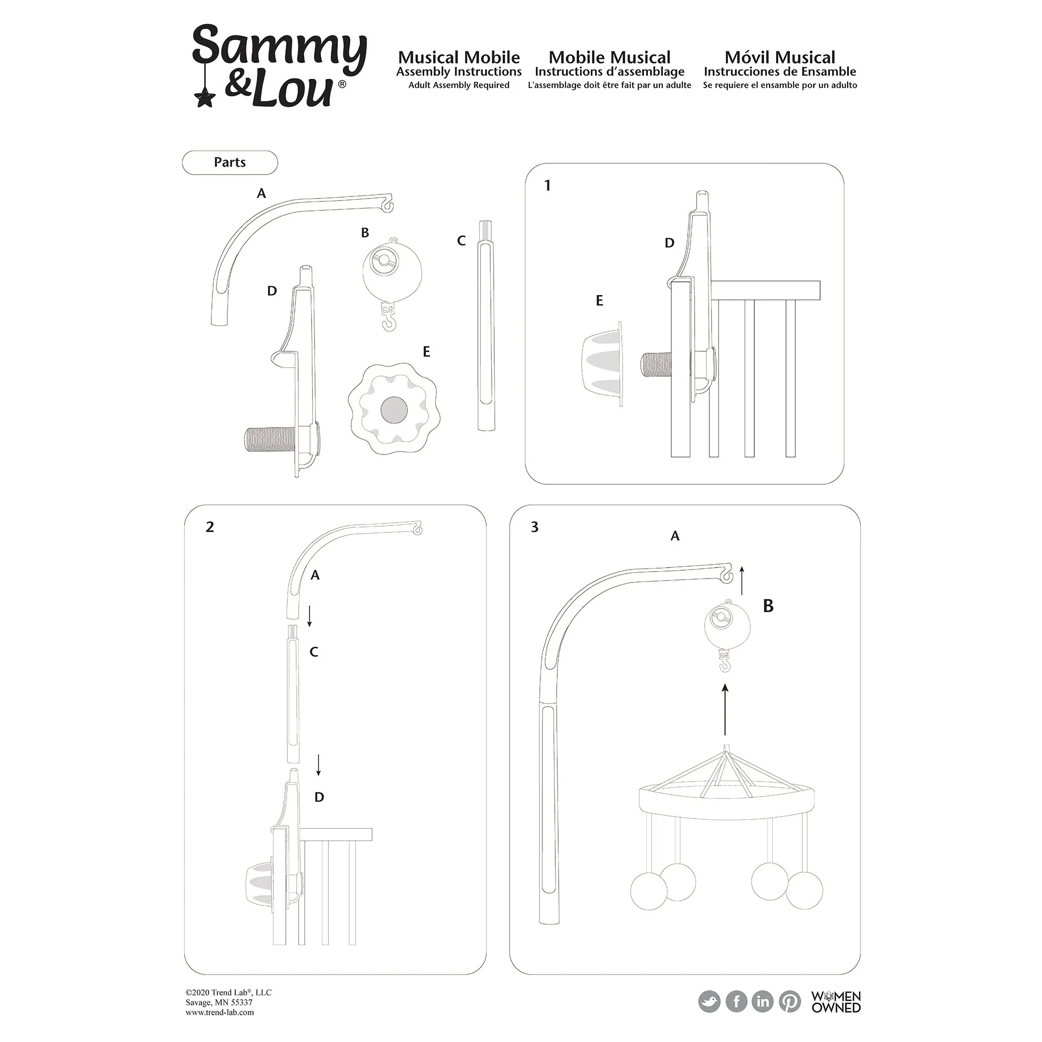 Encourage eye tracking and sound perception skills with this Sloth Musical Crib Mobile by Sammy and Lou ®. A solid light gray banded mobile ring features four playful sloths suspended from decorative white ribbons that slowly rotate to Brahms ™ Lullaby.