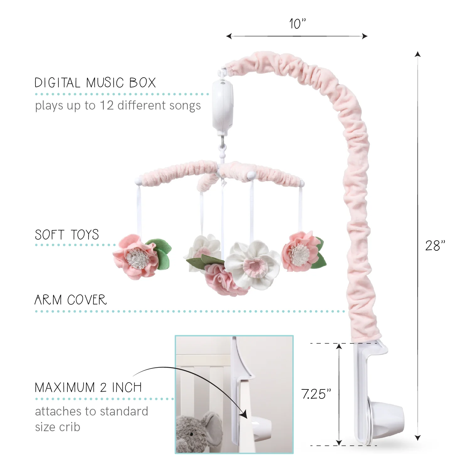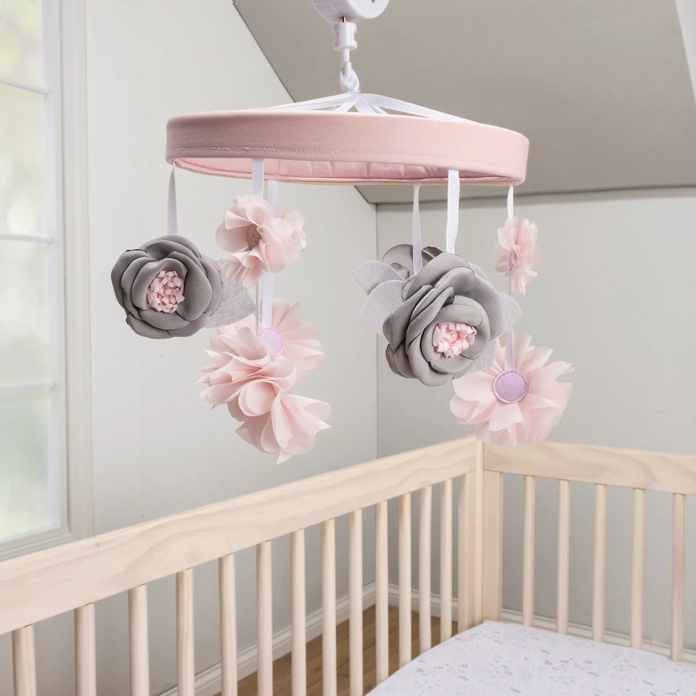 Lambs & Ivy Signature Botanical Baby Pink Floral Musical Baby Crib Mobile
