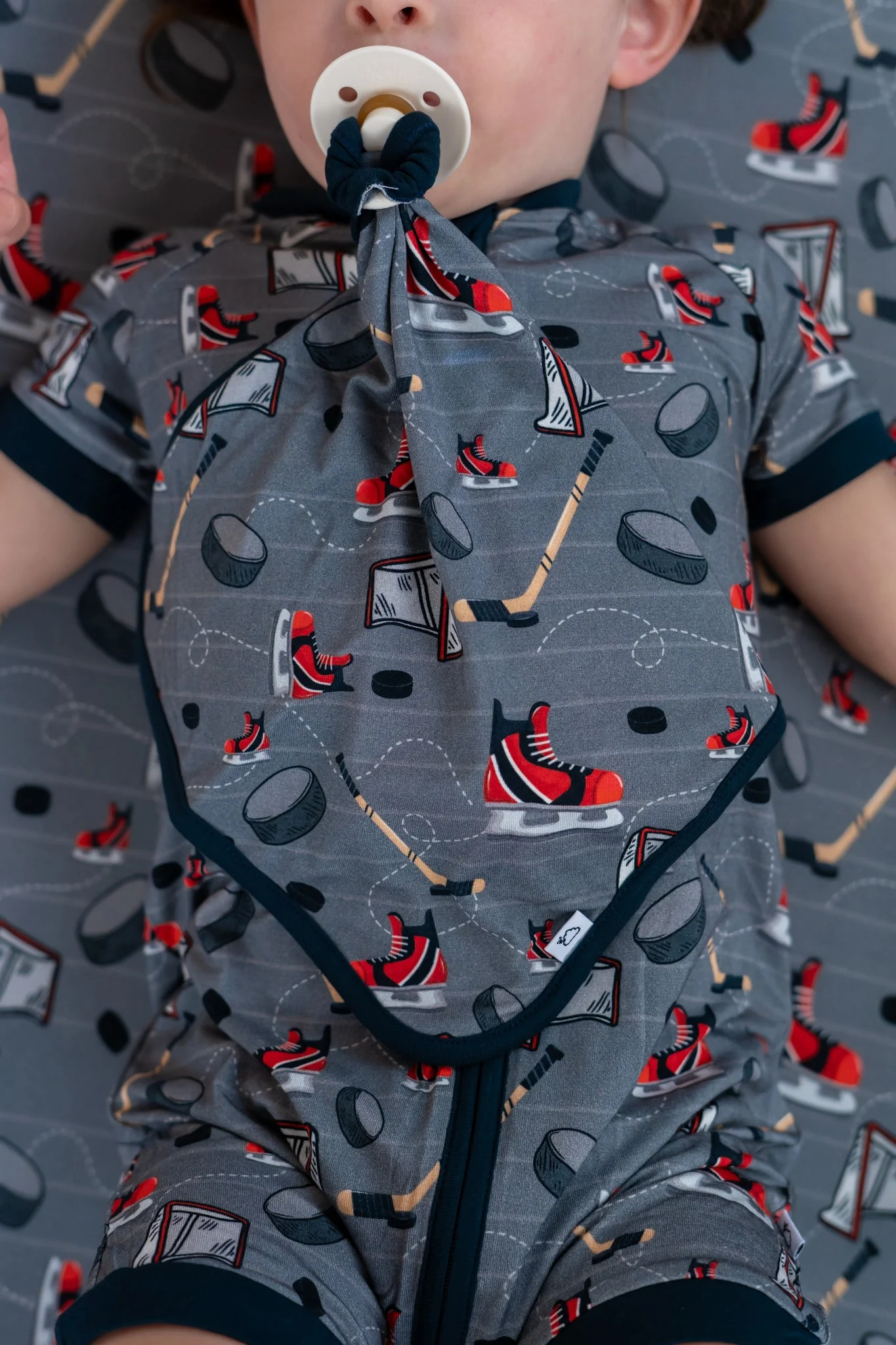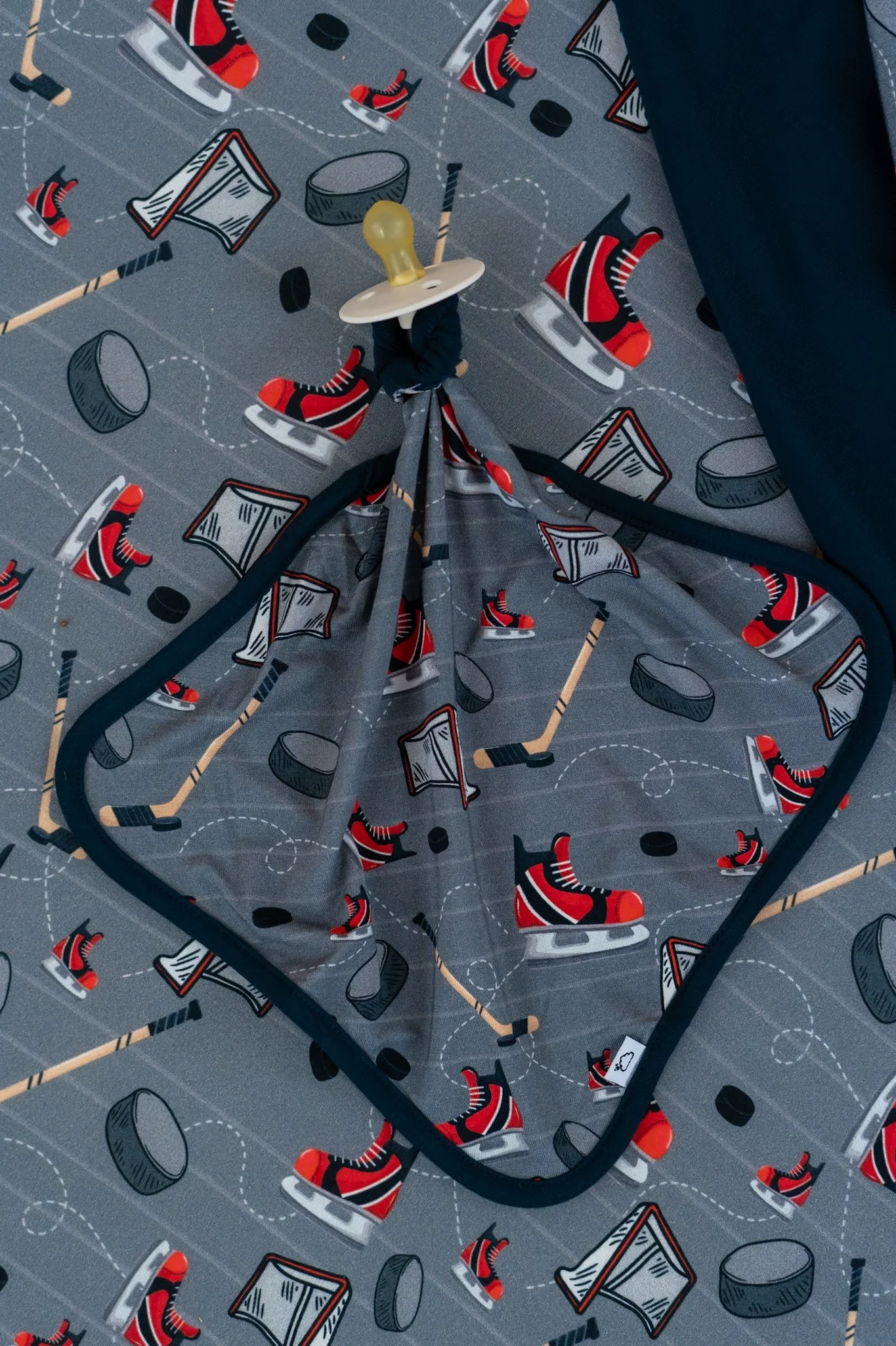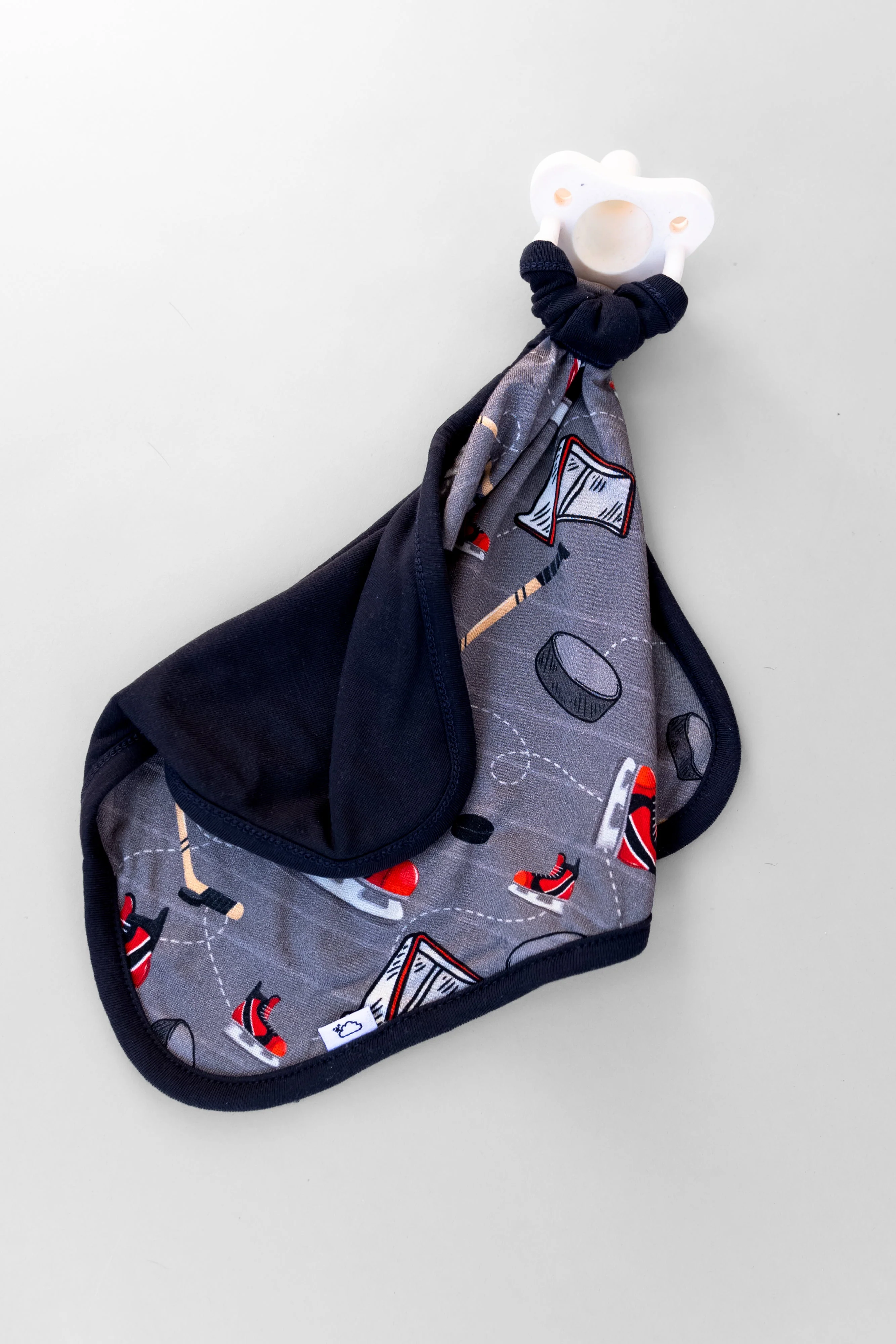 Get ready to hit the ice with the At The Rink Dream Lovey! This lovey features a convenient pacifier holder and is made of soft and comfortable bamboo material. Keep your little one cozy while showing off your love for the rink.