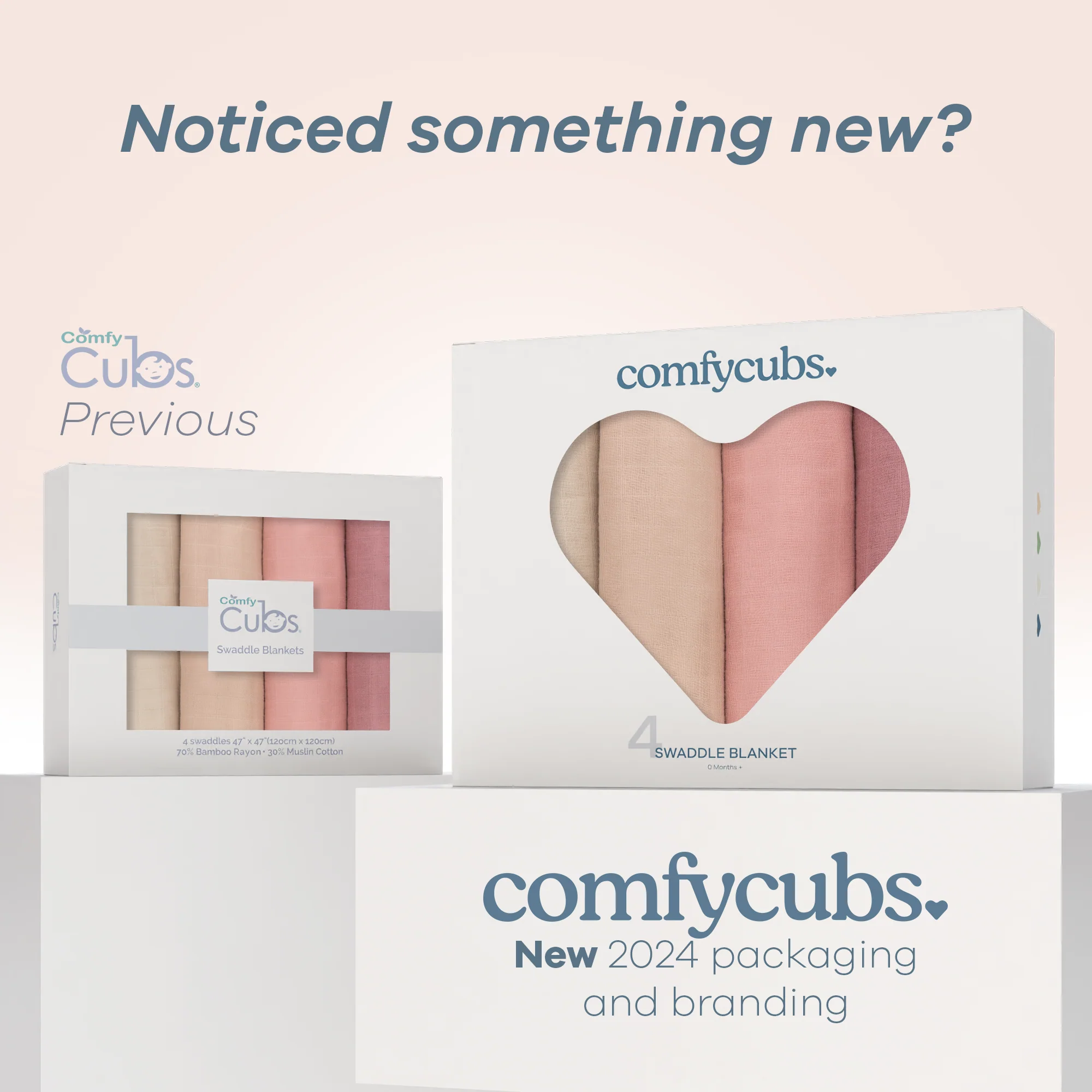 • Comfy Cubs Baby Muslin Swaddle Blankets 4 Pack - Sand, Blush, Bold Blush, Mauve
