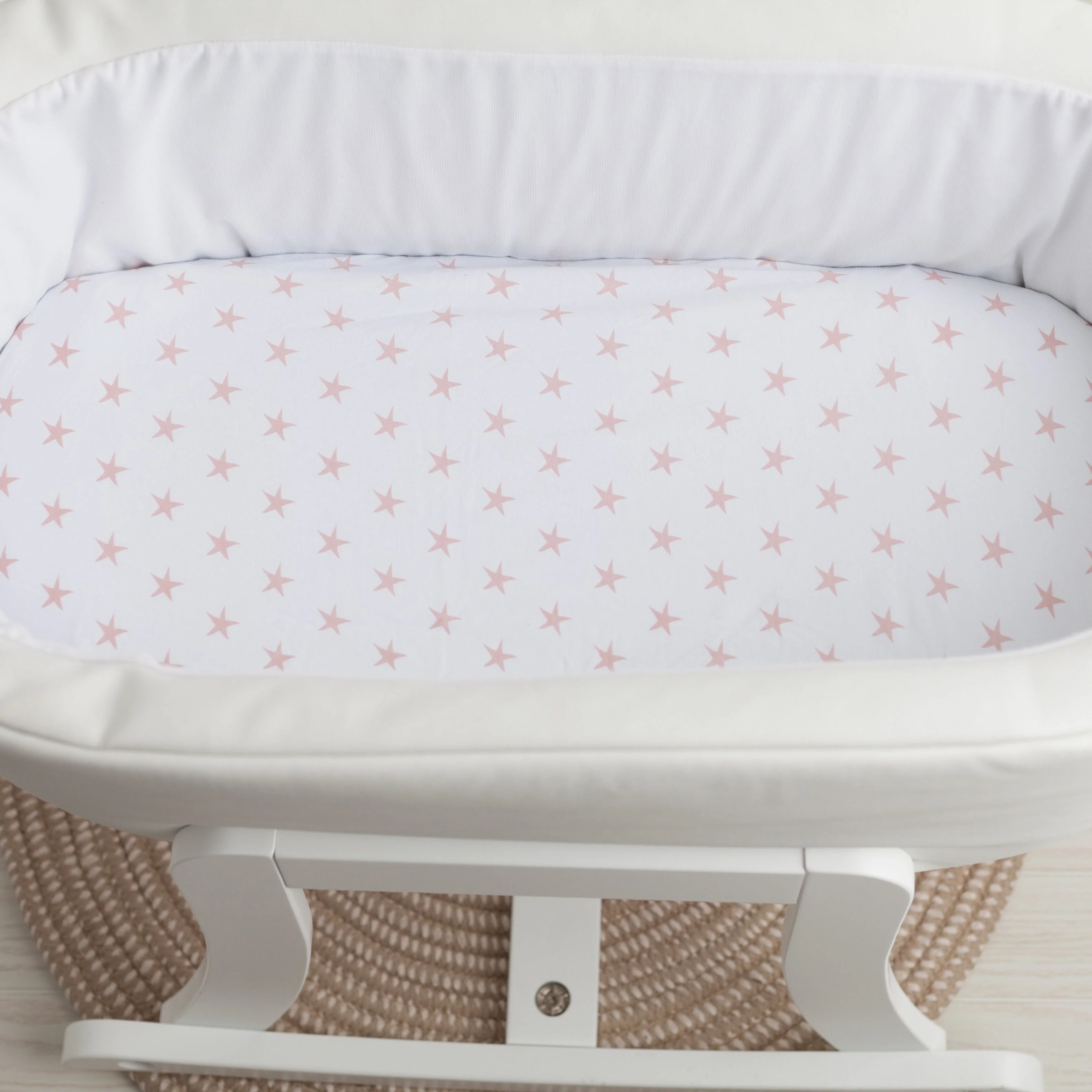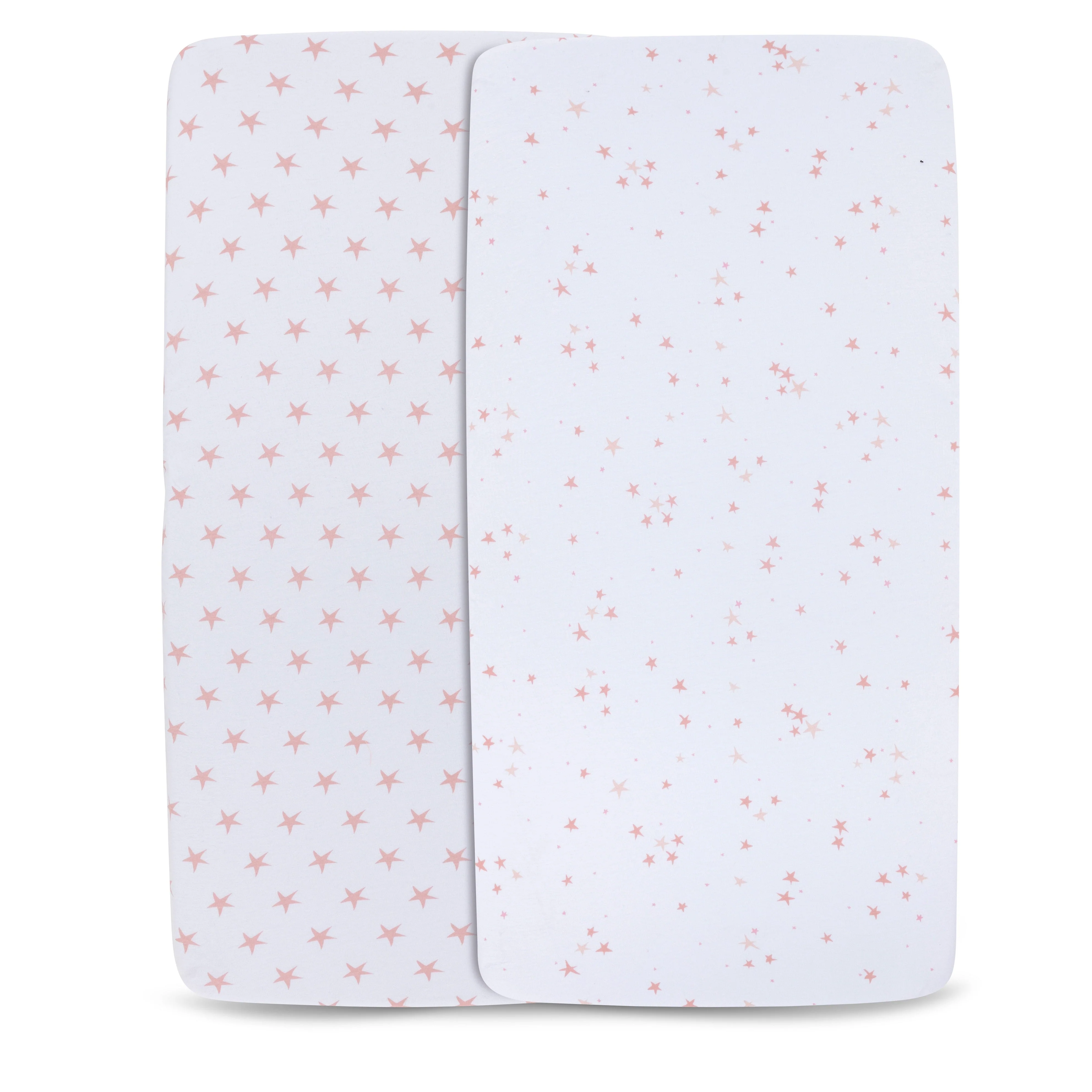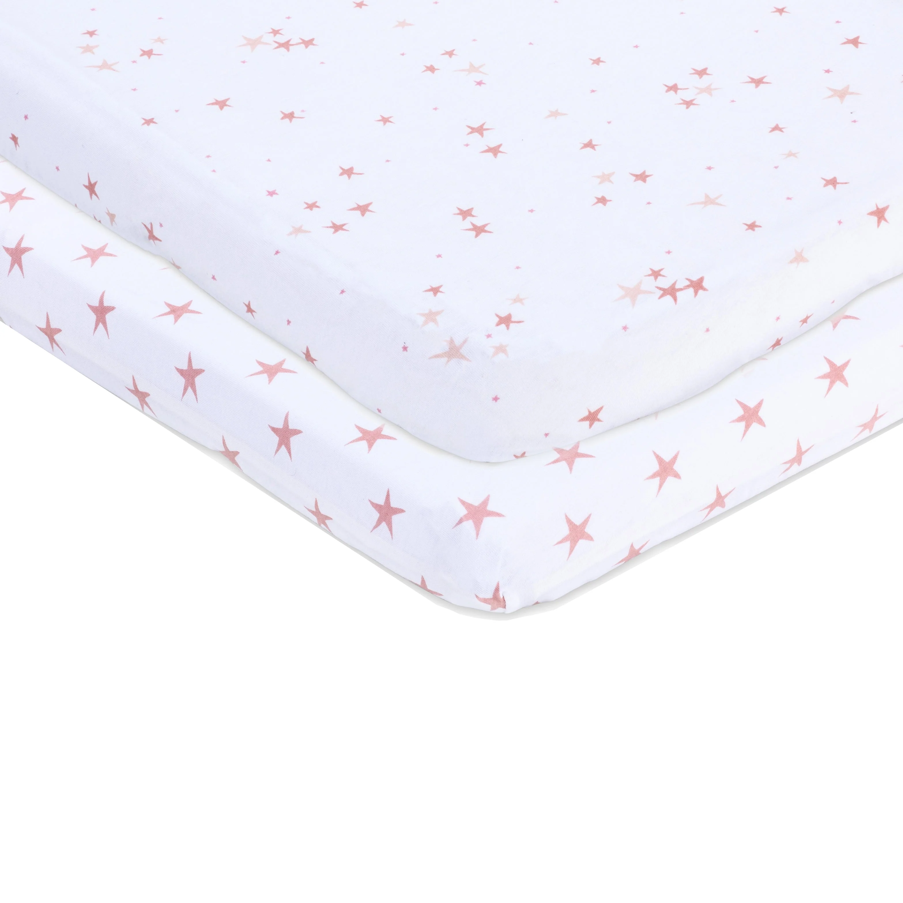 - Flexible-Fit Bassinet Sheet 2-Pack for Baby Girl in Mauve Pink Stars – Bundled in our charmingly cute and compact packaging, this set makes for the perfect baby shower gift!