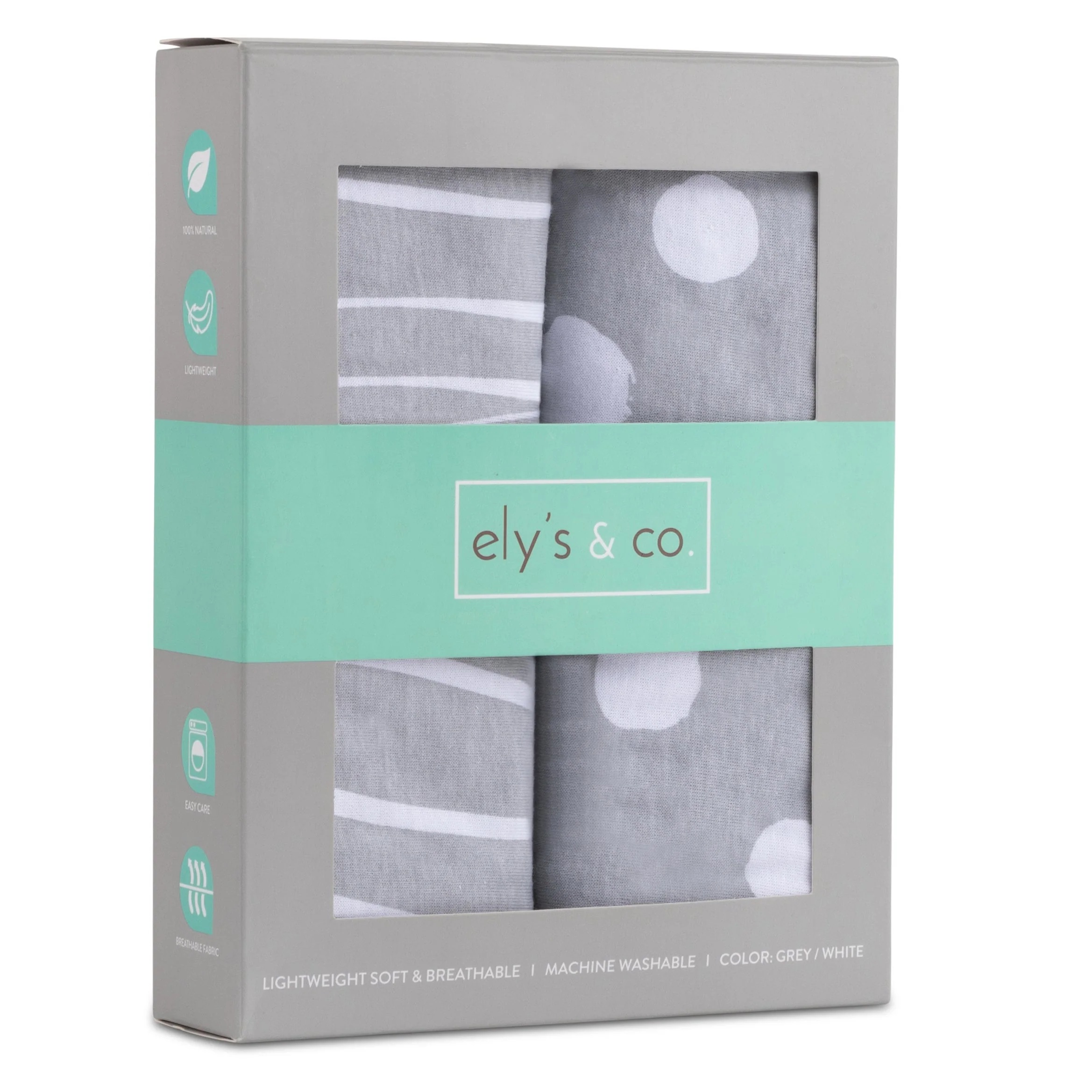Soft & Airy: 100% Jersey Cotton Ely's & Co.'s Bassinet Sheet Sets are created from lightweight, soft and breathable fabric. Composed of 100% high quality Jersey knit cotton, our bassinet sheets offer cozy, welcoming environment for babies to rest their weary heads as they drift off into nourishing slumber.2 Pack I Grey and White Abstract Stripes and Dots