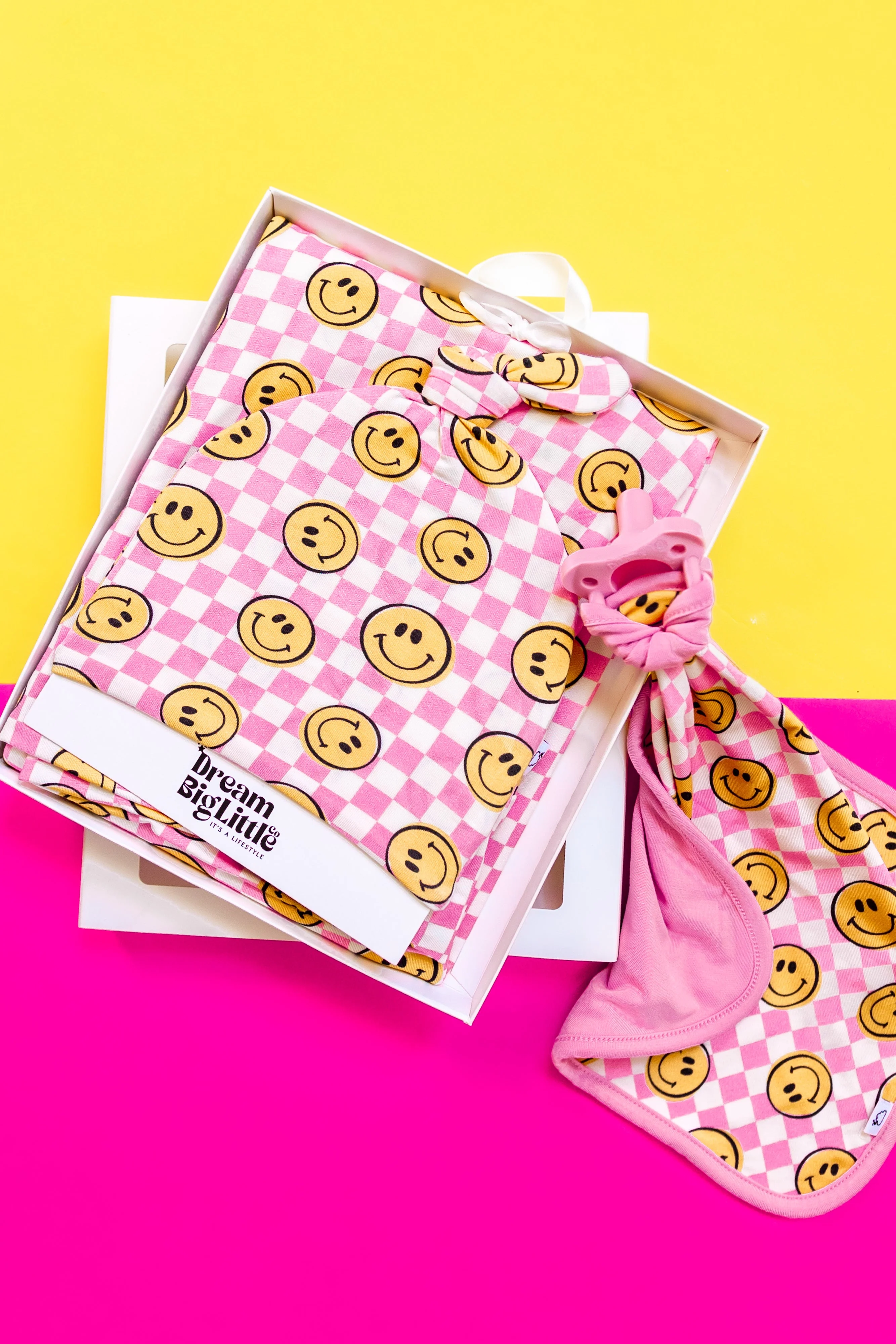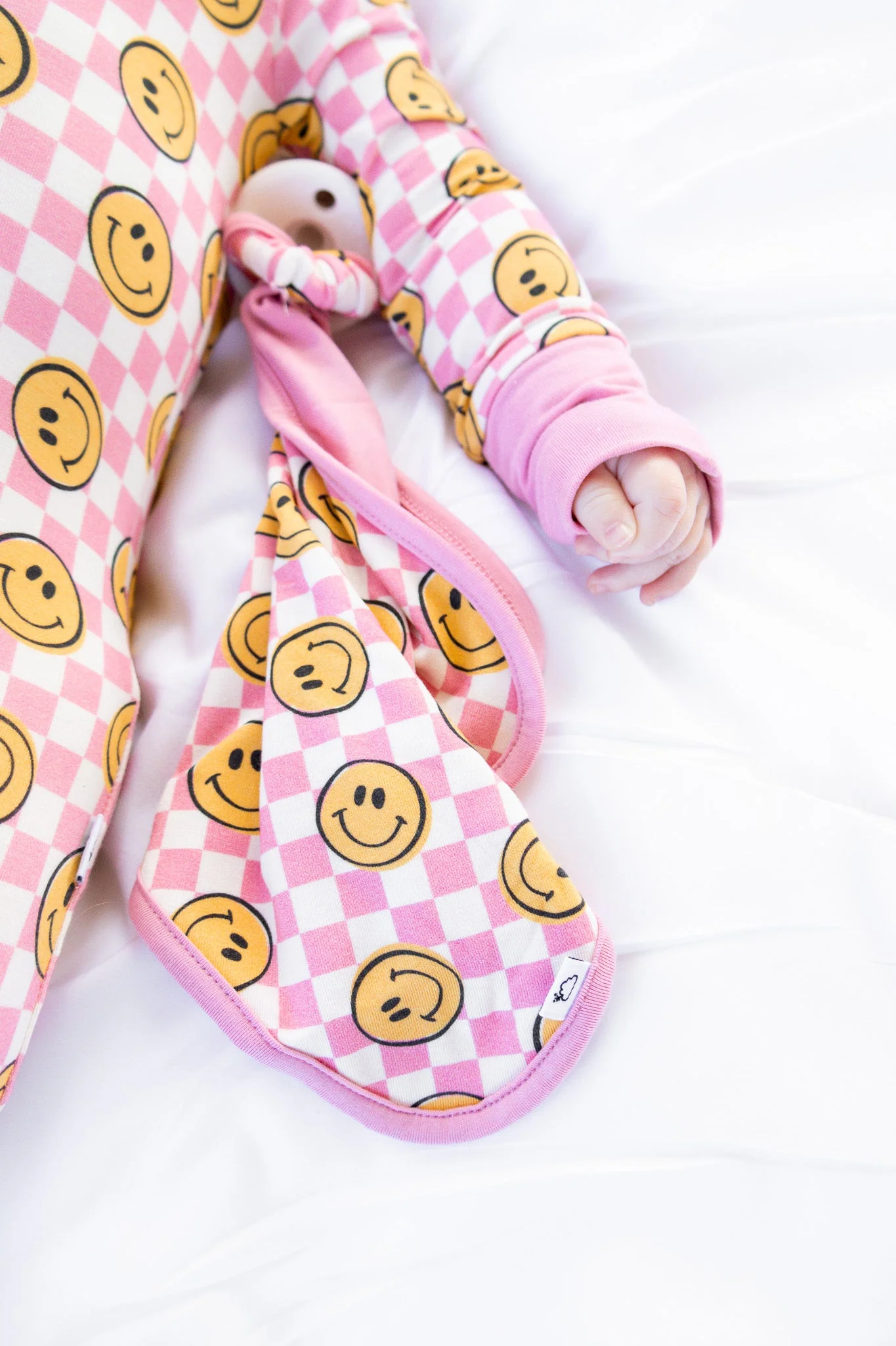 Get ready to make your babe smile with our Blushin' Checkers Dream Lovey! Featuring a soft checkered print and a cute smiley face, this lovey is perfect for snuggles and doubles as a pacifier holder. Give your little one the love they deserve with this quirky and practical accessory.