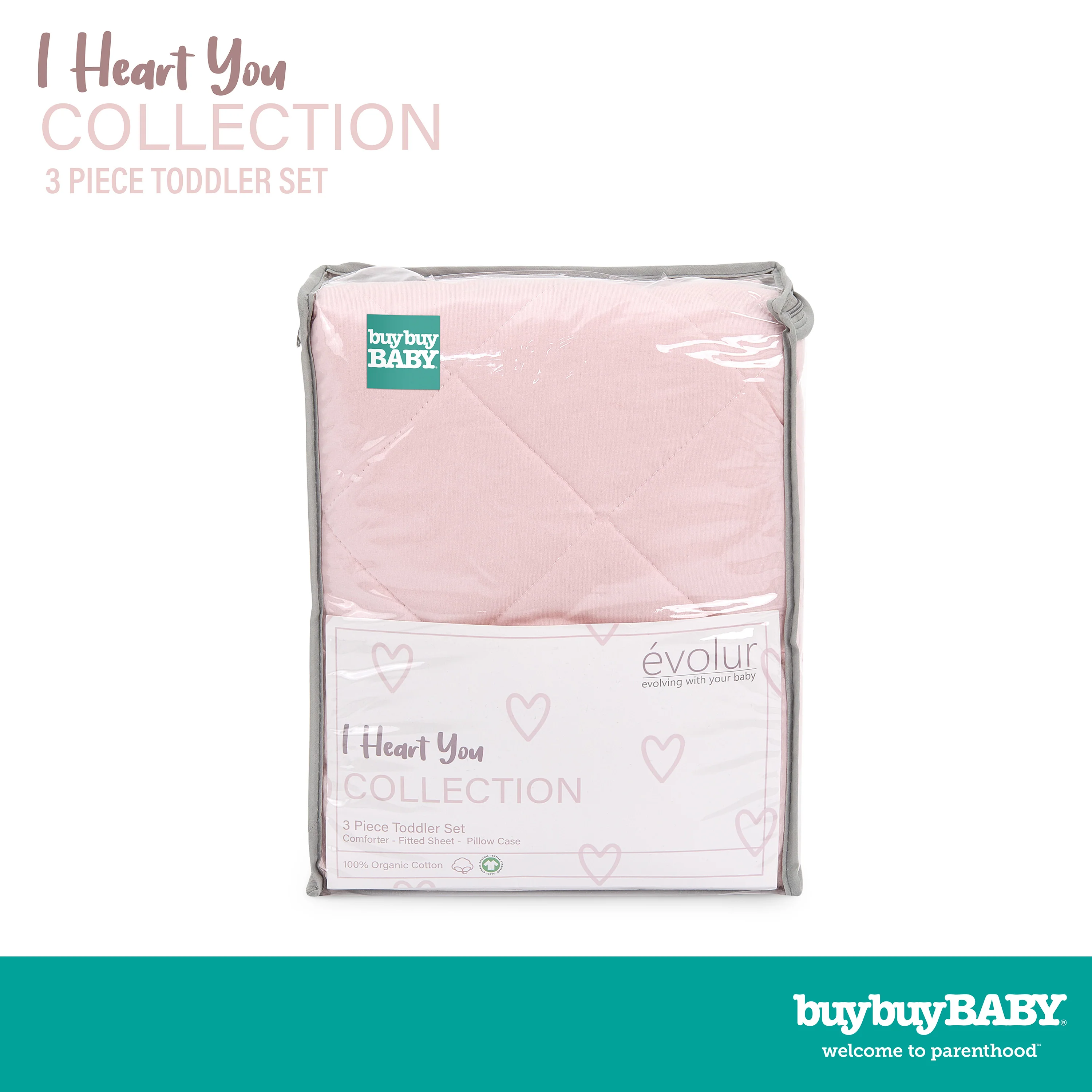 - TODDLER BFF: Transition your toddler to a big kid bed with buybuy BABY by Evolur I Heart You 3 Piece Toddler Set.