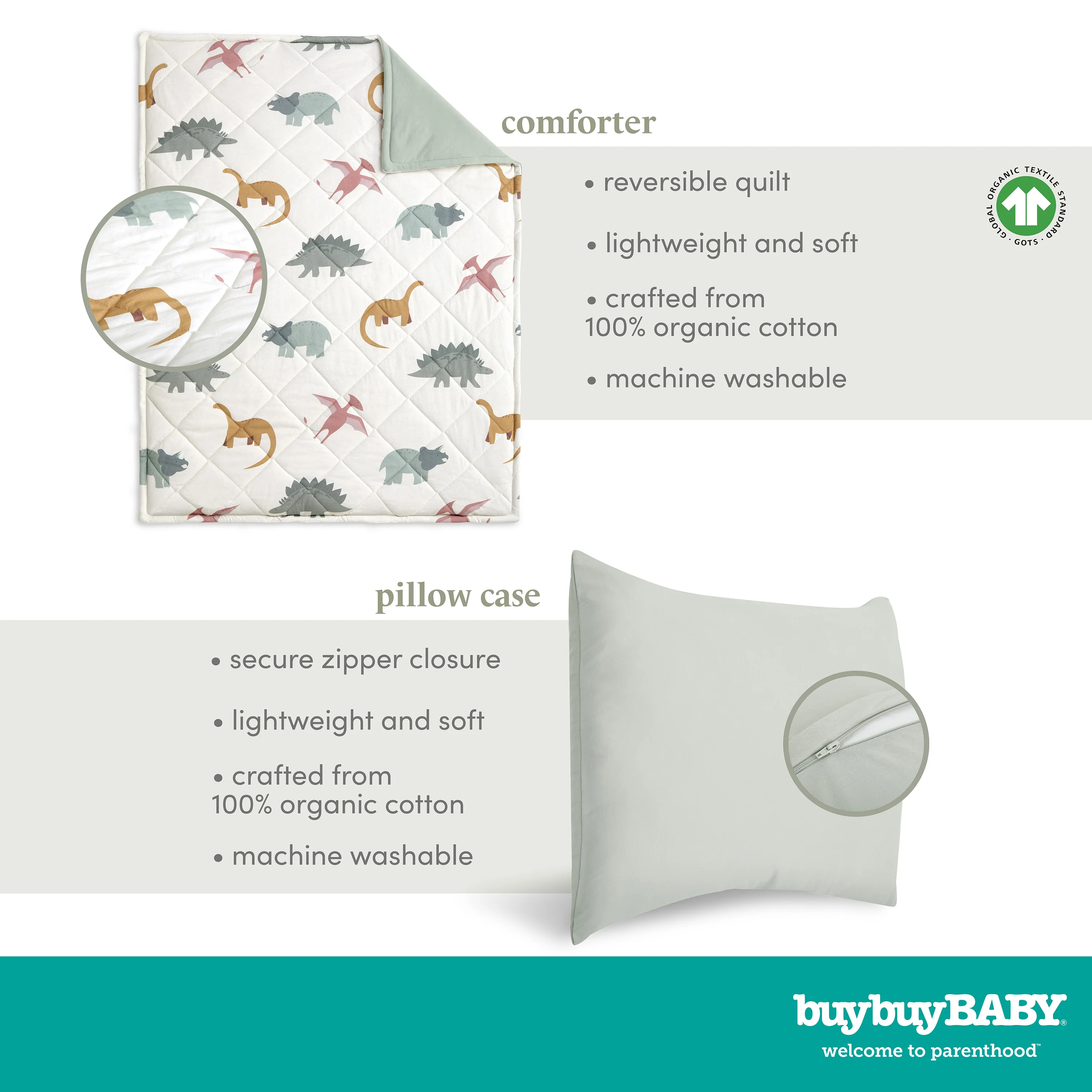 - FOR COZY SLEEP: Made from 100% organic cotton, GOTS certified and crafted with sustainable materials, these bedding essentials provide a totally safe space for your growing child.