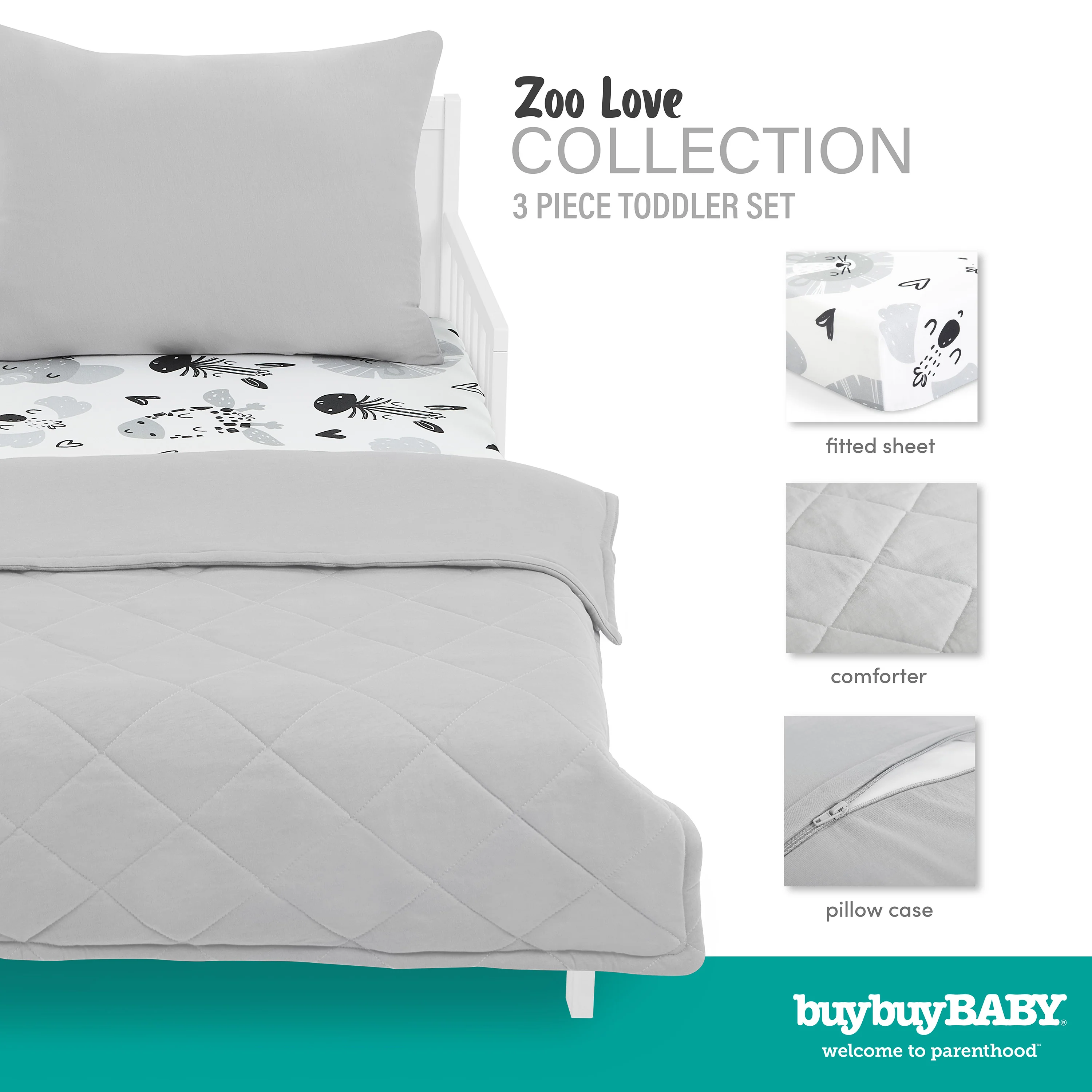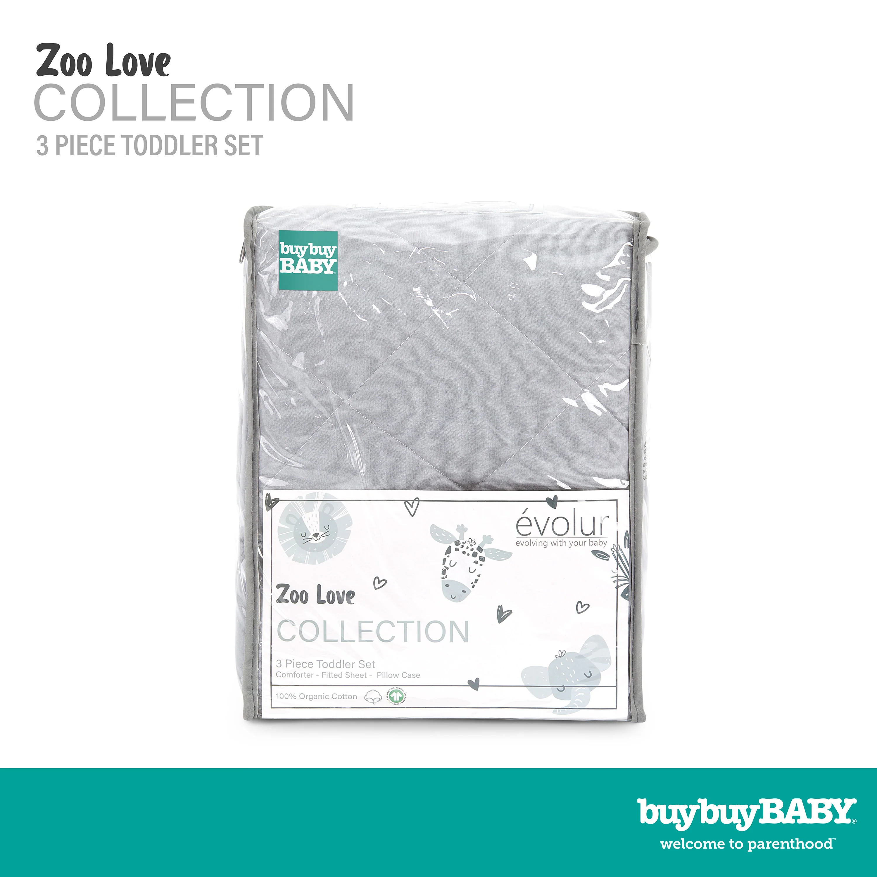 - TODDLER BFF: Transition your toddler to a fun big kid bed with the buybuy BABY by Evolur Zoo Love 3 Piece Toddler Set.
