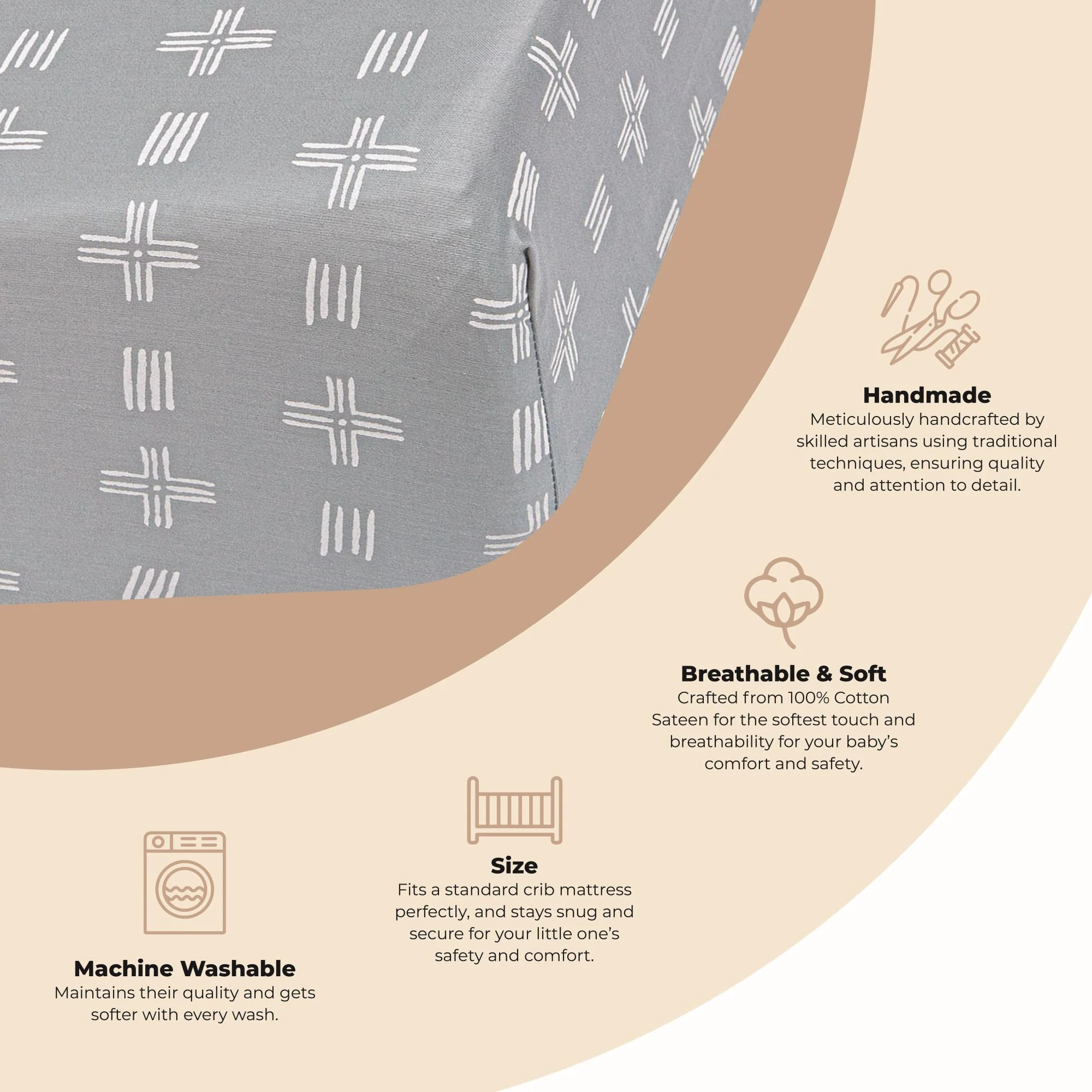 Dress your baby's crib in 100% cotton sateen. Printed to portray the essence of a watercolor we painted in-house, our crib sheets are available in a variety of designs and the perfect way to add whimsical accents of color and pattern to your nursery. Cotton sateen is breathable and softens with every wash. Packaged in a fabric bag you can reuse to keep your baby essentials neat and tidy.