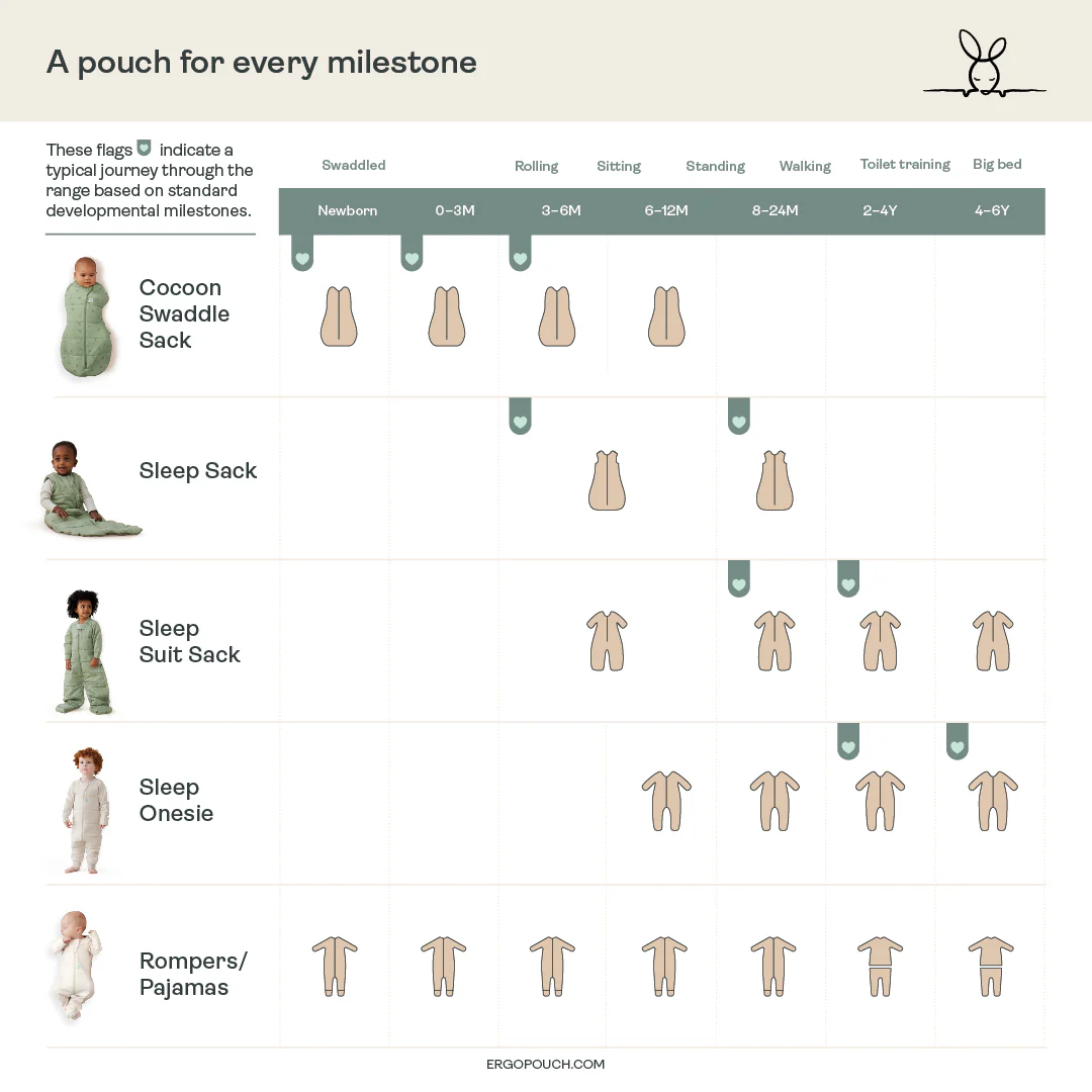 Warnings Ensure you buy the correct size for your baby's weight, to prevent the Bag from riding up around your baby's face. See our Size Guide for more information. For sleep only. Do not allow a child to walk around when wearing the Jersey Bag. Not suitable for use in a 5 point harness.