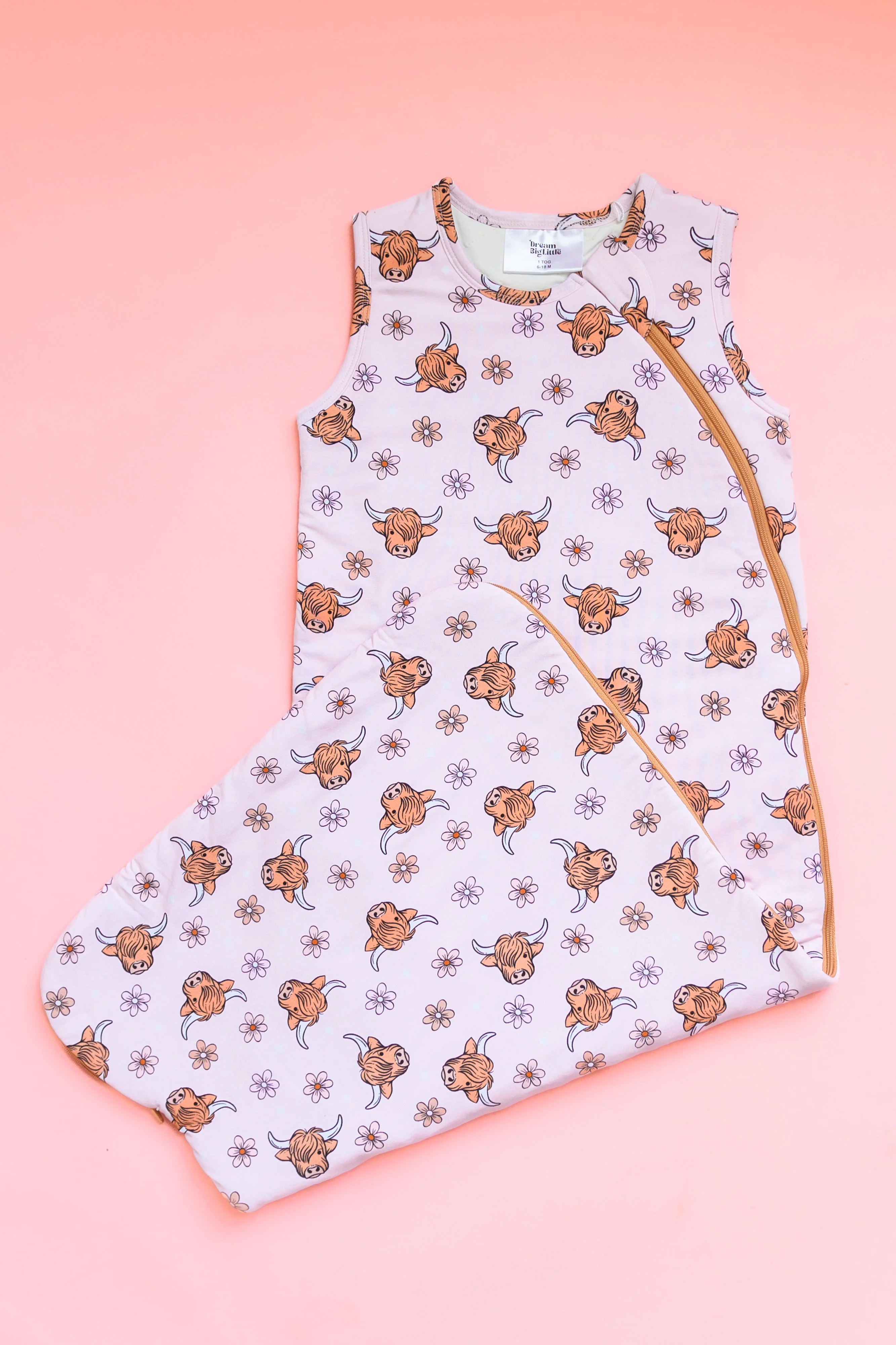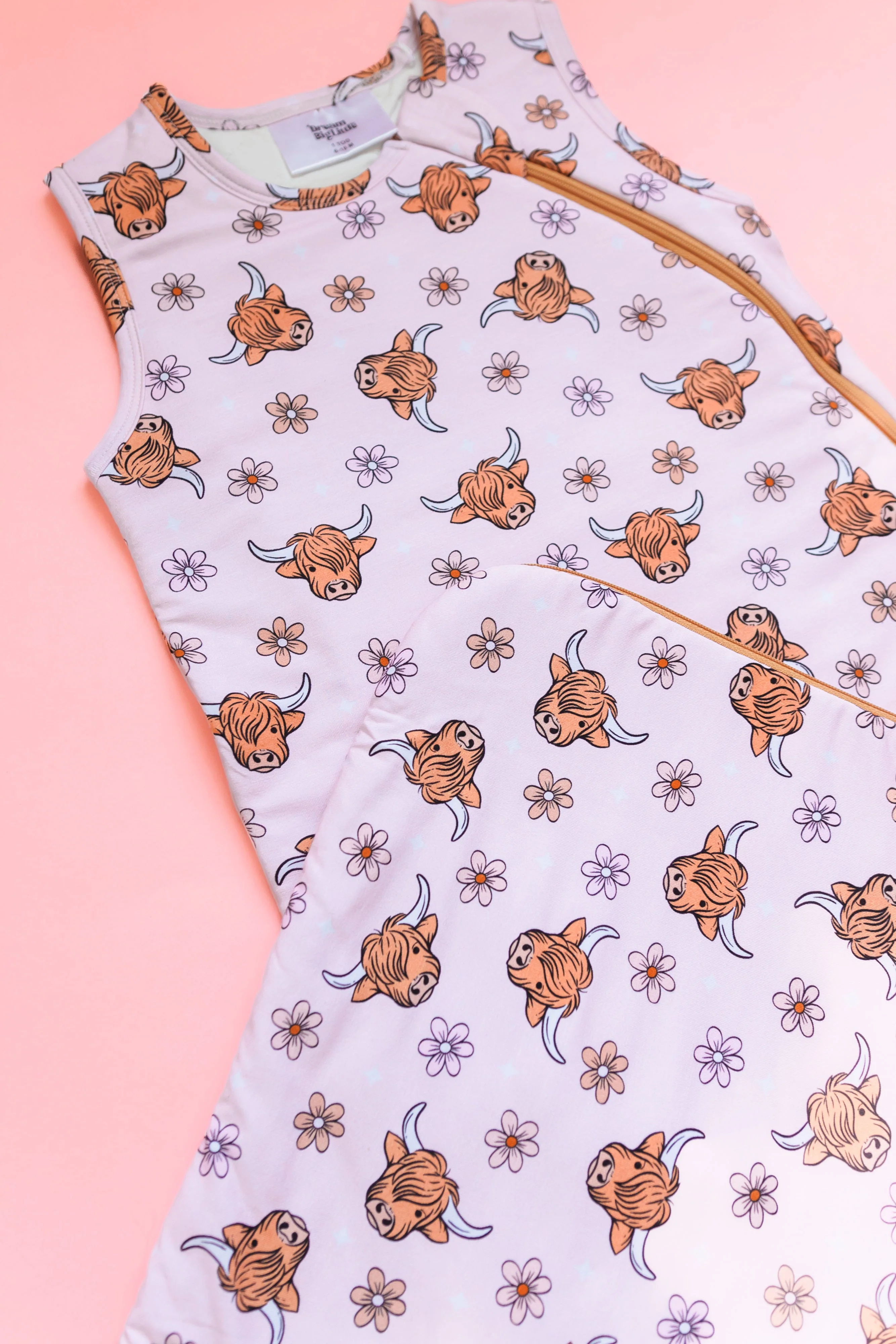 Introducing the Exclusive Highland Cutie Dream Sleep Sack! Made from bamboo material, this cozy sleep sack features a playful highland cow print, ensuring your little one has a comfortable and peaceful night's sleep. A must-have for any parent or caregiver looking to give their babe the sweetest dreams.