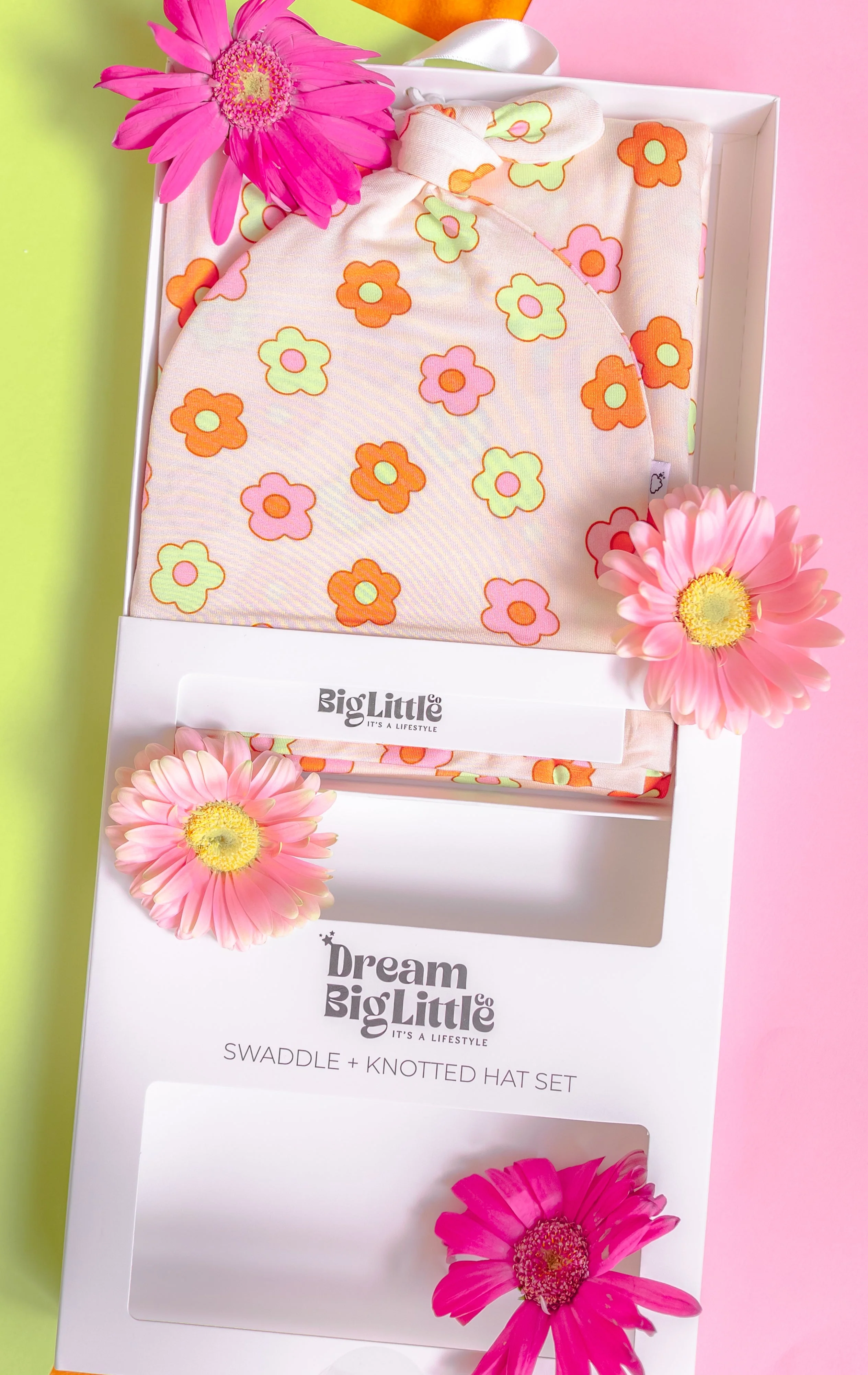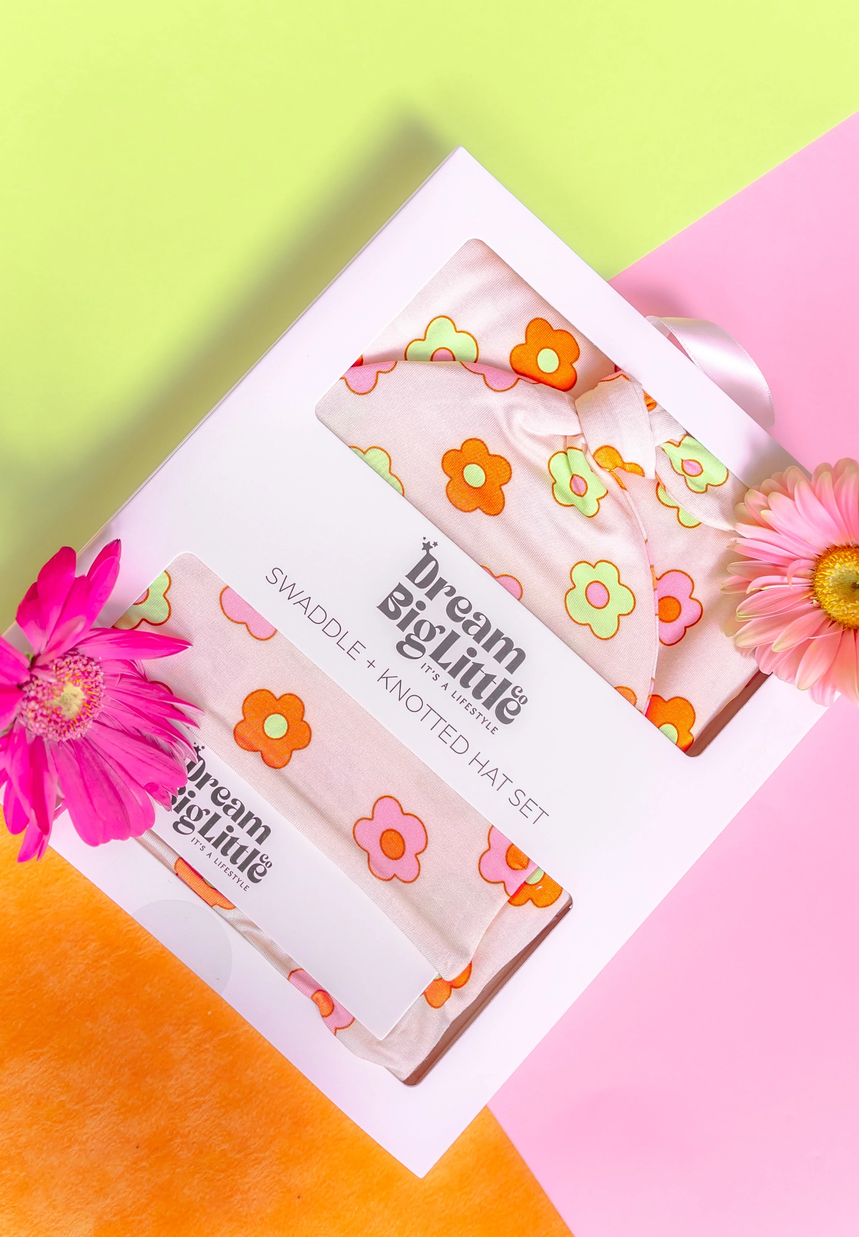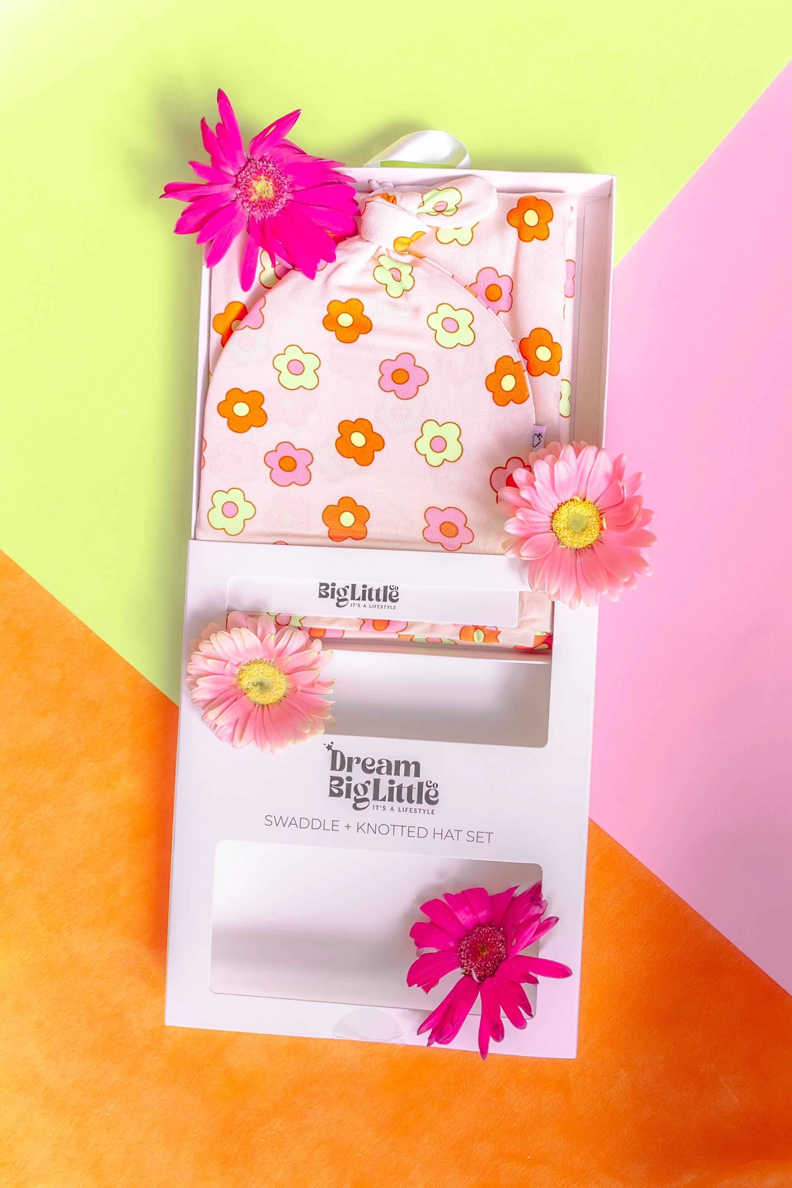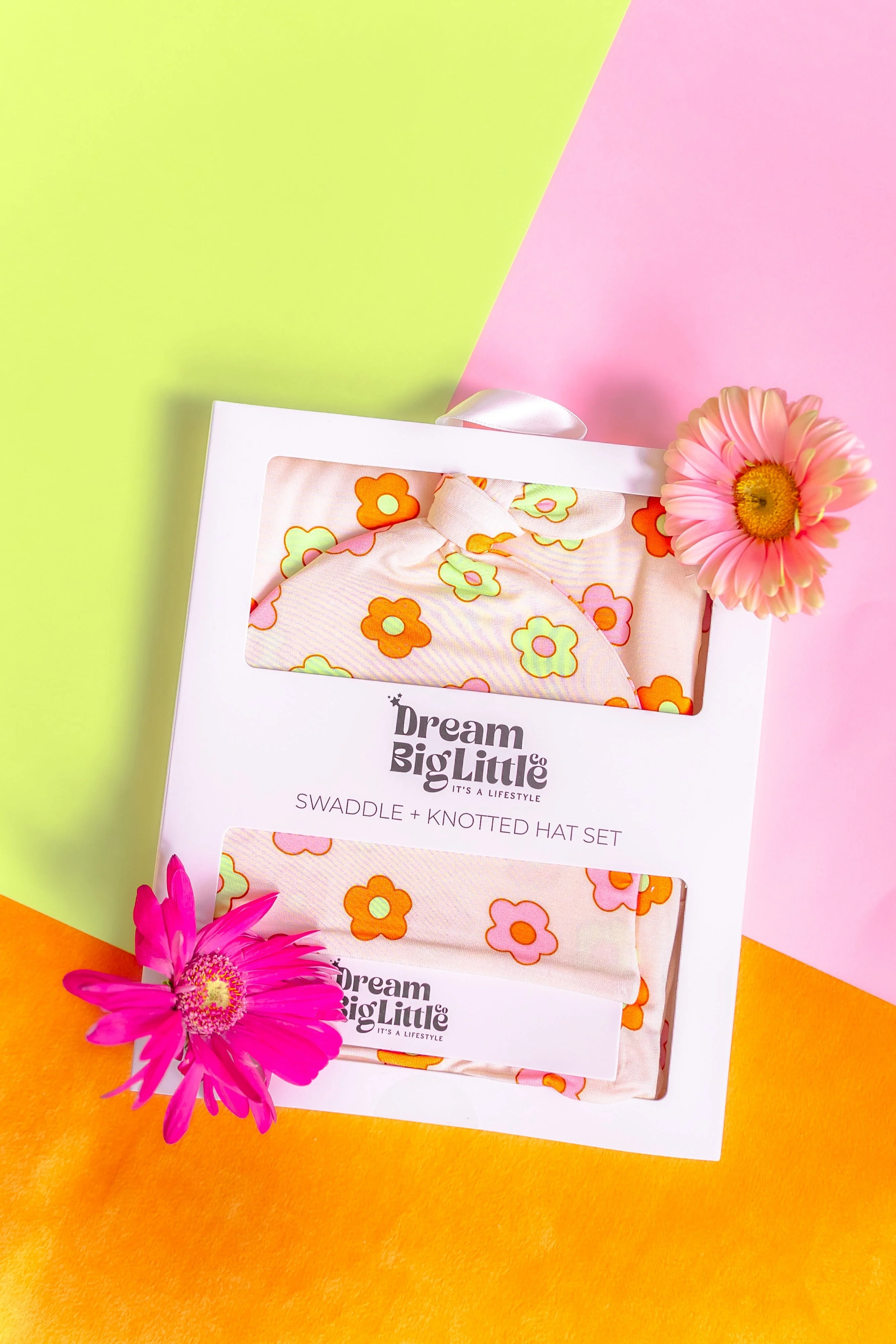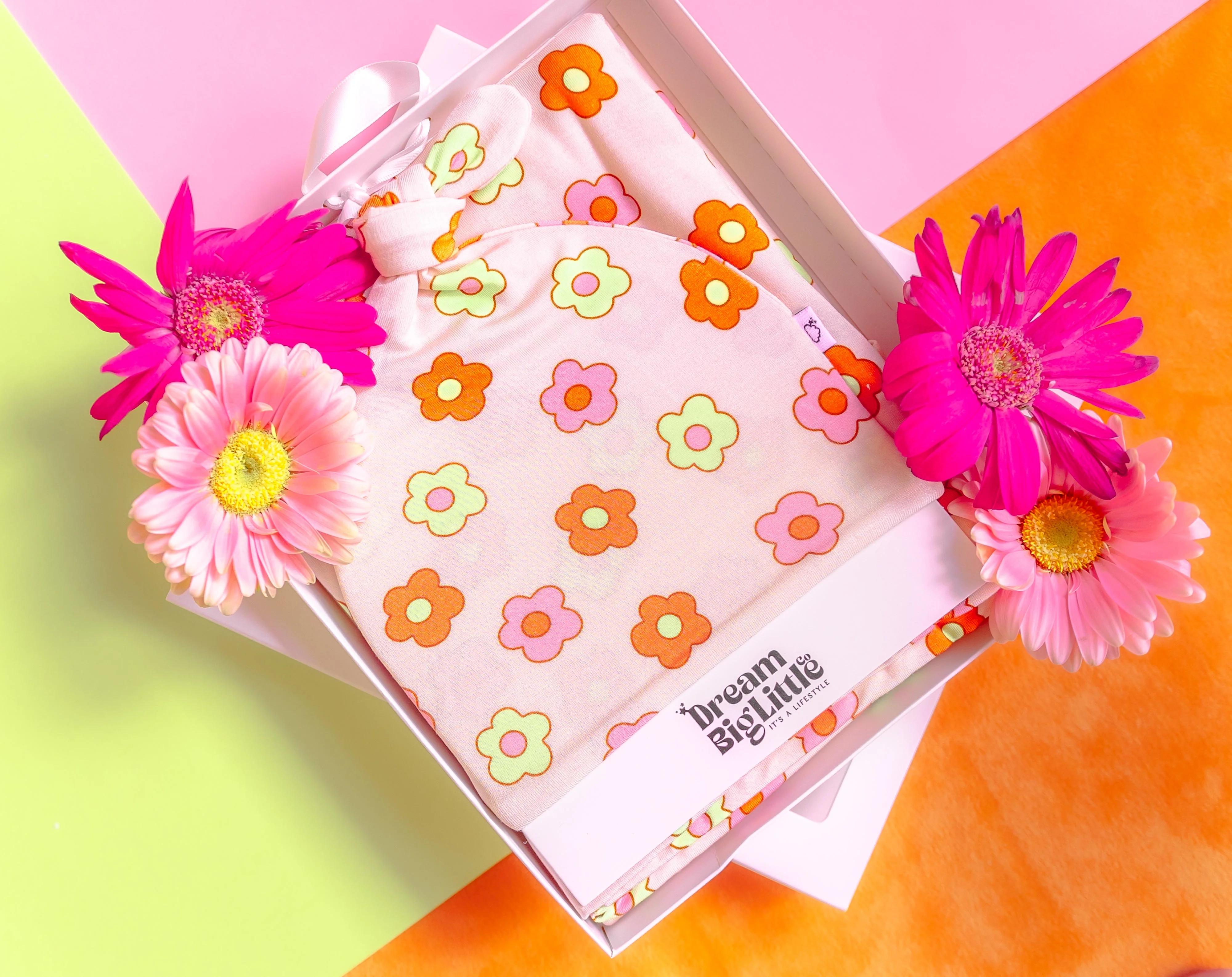 Wrap your little one in soft, floral vibes with our Feelin' Flowerful Dream Swaddle & Beanie set. Perfect for newborns, this retro-inspired set is both cuddly and stylish. Get ready for some serious flower power!
