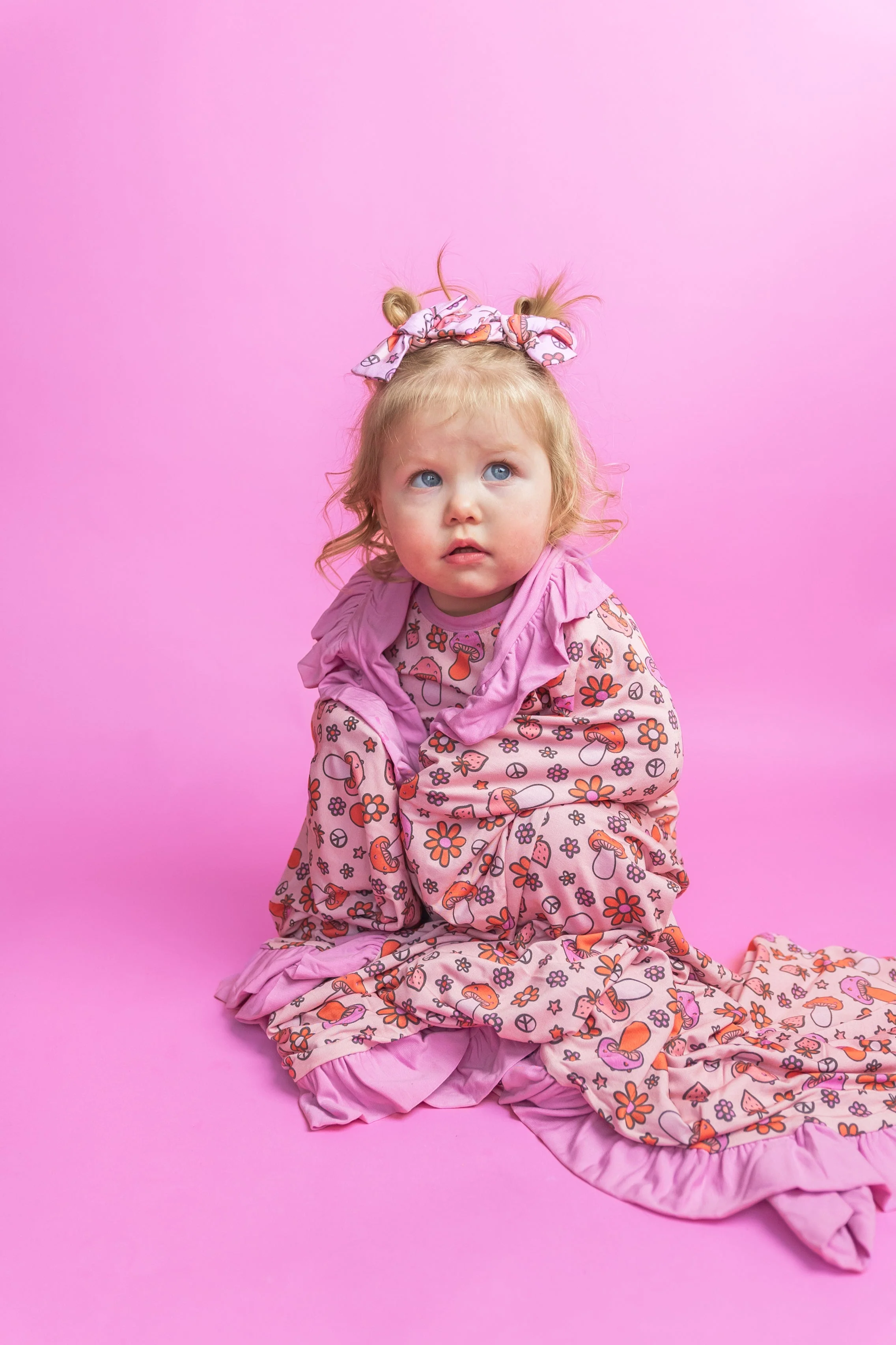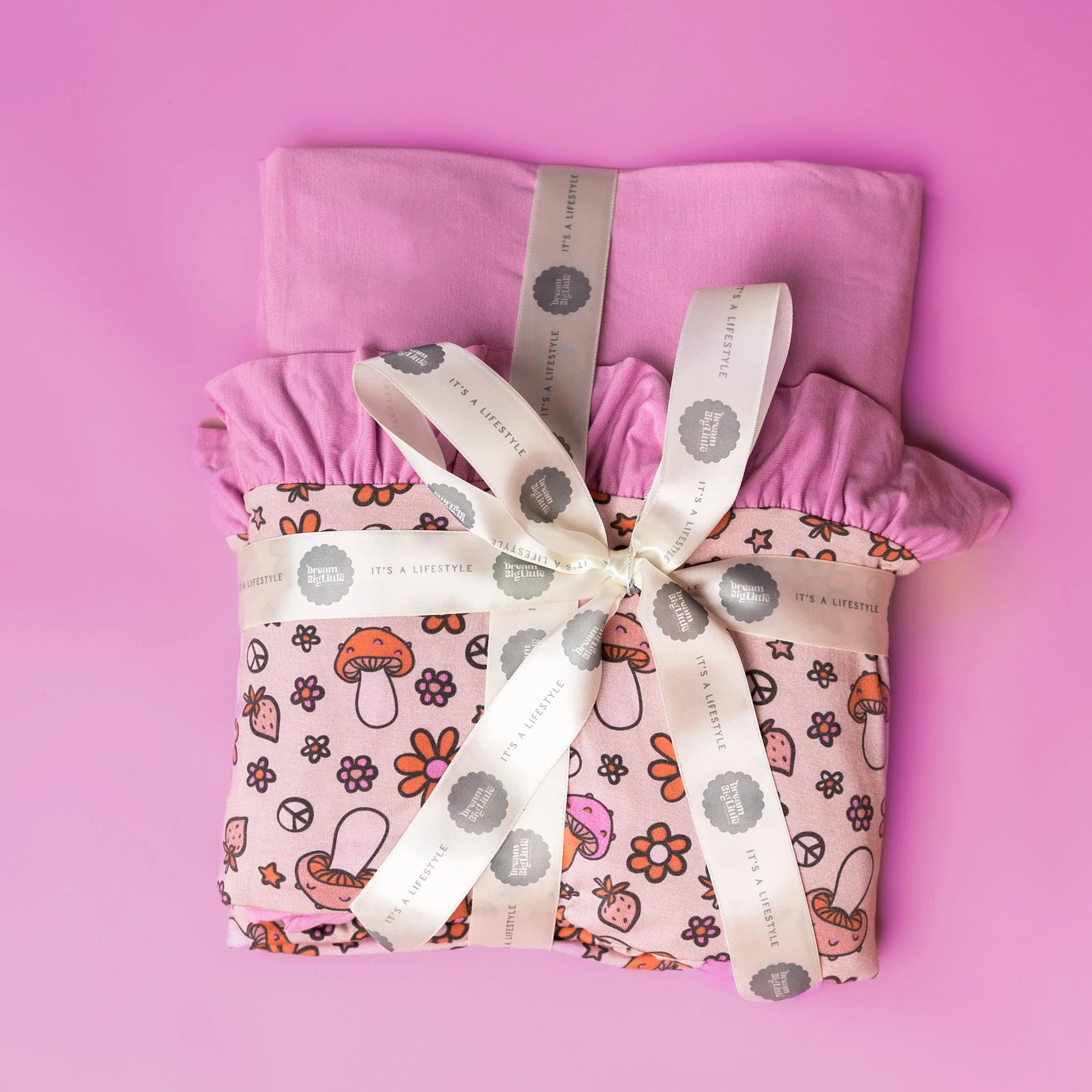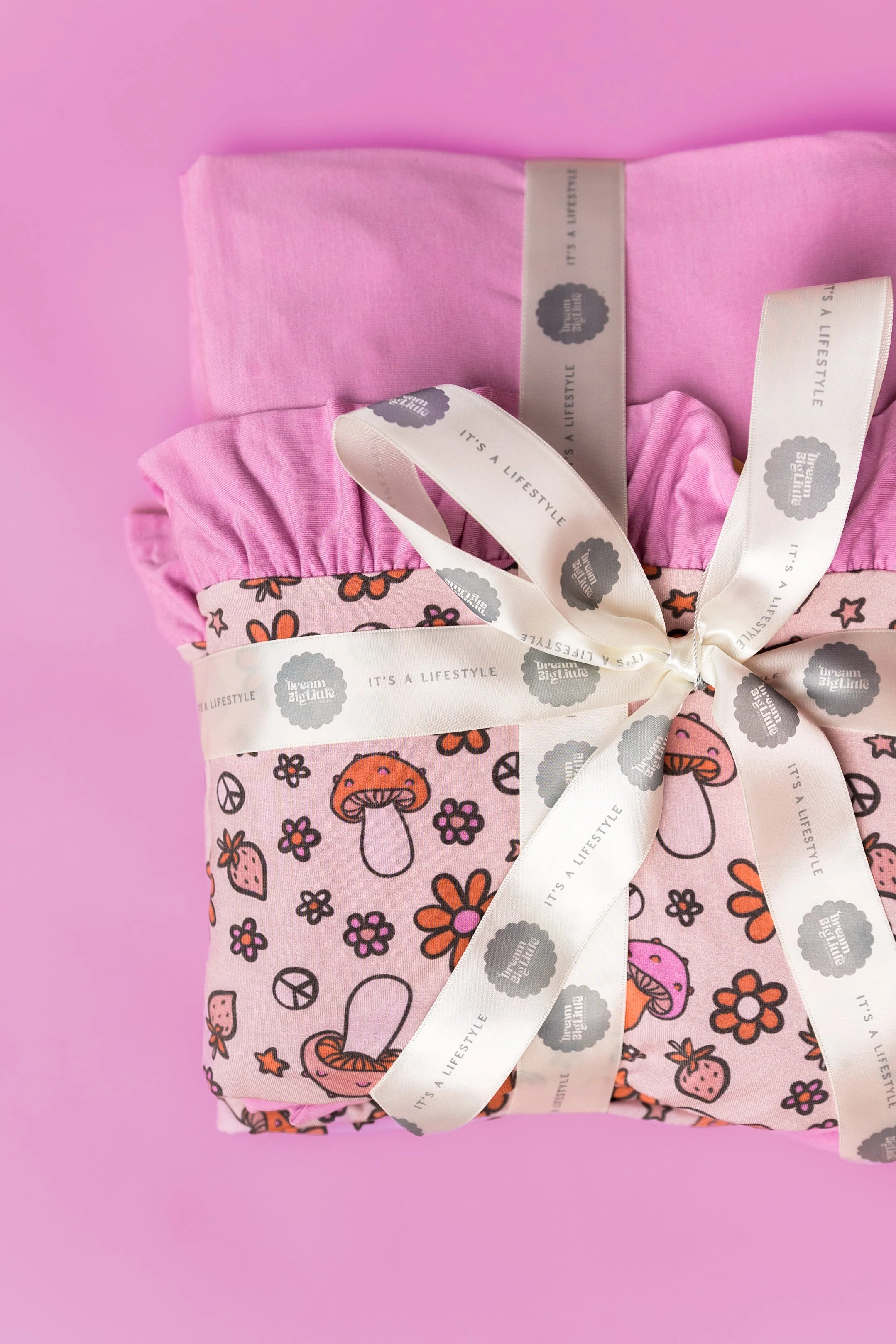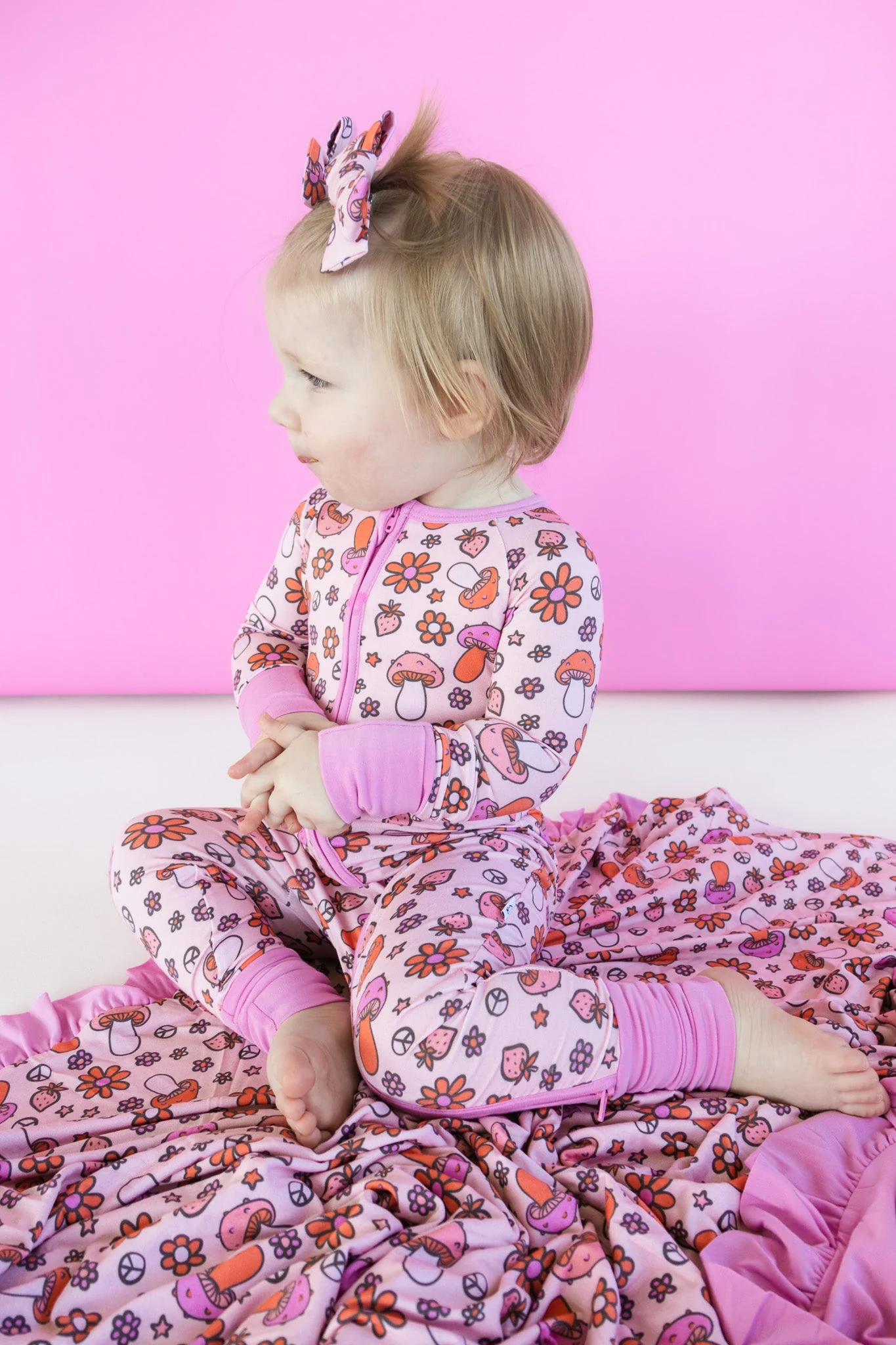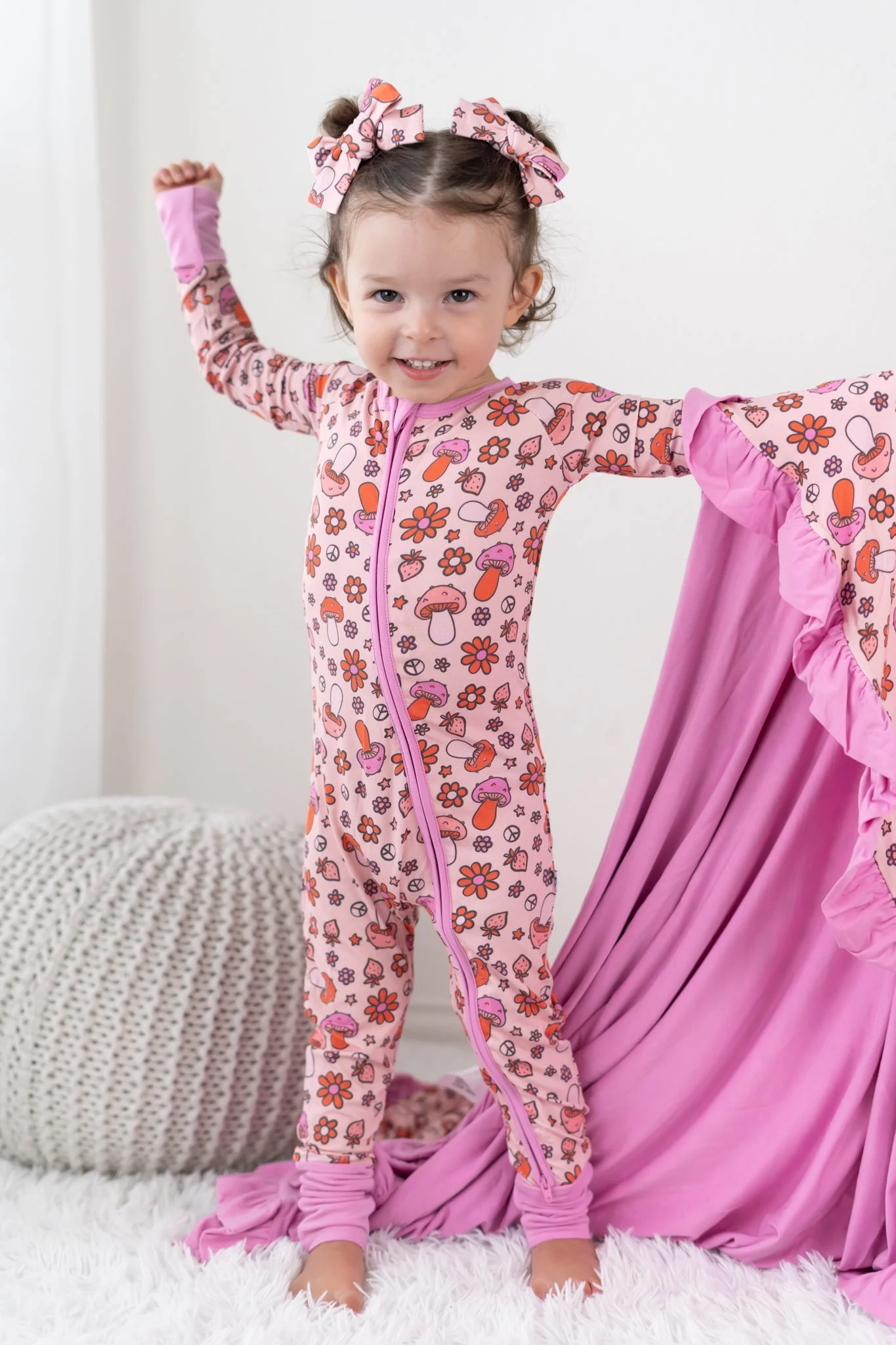 Get all warm and cozy with our Feelin' Mushy Dream Blanket. Made with soft bamboo material, this blanket features a fun mushroom print that'll add a cute touch to your room. Snuggle up and let the good vibes flow.