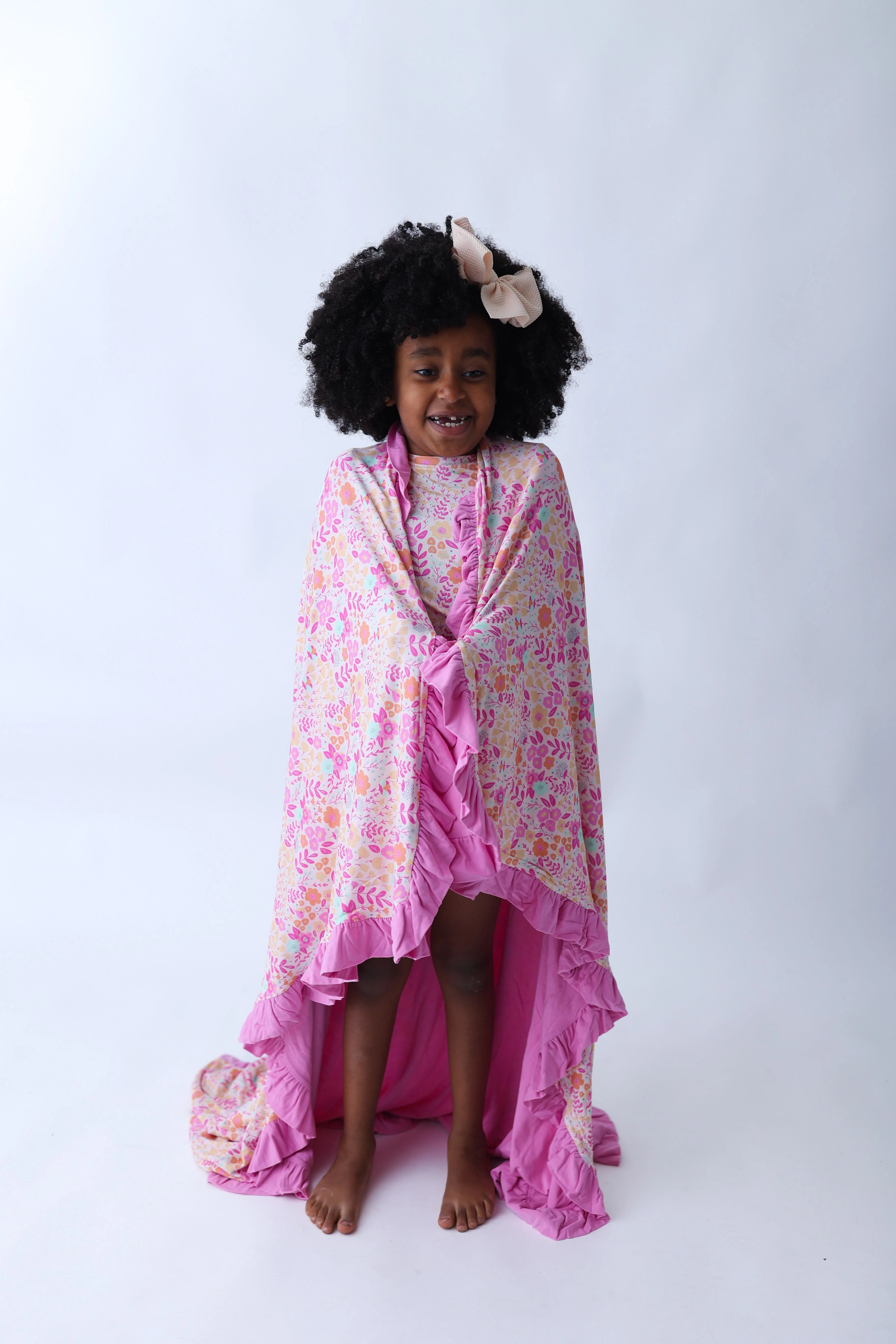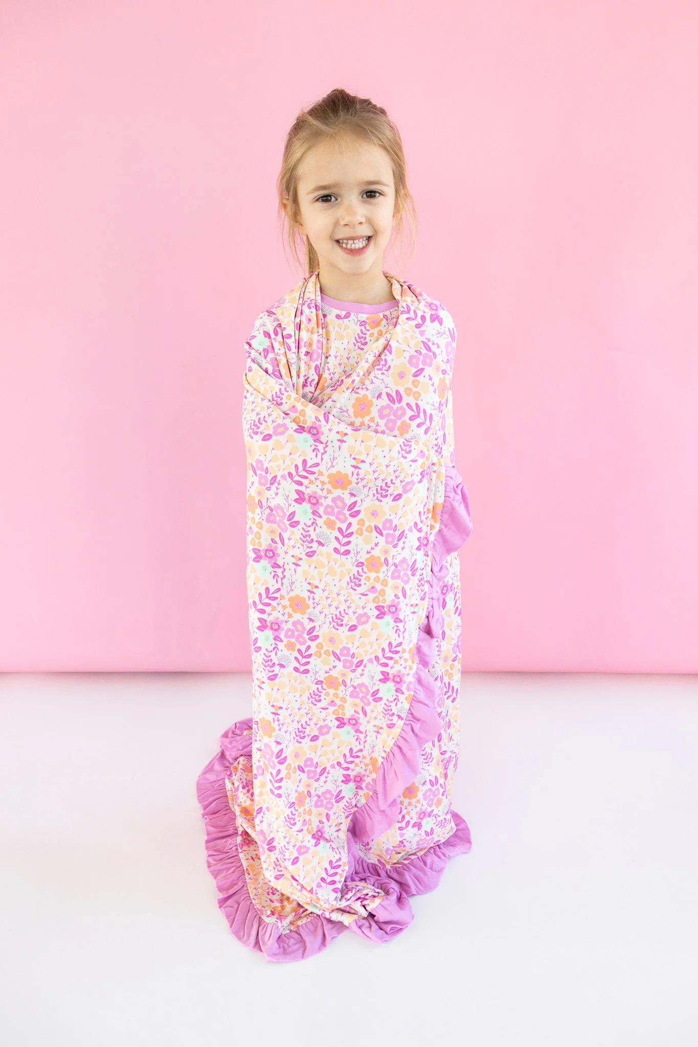 Snuggle up in the garden with our Garden Treasures Dream Ruffle Blanket! The beautiful floral design and soft bamboo material will make you feel like you're in a dream. Perfect for cozy nights or picnics in the park. Get your garden game on!
