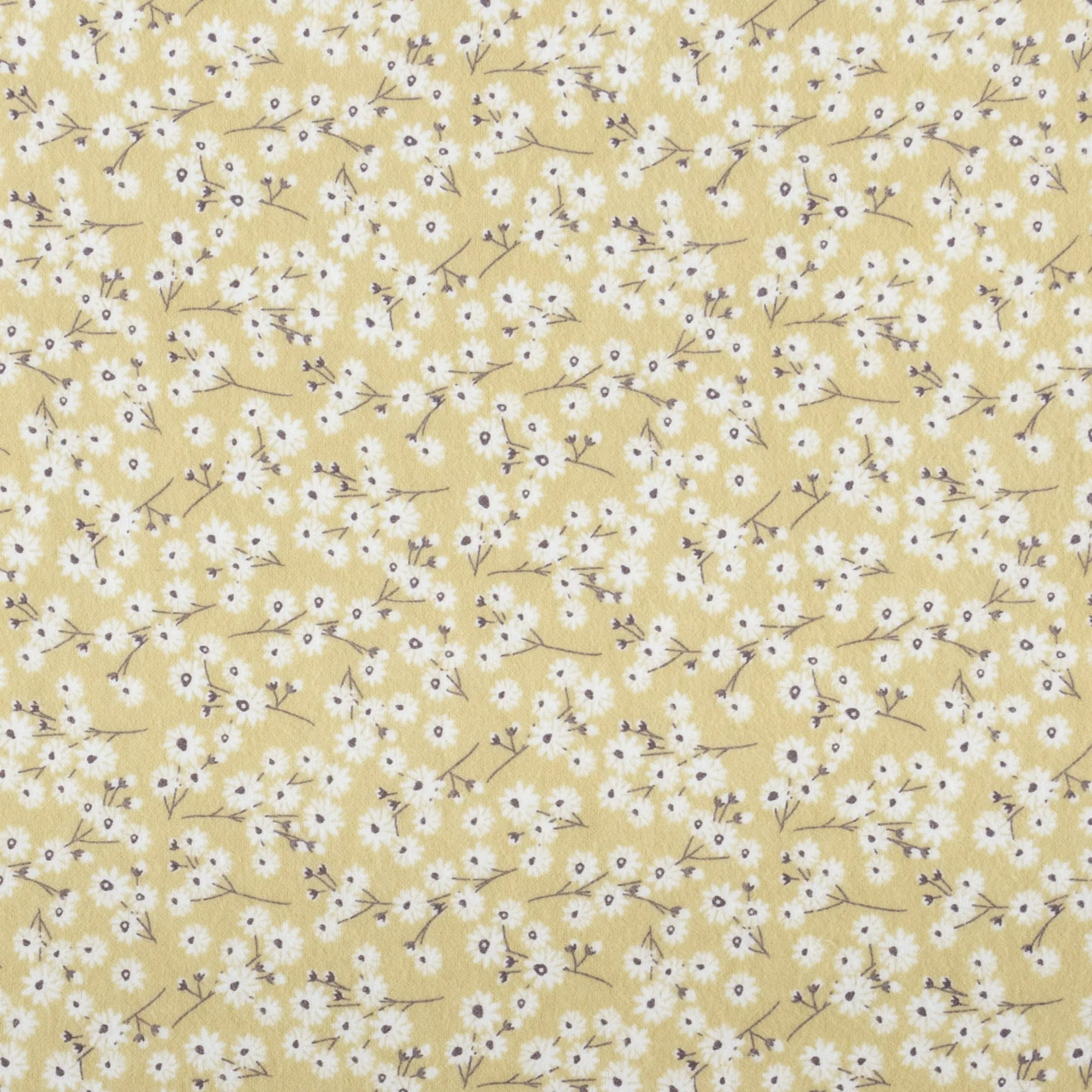 - Cute white and purple daisy print on a golden yellow background