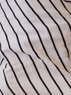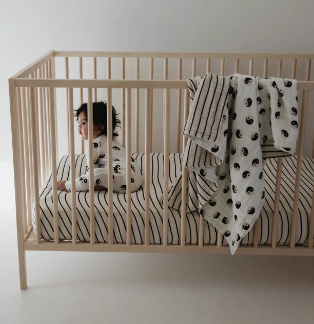 Welcome your little one to sweet dreams with this stylish grey and black striped fitted crib sheet! Crafted from soft muslin fabric, this cozy sheet will keep your baby snug while they rest. Comes with a storage bag so you can easily store it for future use. A perfect combination of style and practicality!