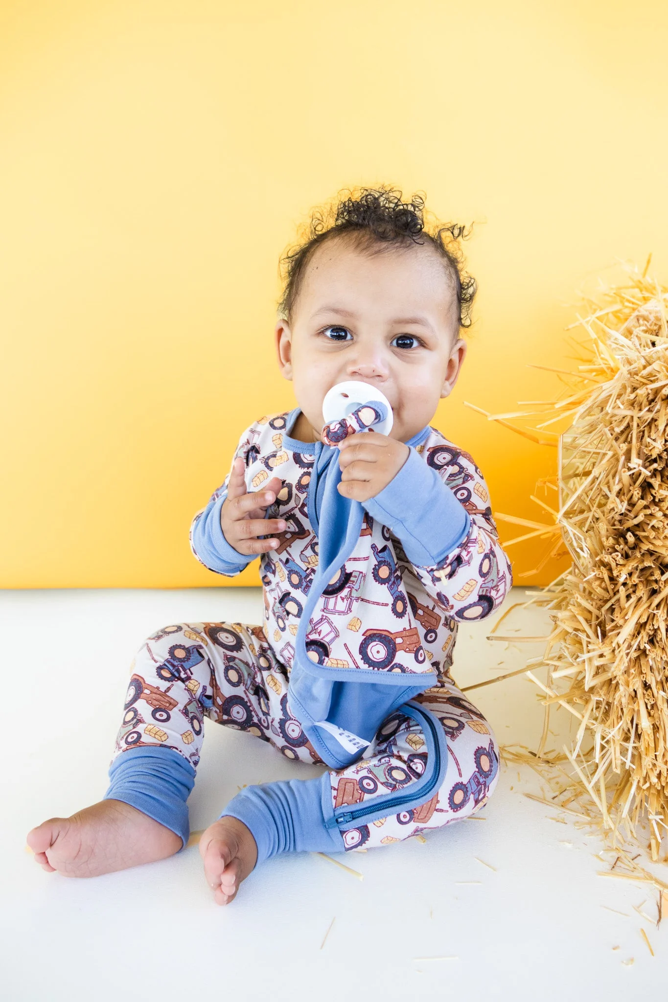 Hittin' The Hay Dream Lovey is the perfect snuggly companion for your little one! Its farm design is both fun and unique, while also providing practical features such as a pacifier holder and soft material for comfort. Say goodbye to lost pacifiers and hello to peaceful naps with this cute hay stack lovey!