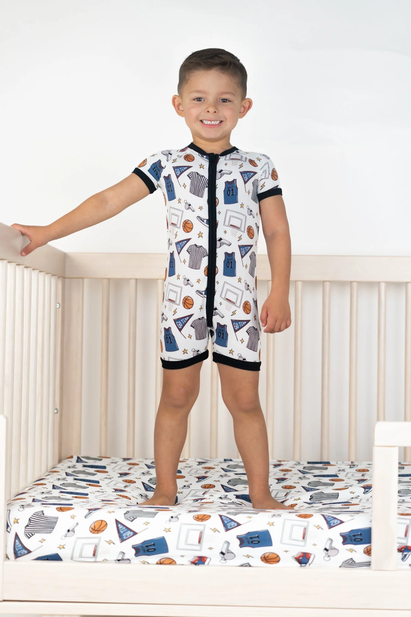 Treat your little baller to our HoopZzz Dream Crib Sheet. Made with comfortable bamboo sheets, these are perfect for any basketball lover or sports fan. So soft, your baby will have a slam-dunk of a time sleeping!