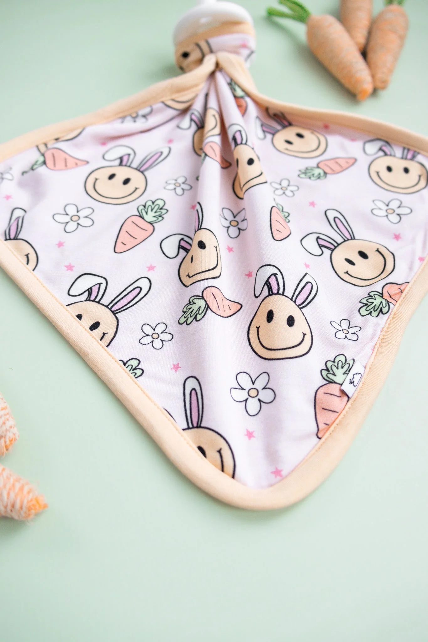 Hop to it and grab this dreamy lovey for your little one! This Easter print lovey not only keeps pacifiers in place, but it also makes for a cute and fun addition to any Easter basket. Get ready to snuggle up with this adorable pacifier holder.