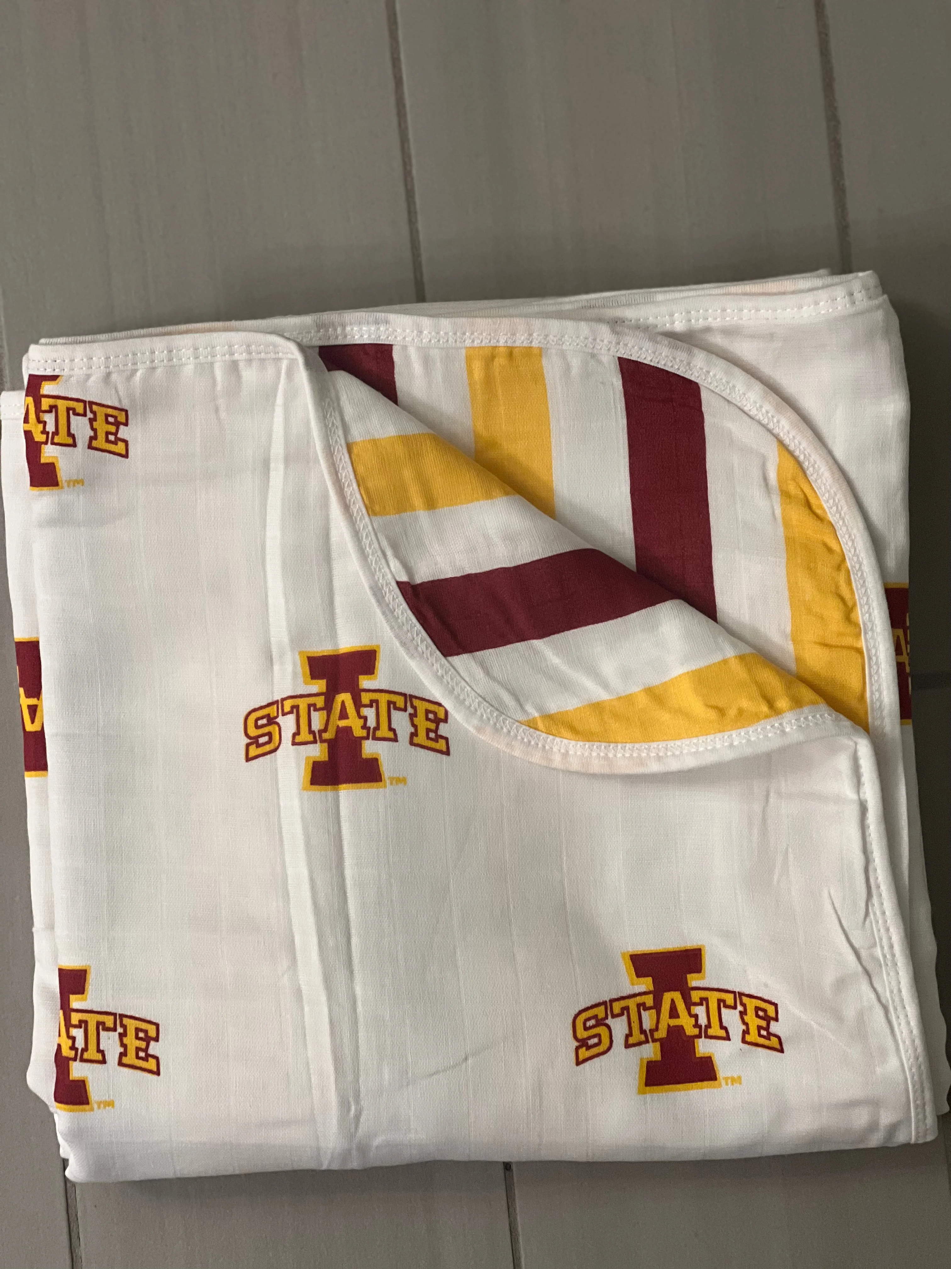Officially licensed Iowa State University 100% cotton muslin four layer blanket. This is the perfect blanket for every cuddly moment.