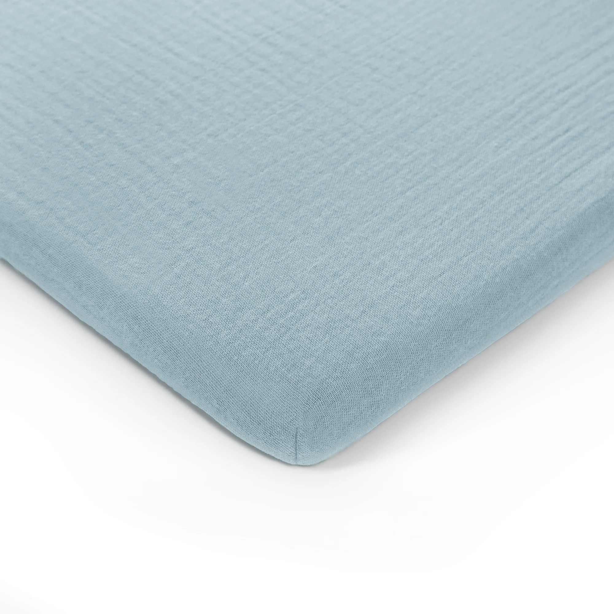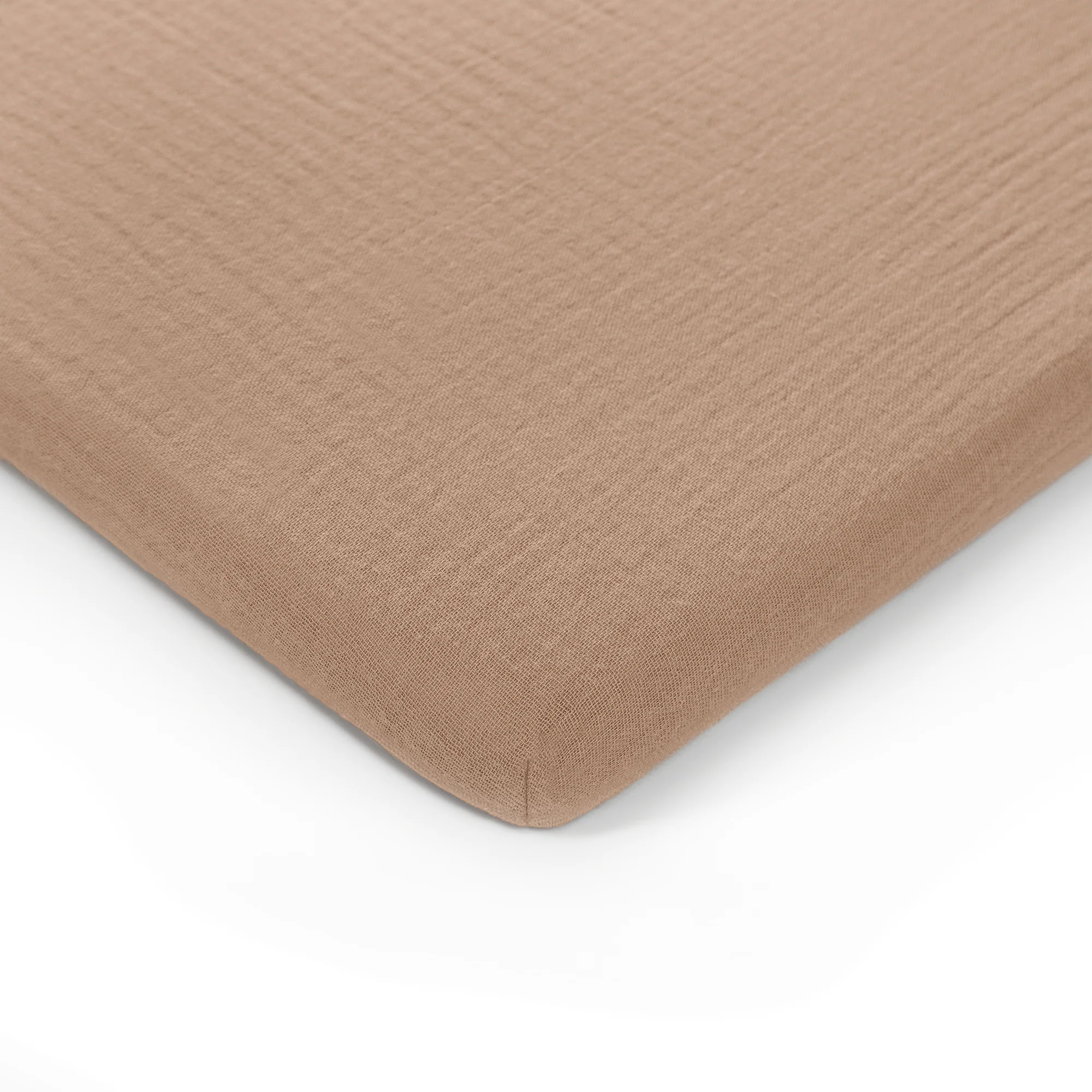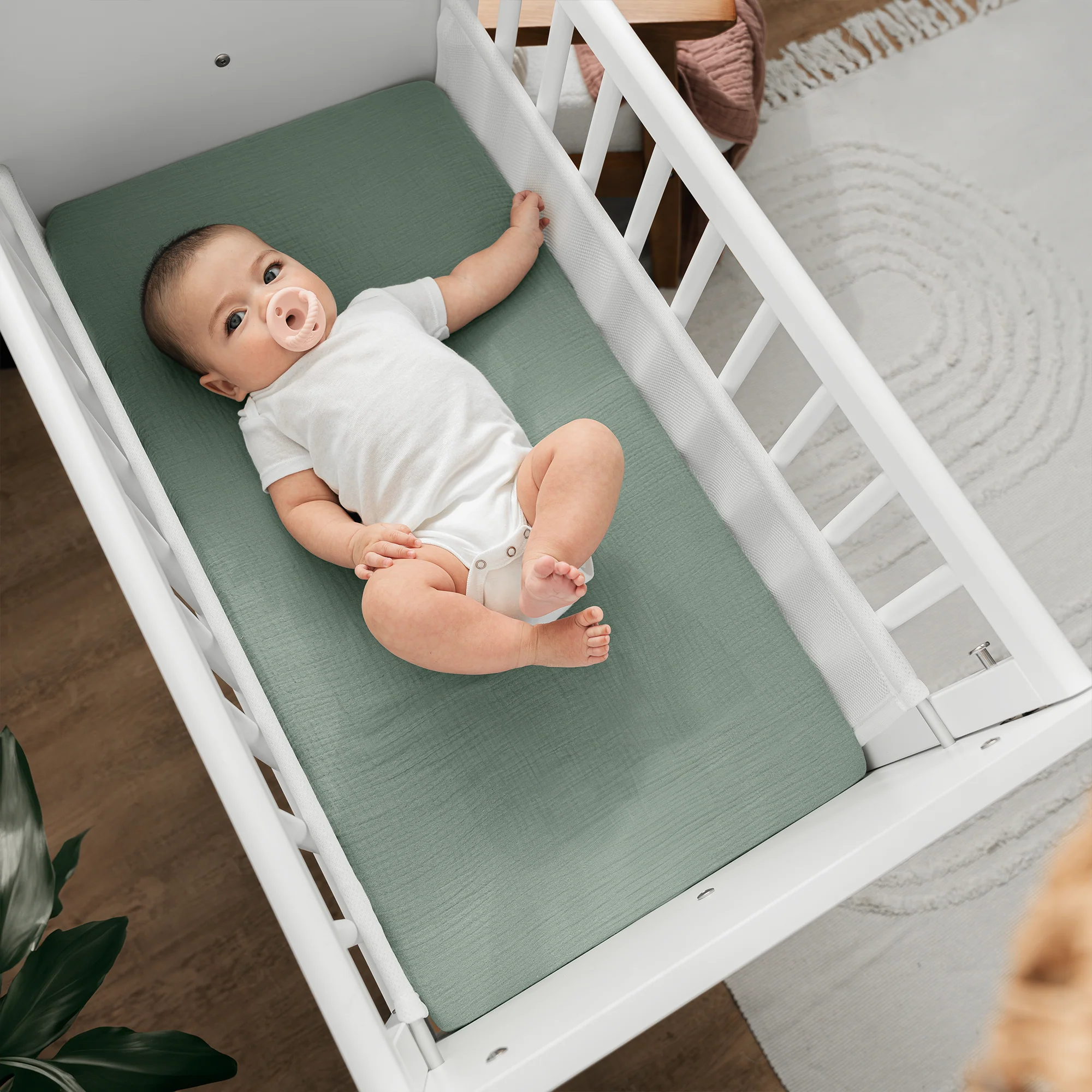 100% Muslin Cotton Fabric: Crafted with the finest 100% Muslin cotton, this bassinet sheet is not only exceptionally soft but also highly breathable, providing a gentle touch ideal for your baby's sensitive skin. The natural fabric ensures durability and comfort that grows softer with each wash.