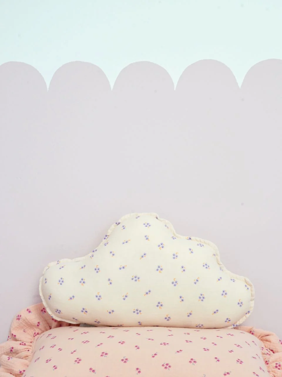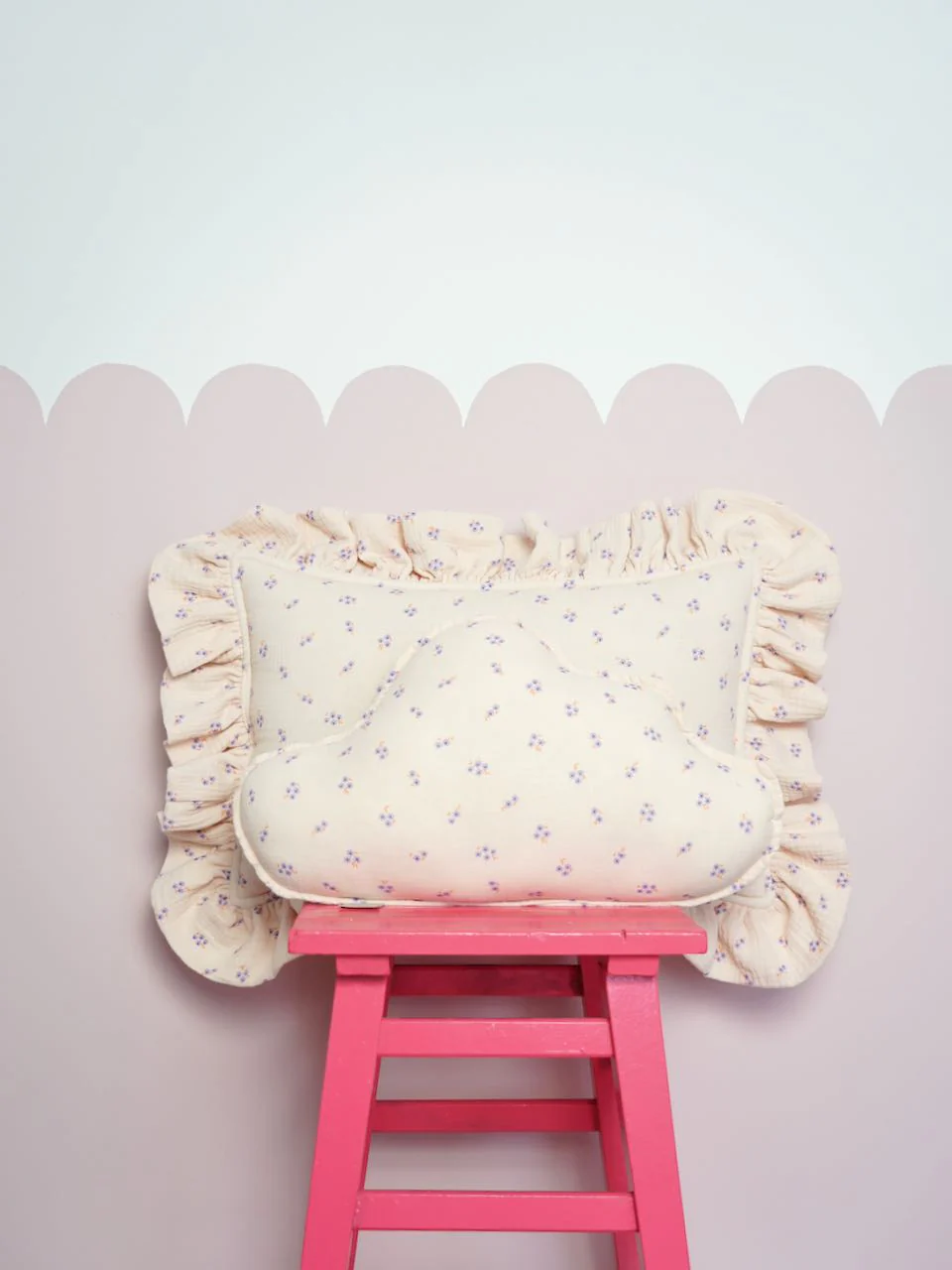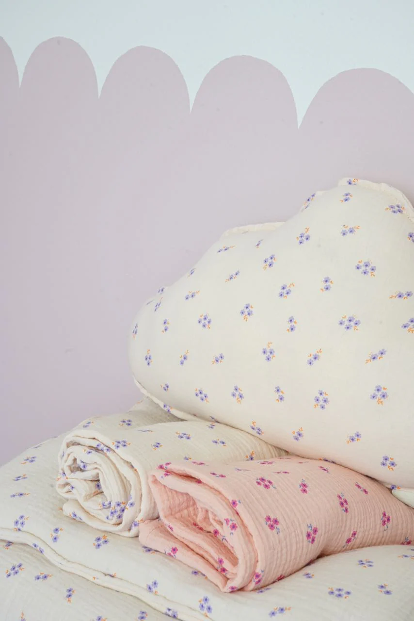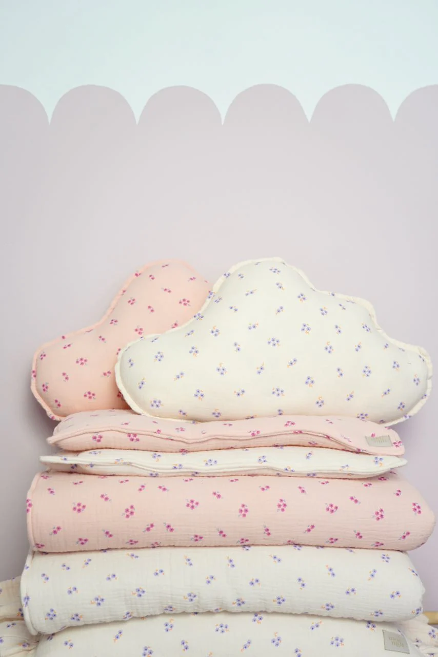 This fluffy cloud-shaped cushion is carefully sewn from comfortable, high-quality floral muslin fabric and comes in a light cream color that pairs stunningly with Scandinavian-style interiors.