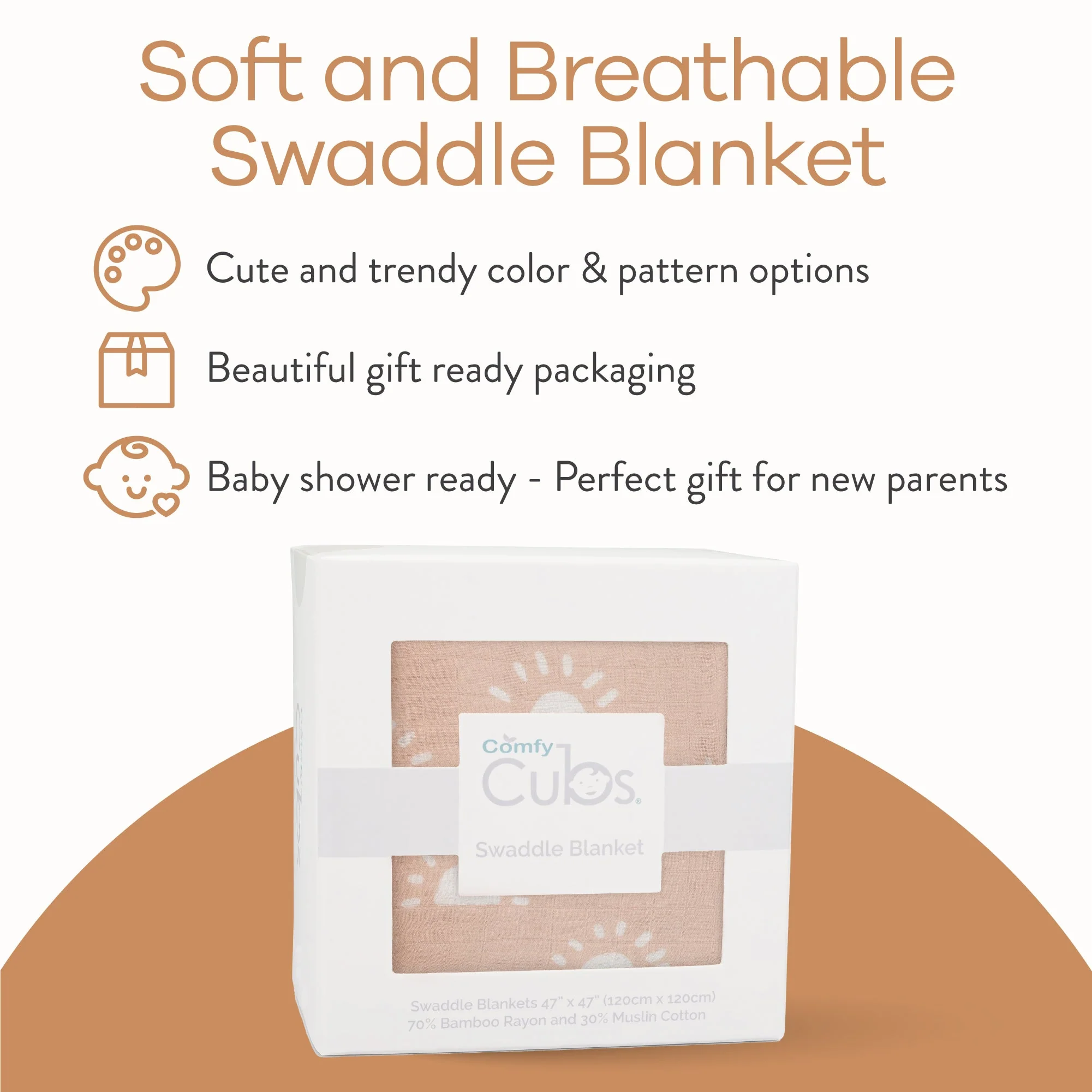 • Great Push or Baby Shower Gift – Our versatile swaddle blankets make a smart baby shower choice for expectant moms and dads or for your own infant.