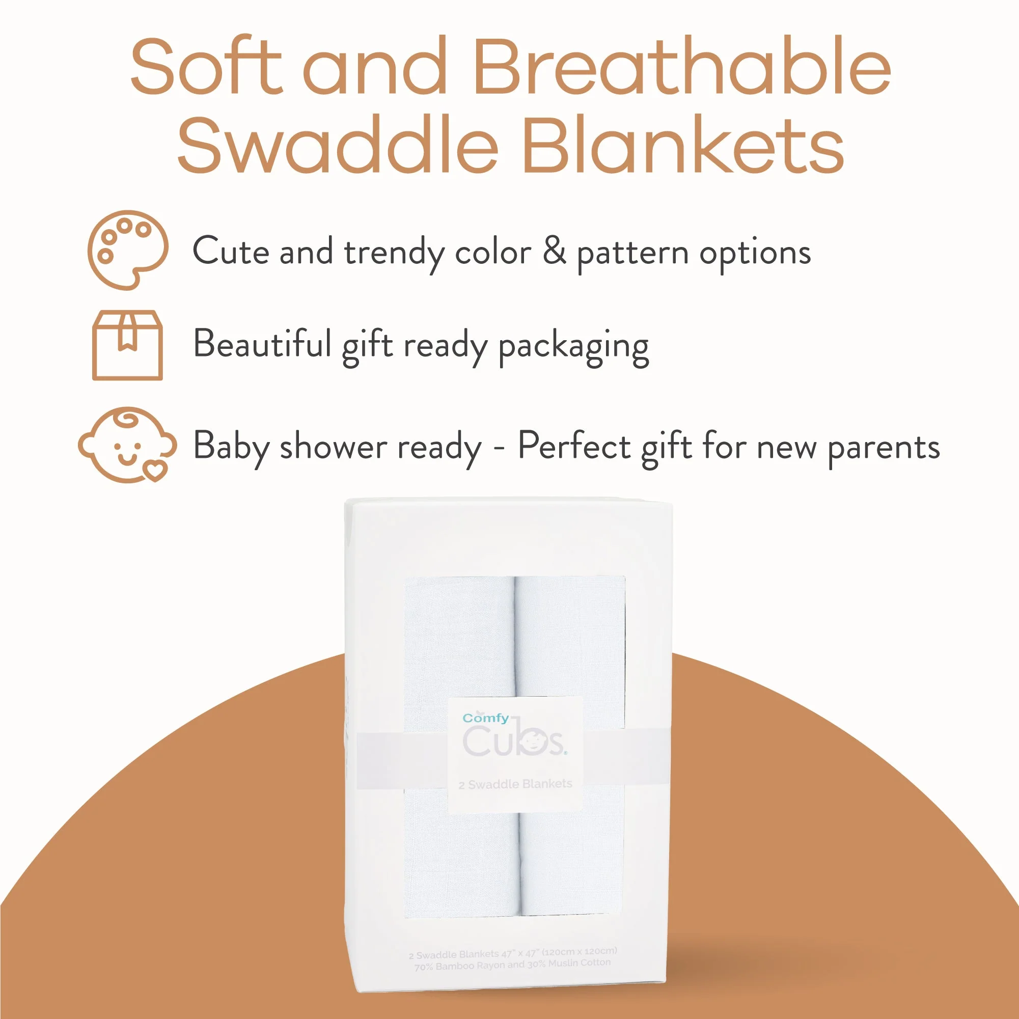 • Great Push or Baby Shower Gift – Our versatile swaddle blankets make a smart baby shower choice for expectant moms and dads or for your own infant.
