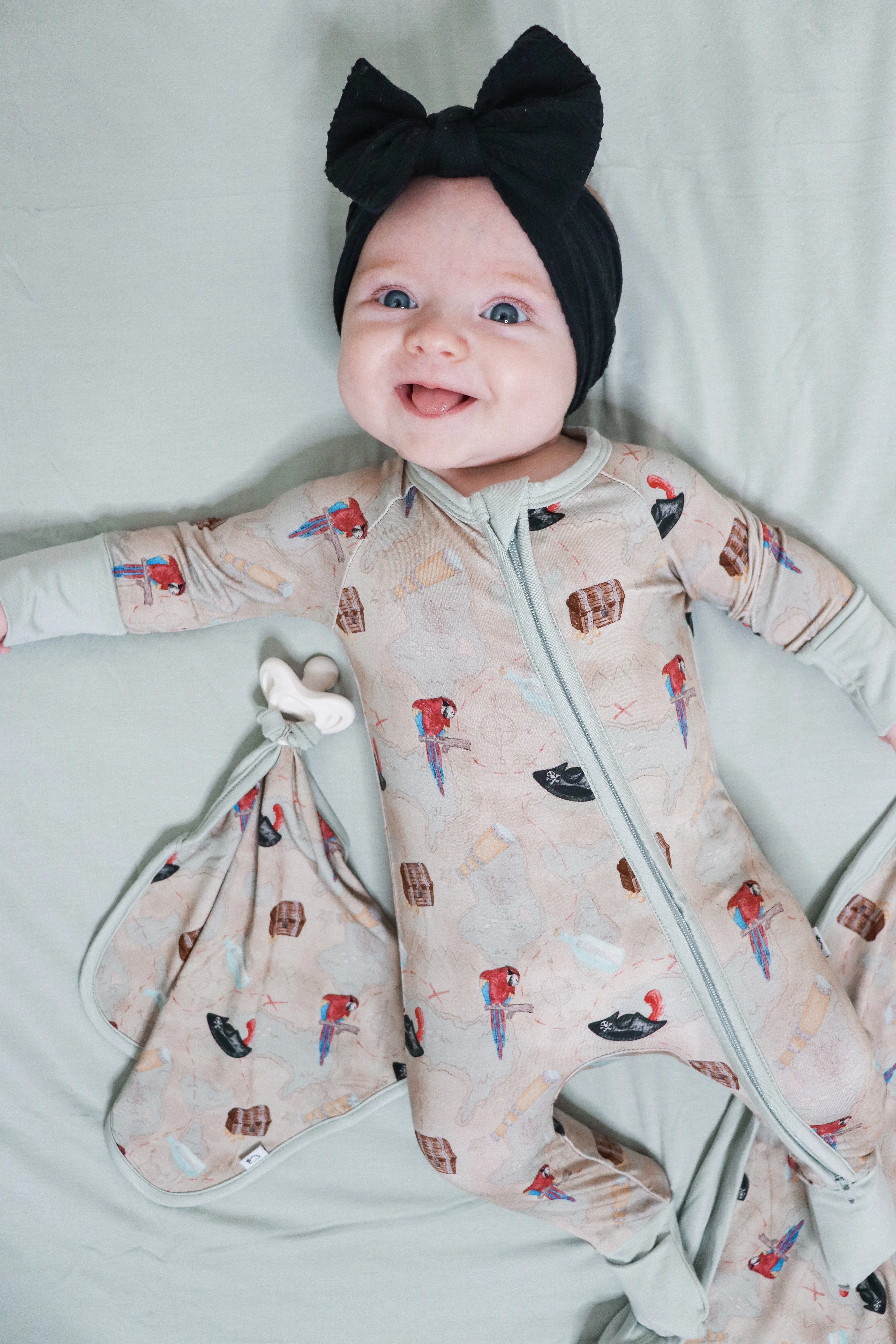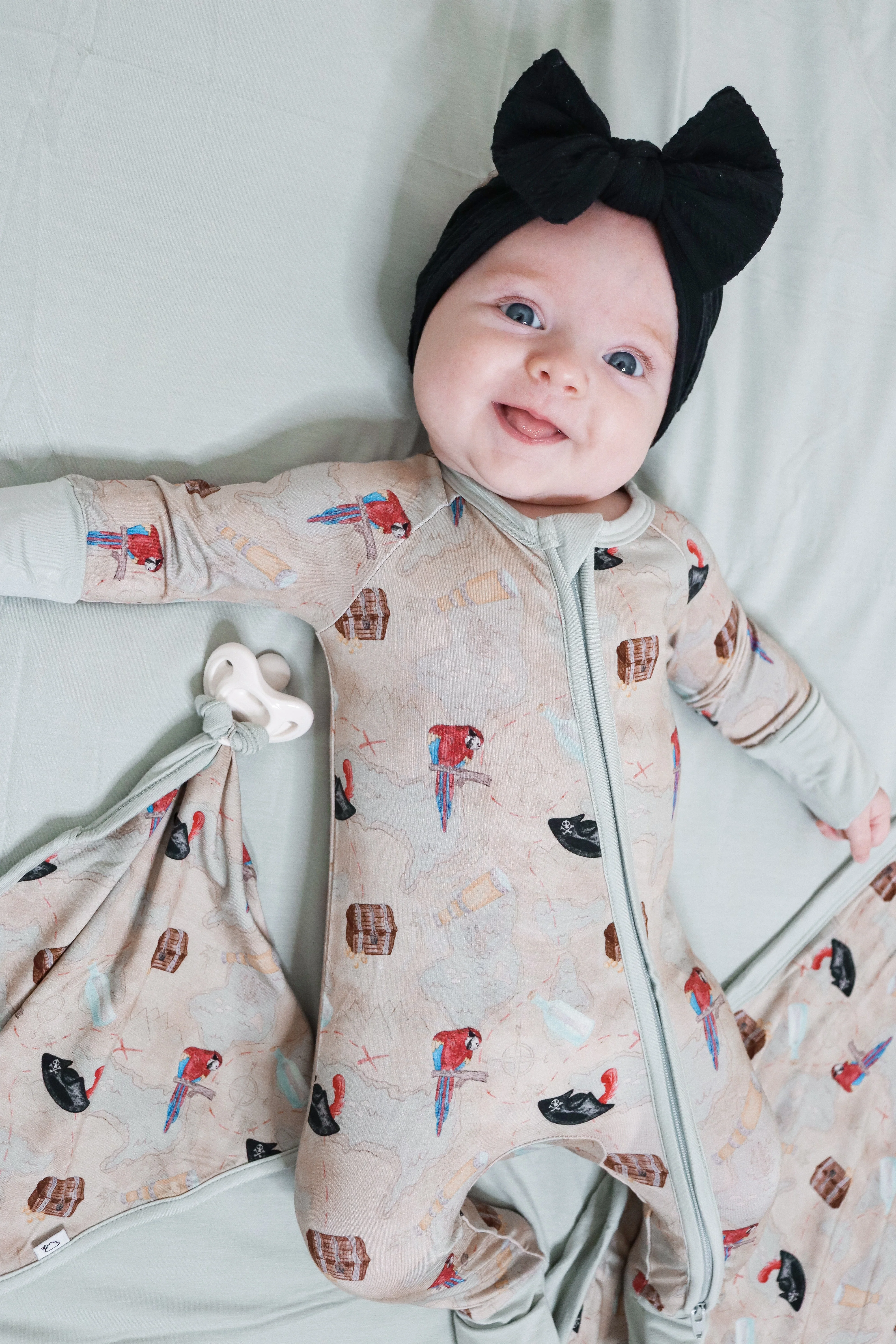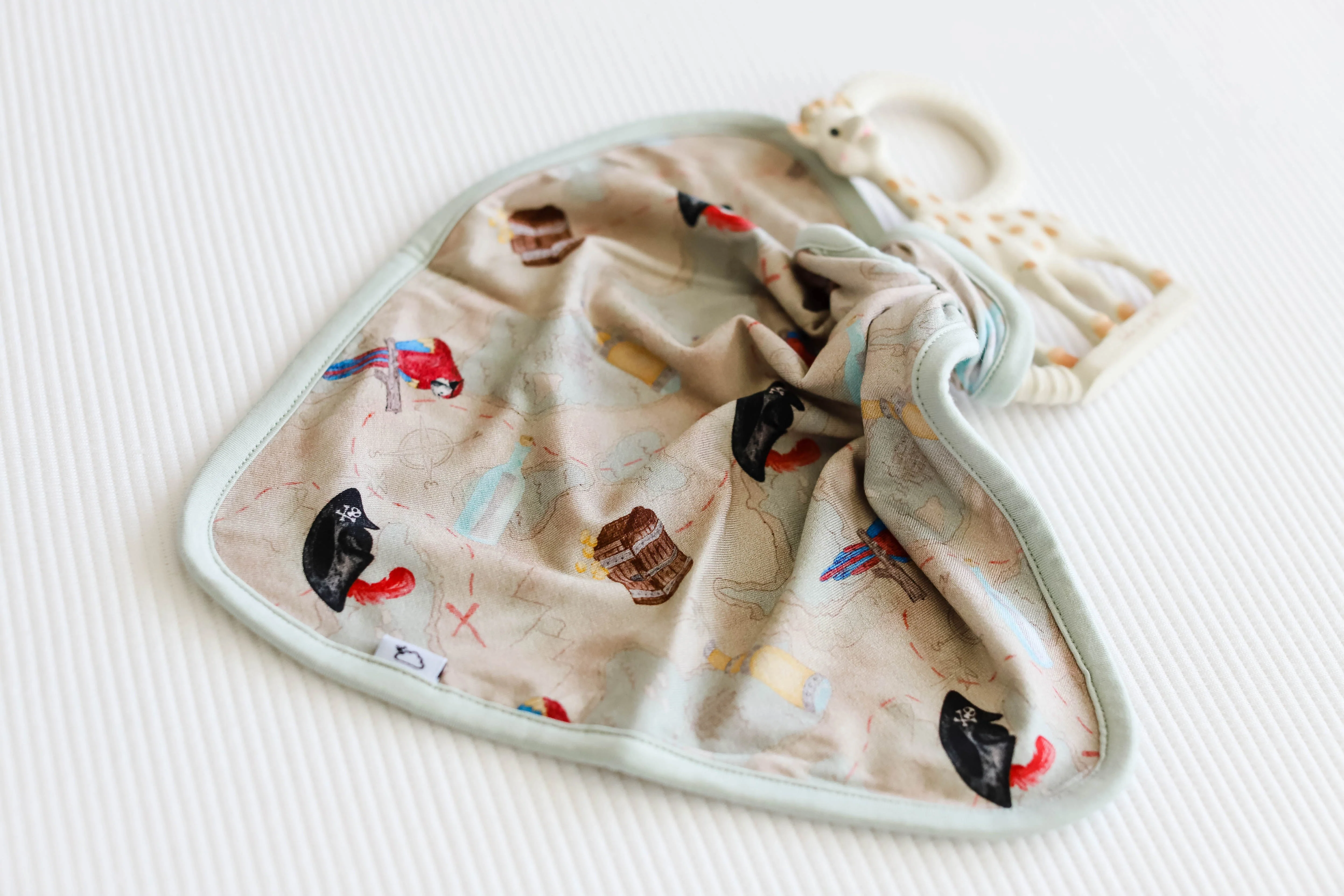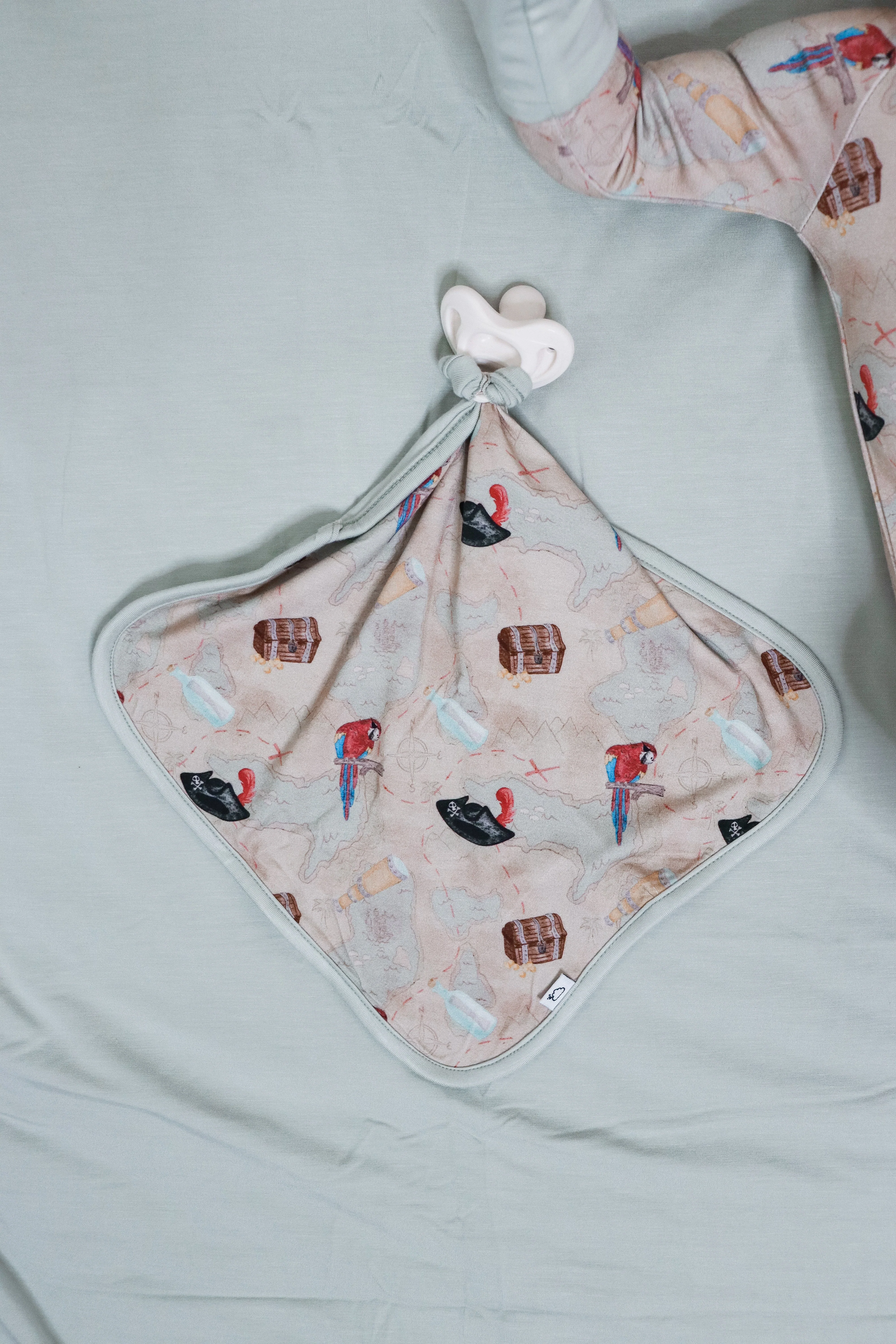 Set sail with the playful Parrot Bay Dream Lovey. Featuring a colorful parrot design and a treasure map graphic, this lovey is full of fun and adventure. With a handy pacifier holder and a hidden X marking the perfect spot, it's the perfect companion for your little explorer.