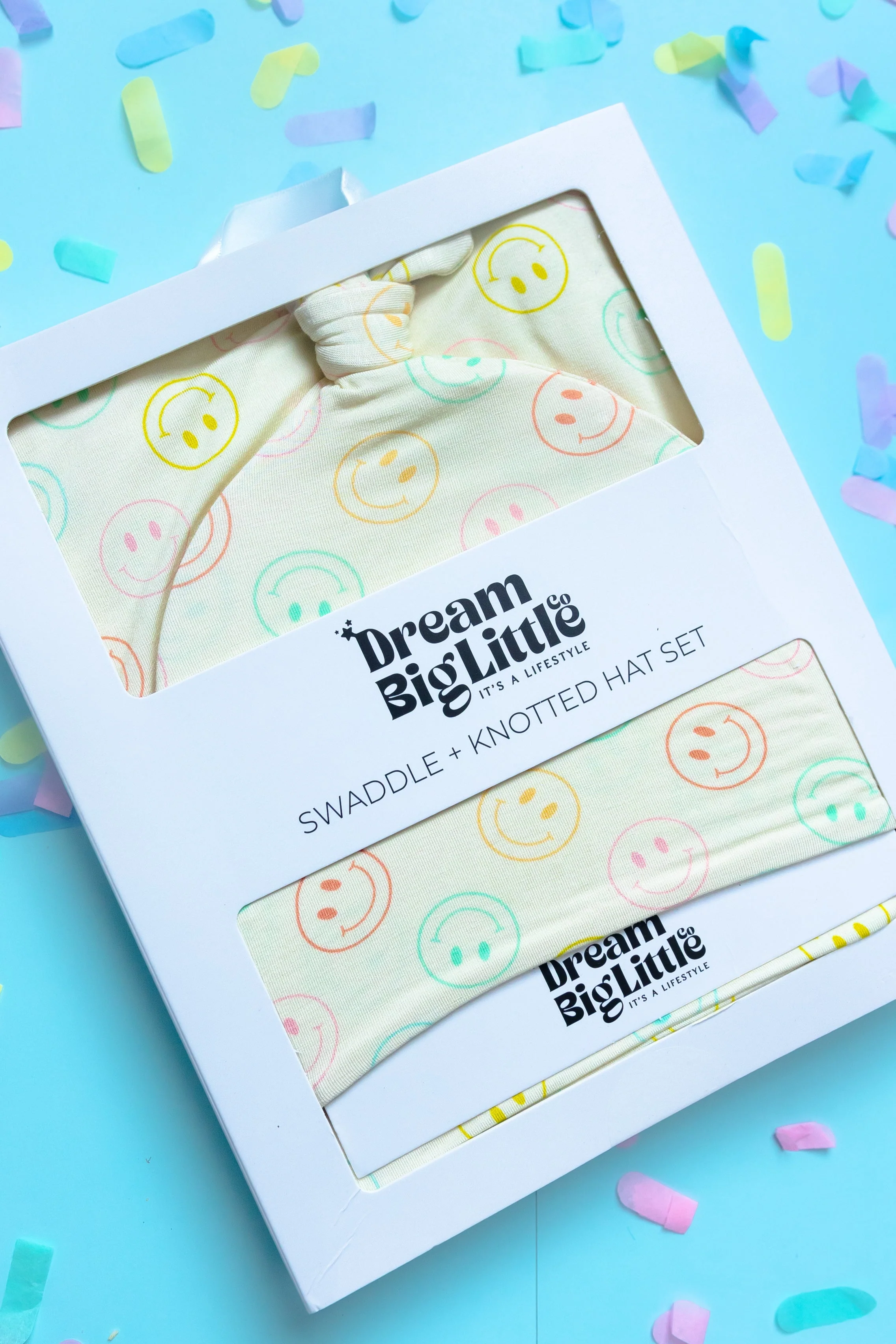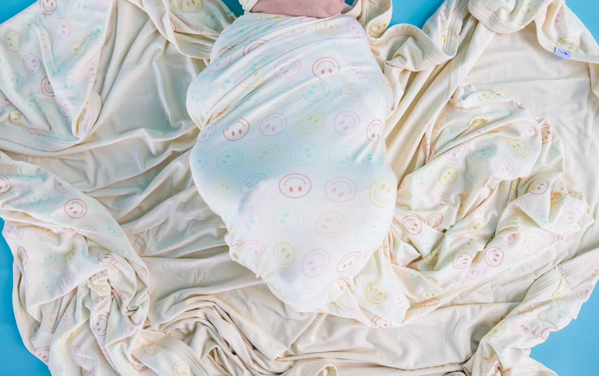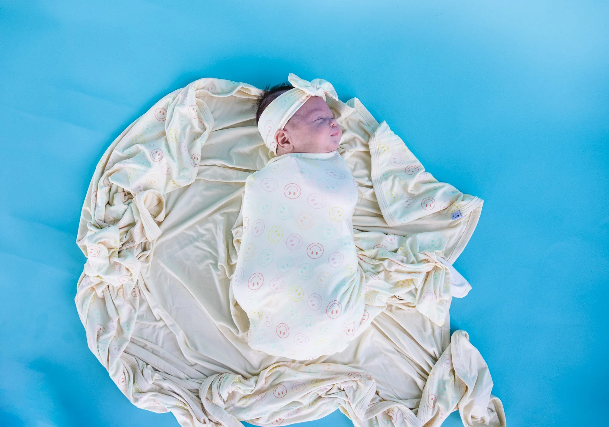Our Pastel Smiles Dream Swaddle & Beanie is the perfect for newborns, with a fun smiley face print and made from soft bamboo material. It's the perfect gift for any newborn, keeping them cozy and stylish!