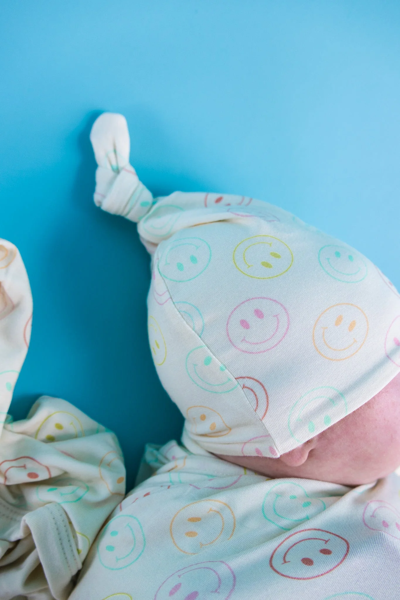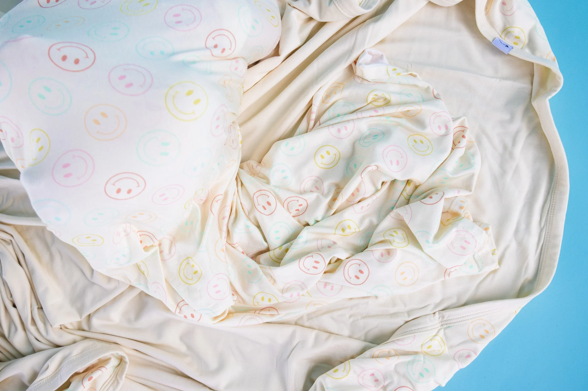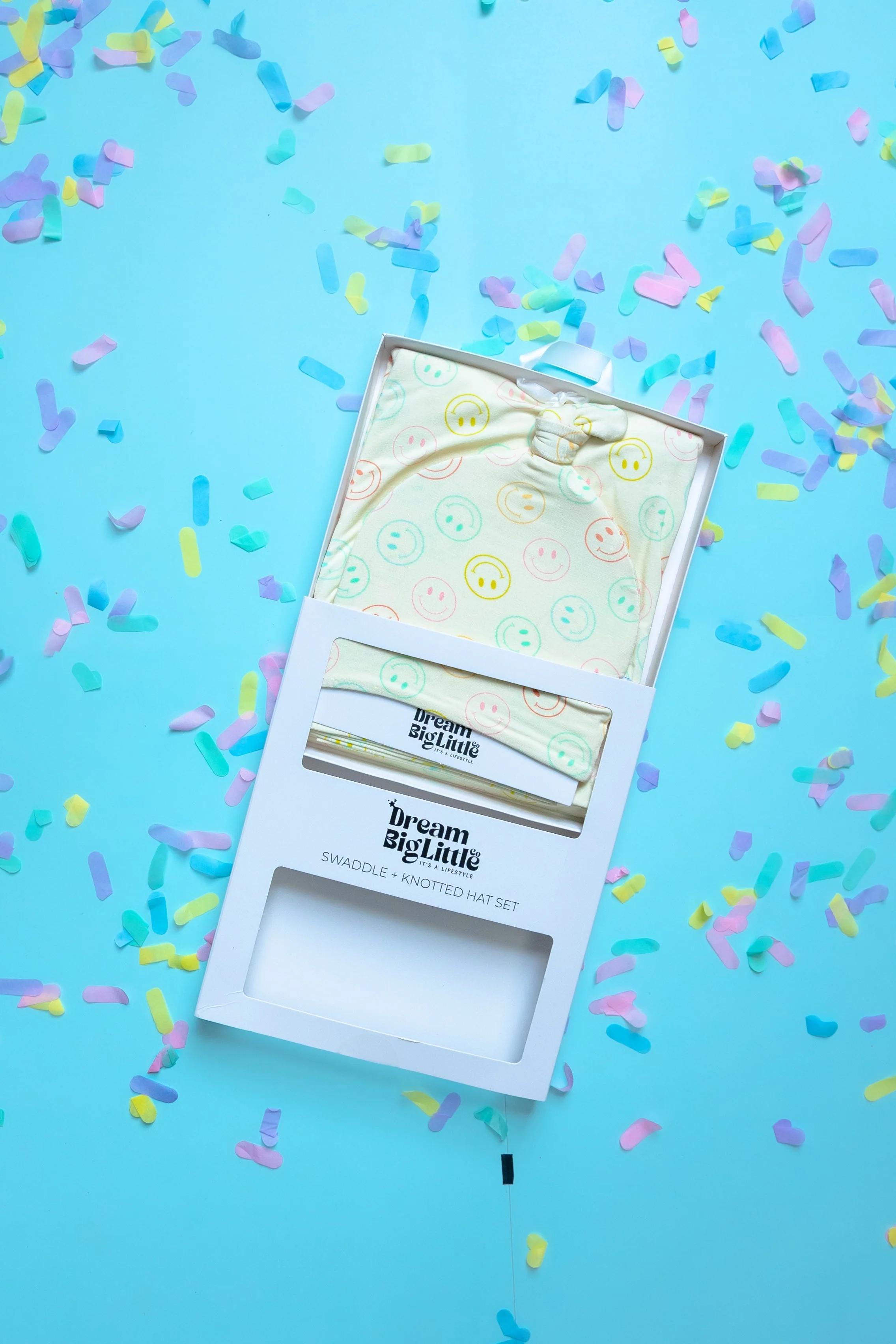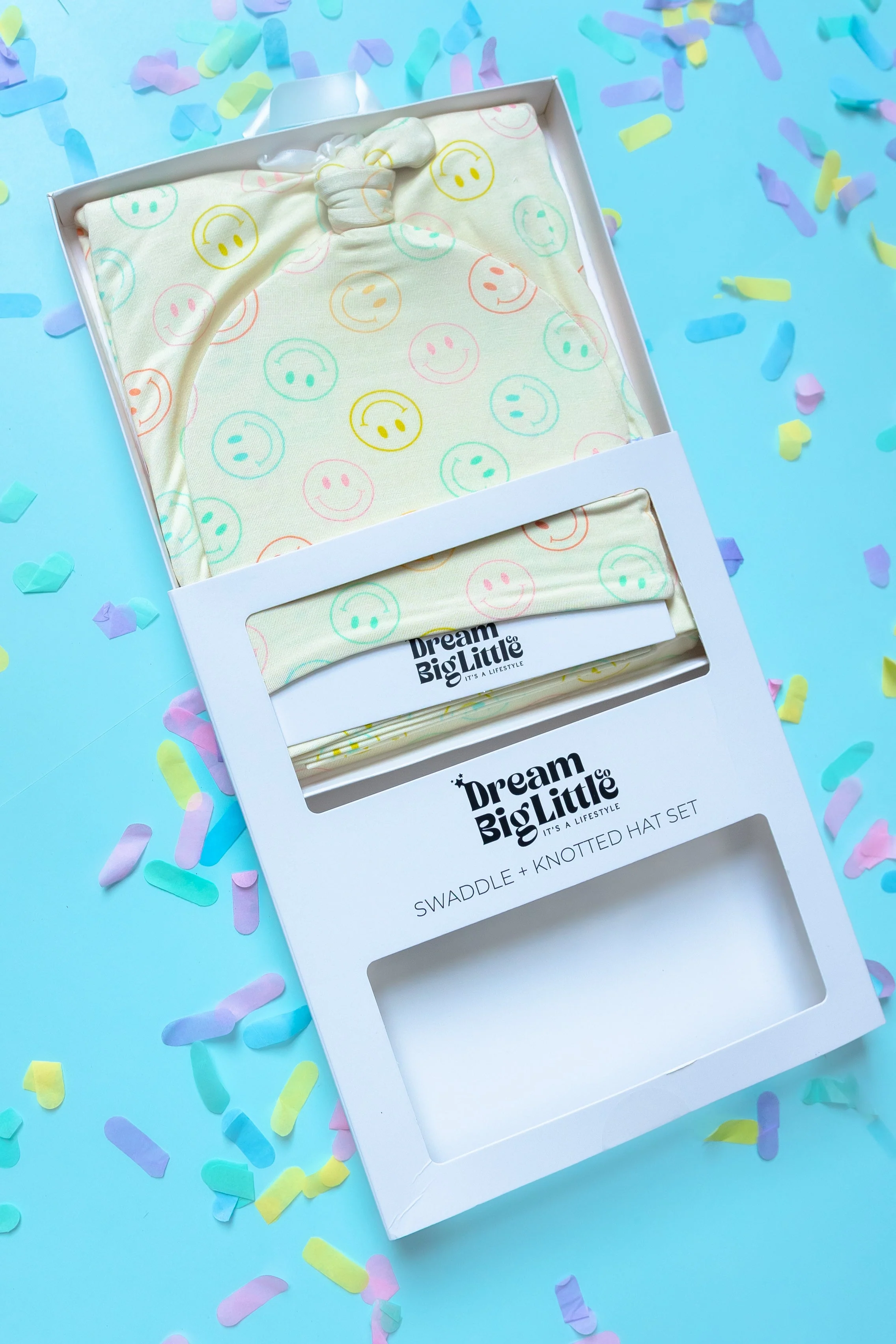 Our Pastel Smiles Dream Swaddle & Beanie is the perfect for newborns, with a fun smiley face print and made from soft bamboo material. It's the perfect gift for any newborn, keeping them cozy and stylish!