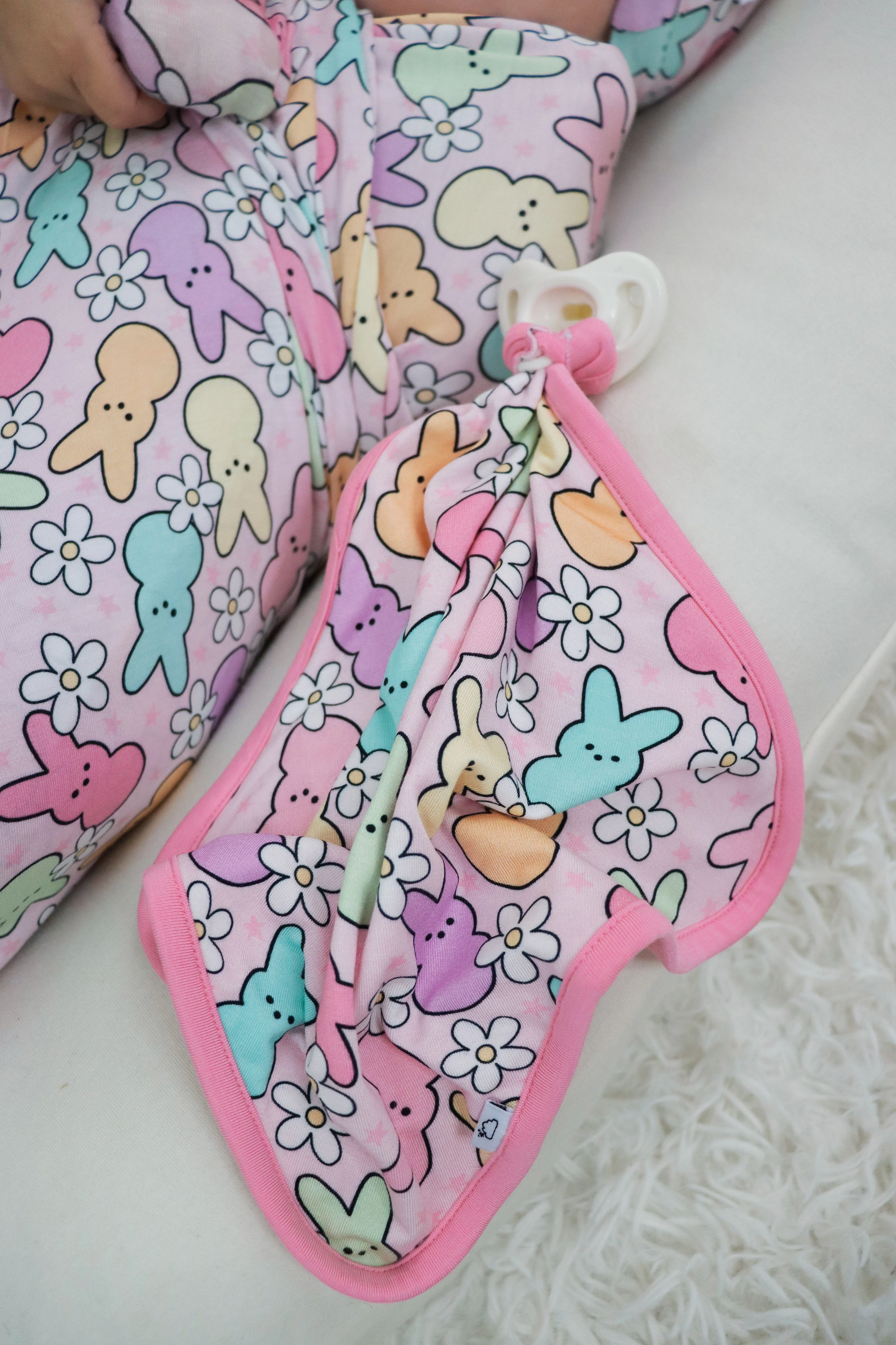 Get two-for-one cuteness with our Peeps For Daisies Dream Lovey! This lovey not only acts as a pacifier holder, but it also features our adorable Peeps print, making it the perfect addition to our Peeps For Daisies collection. Fun and functional, it's the perfect Easter basket gift.