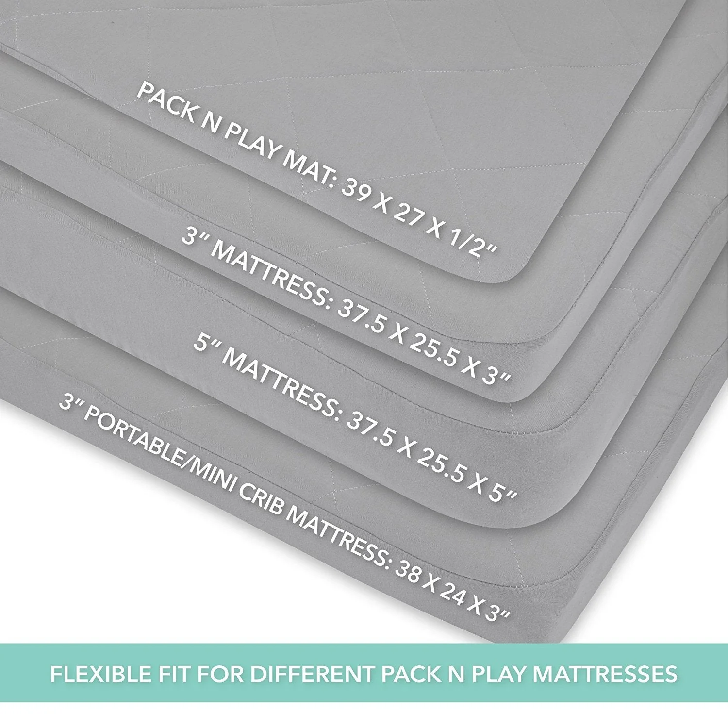 - Flexible Fit: Ideal for Standard Pack n Play, Portable Crib and Playard Mattresses up to 3 inches. Dimensions: 24 x 38 x 3 inches