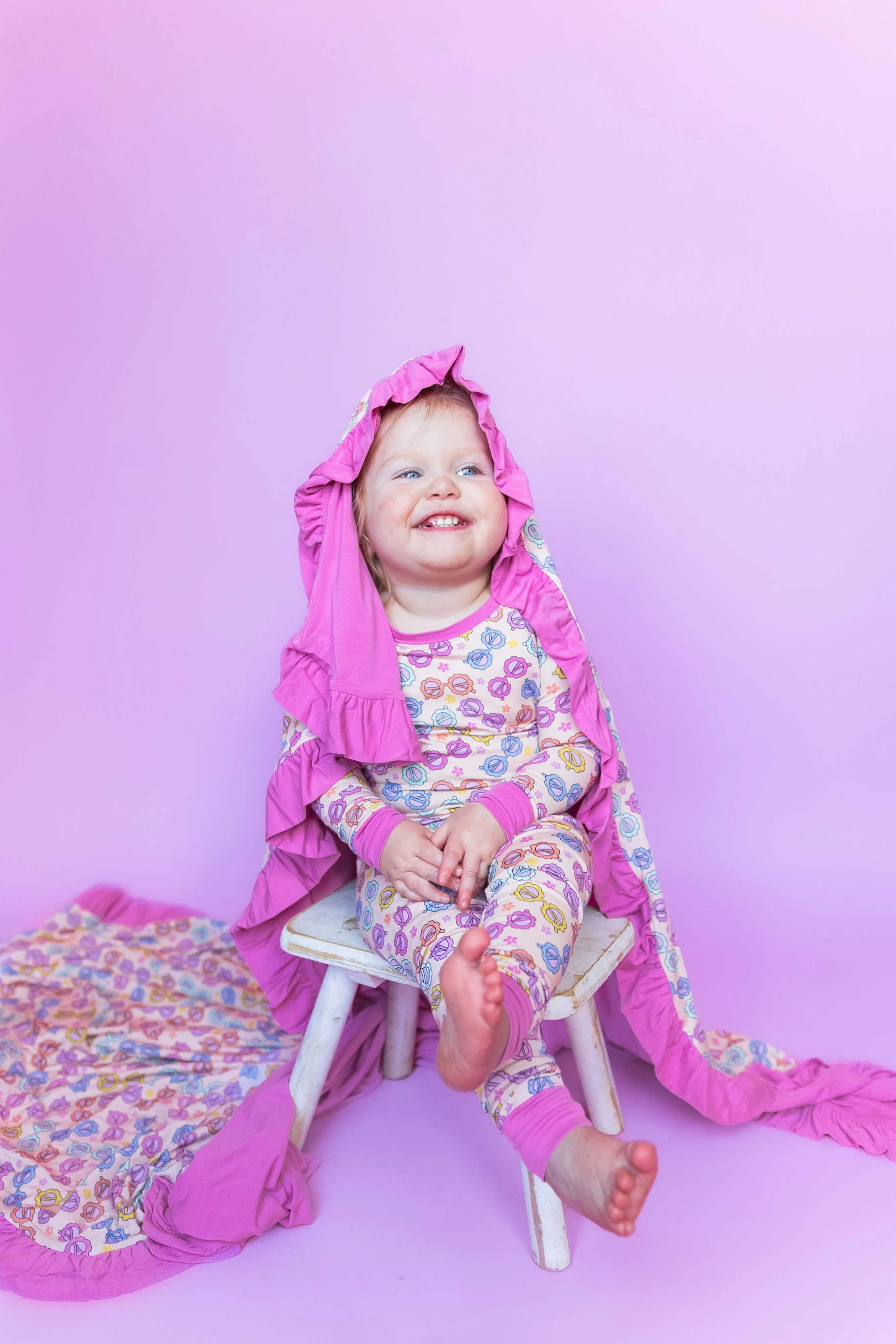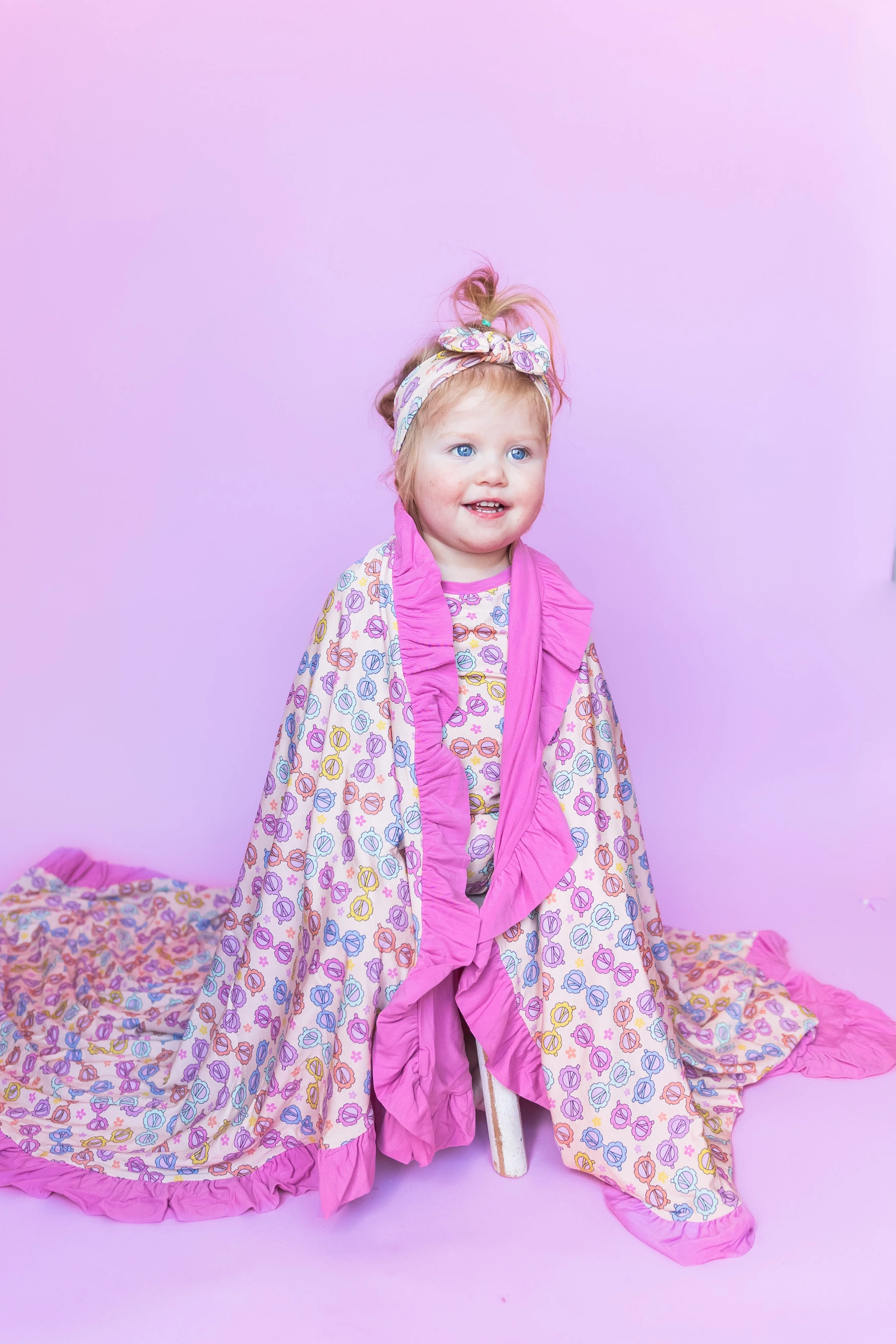 Experience the warm rays of sunshine with our Ray of Sunshine Ruffle Blanket. This playful ruffle blanket is adorned with a fun sunglasses print, making it the perfect accessory for a breezy day or cozy night in. Made with comfortable and eco-friendly bamboo material, this blanket will bring a smile to your face and warmth to your soul.