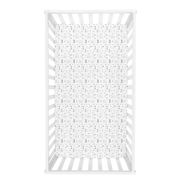 The Scandi Animals 2-Pack Microfiber Fitted Crib Sheet Set by Sammy and Lou features a scandi forest animal print in grays on a white background and a script print that reads “dream big, grow wise, be brave” in gray on a white background. Crib sheets fit a standard 28 in x 52 in crib mattress with 8-inch deep pockets and elastic surrounding the entire opening ensuring a more secure fit. Additional coordinating Sammy and Lou Crib Bedding Separates sold separately. Please adhere to JMPA's Safe Infant Bedding Practices.