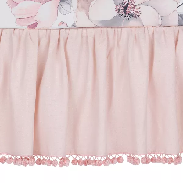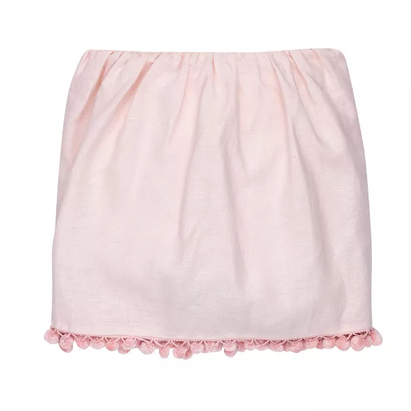 - 16 H drop rayon/cotton/olefin crib skirt in pink with pom pom bottom edge