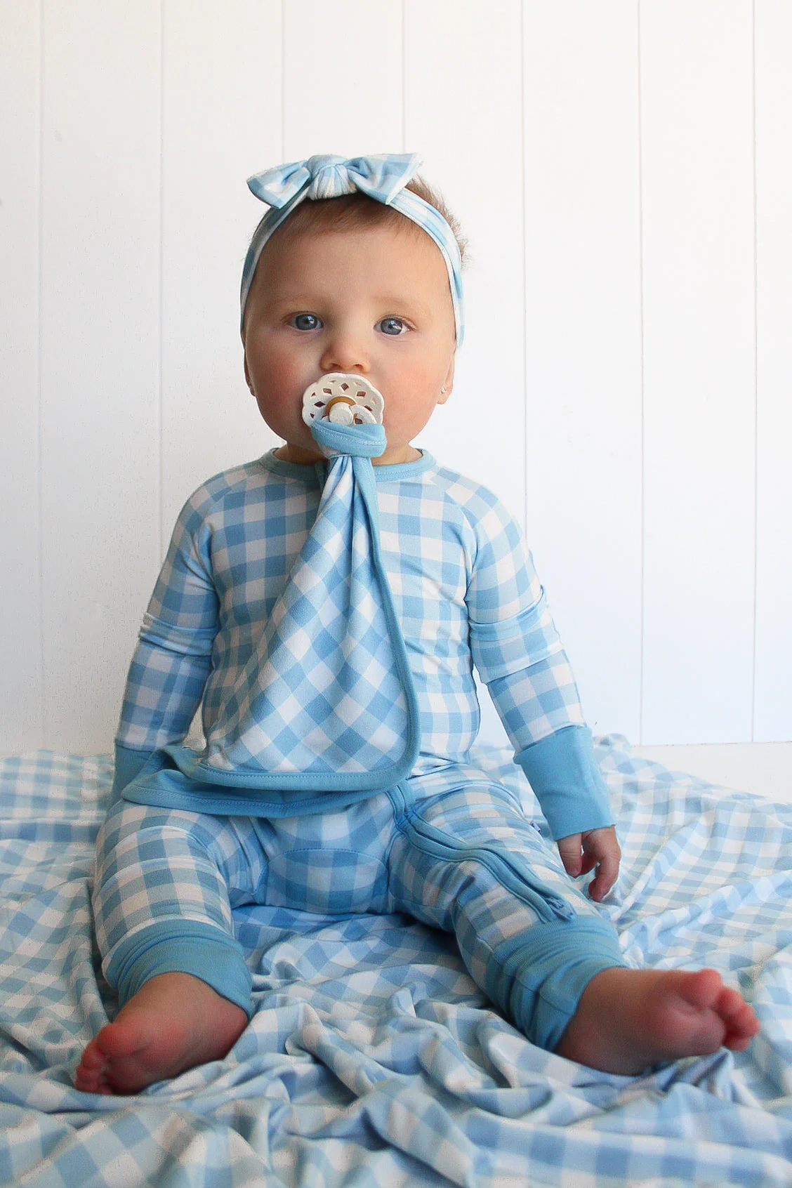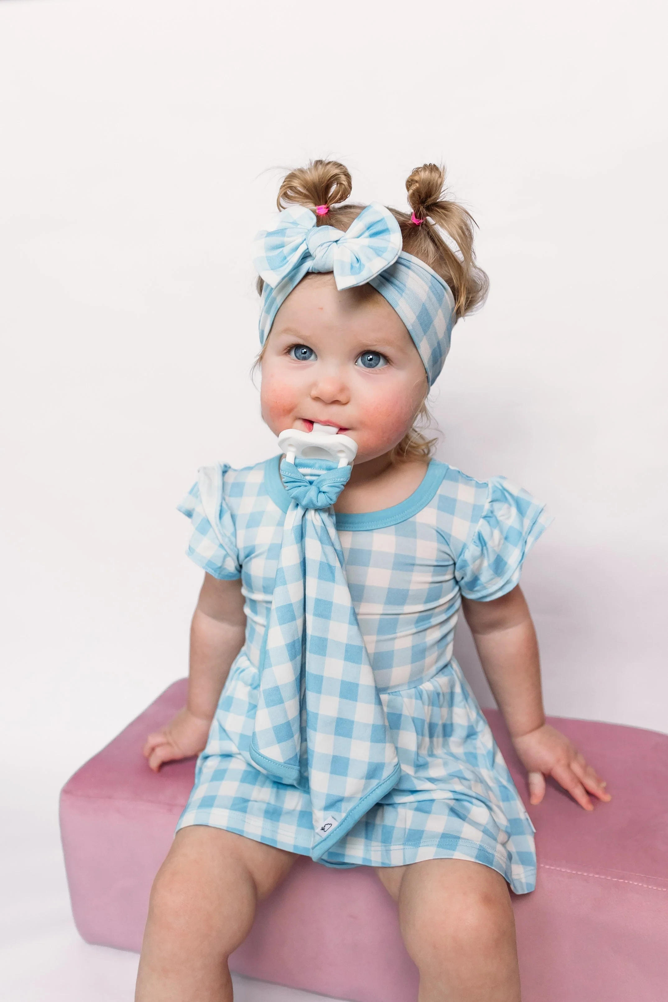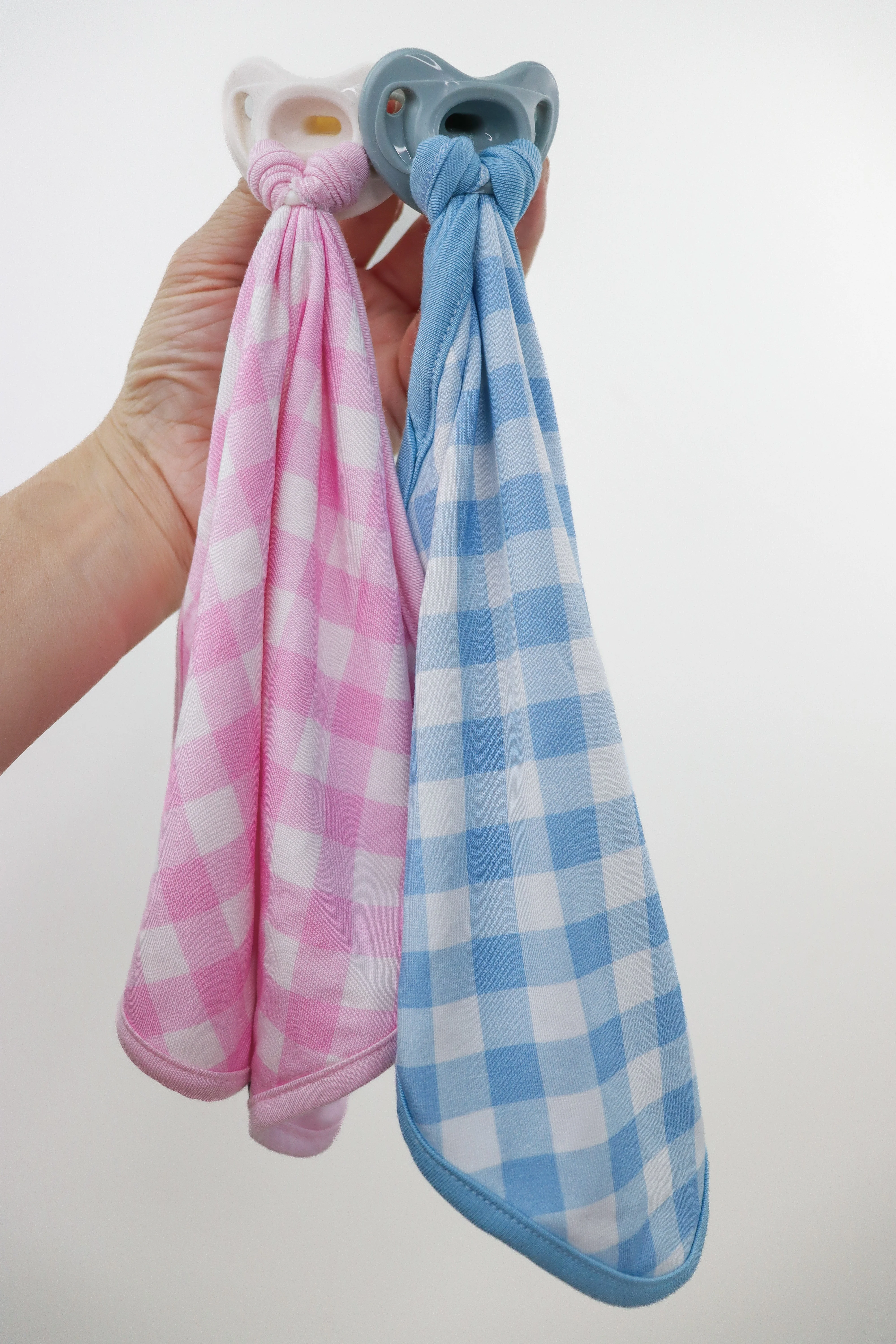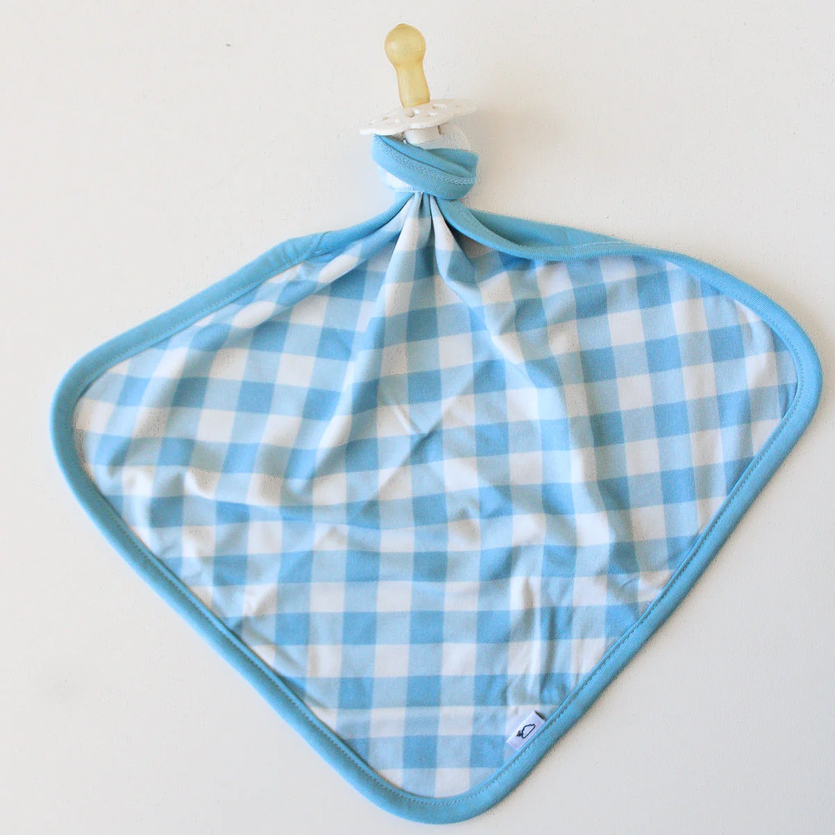 Fall in love with this Sky Blue Gingham Dream Lovey! Keep your little one's pacifier close with the pacifier holder while snuggling them with the soft bamboo material. The sky blue gingham print adds a touch of charm to this must-have lovey. Sweet dreams guaranteed!
