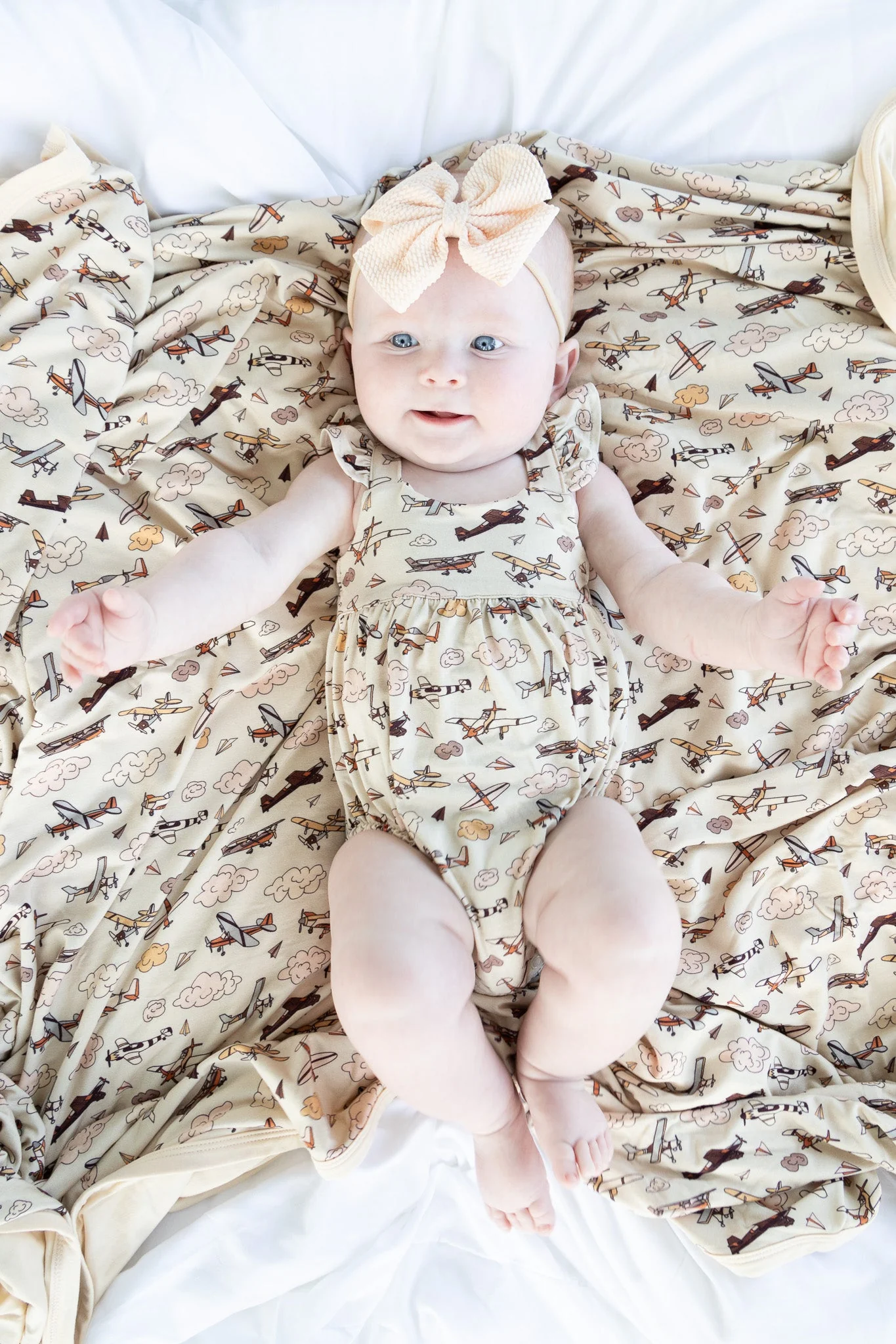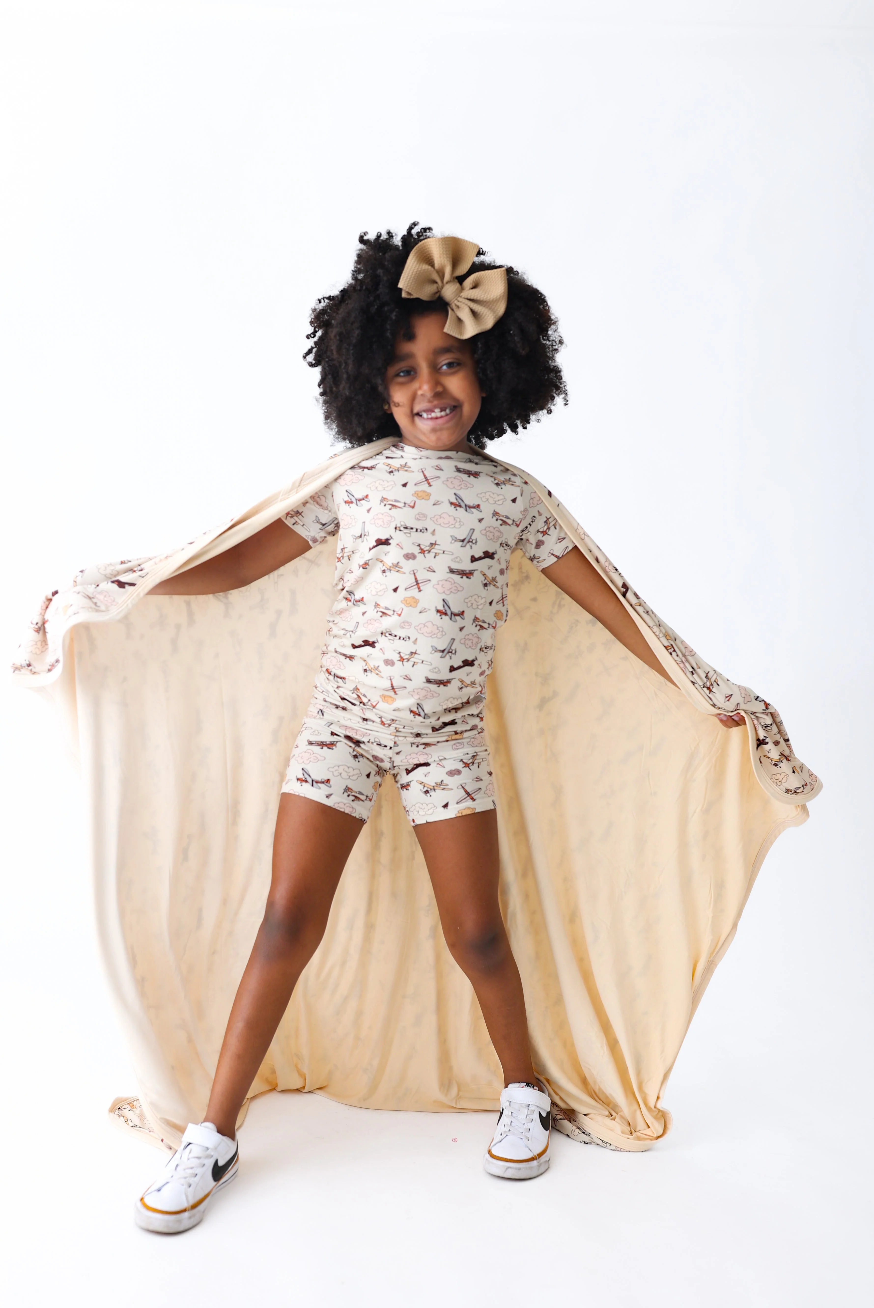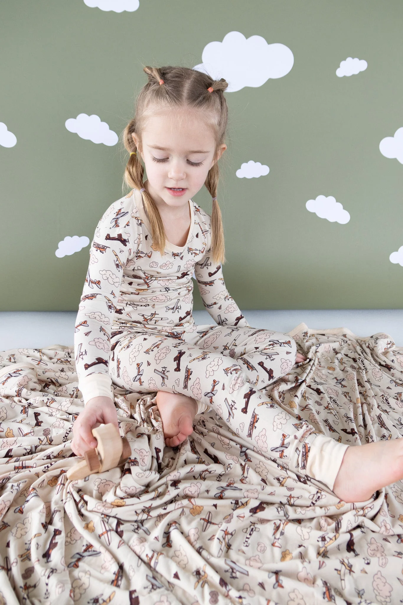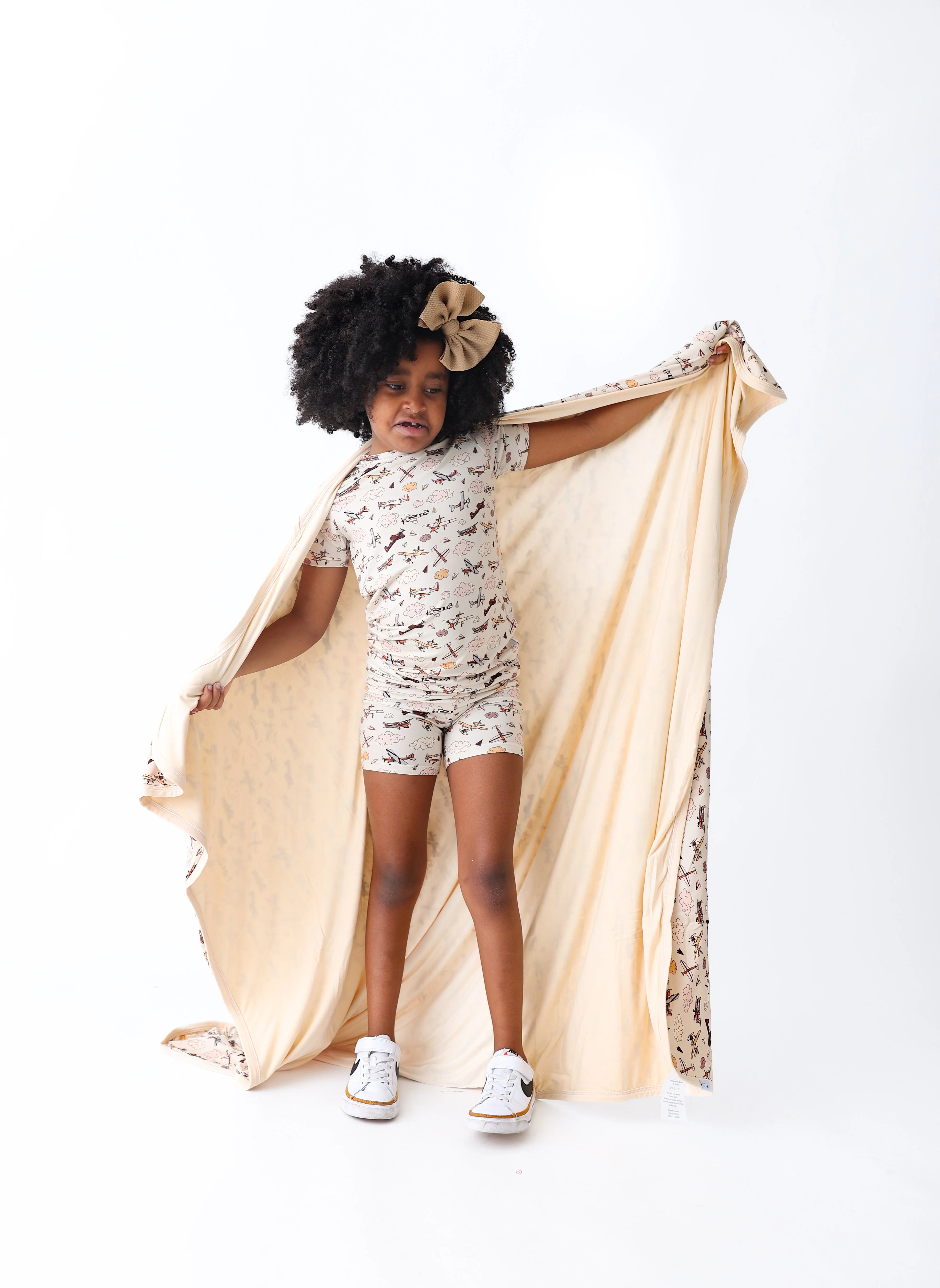 Snuggle up and soar through the night with our So Fly Dream Blanket. Made from bamboo, this soft and comfortable blanket features a playful airplane design to give you fun airplane dreams. Don't miss out on the perfect snuggle buddy!
