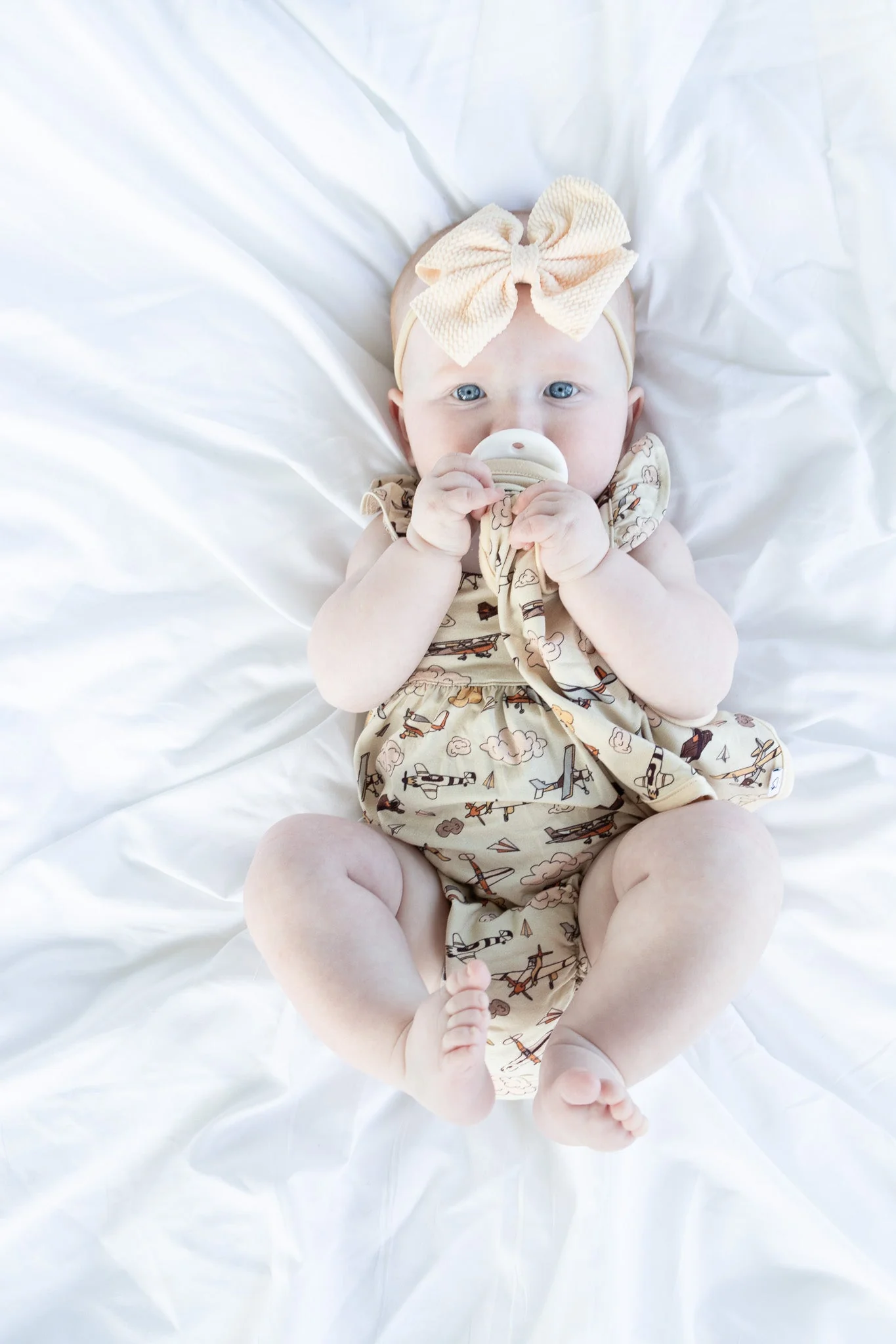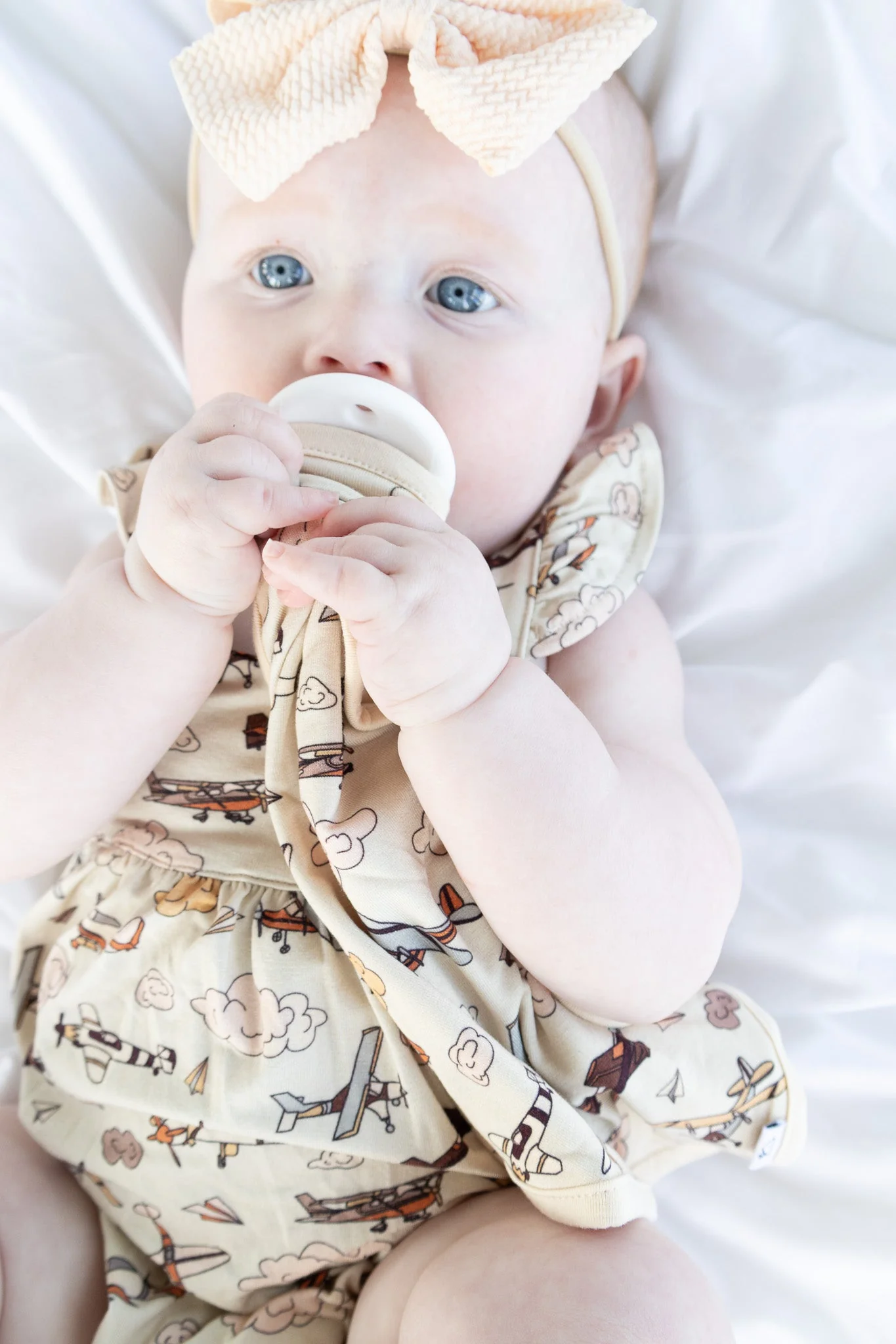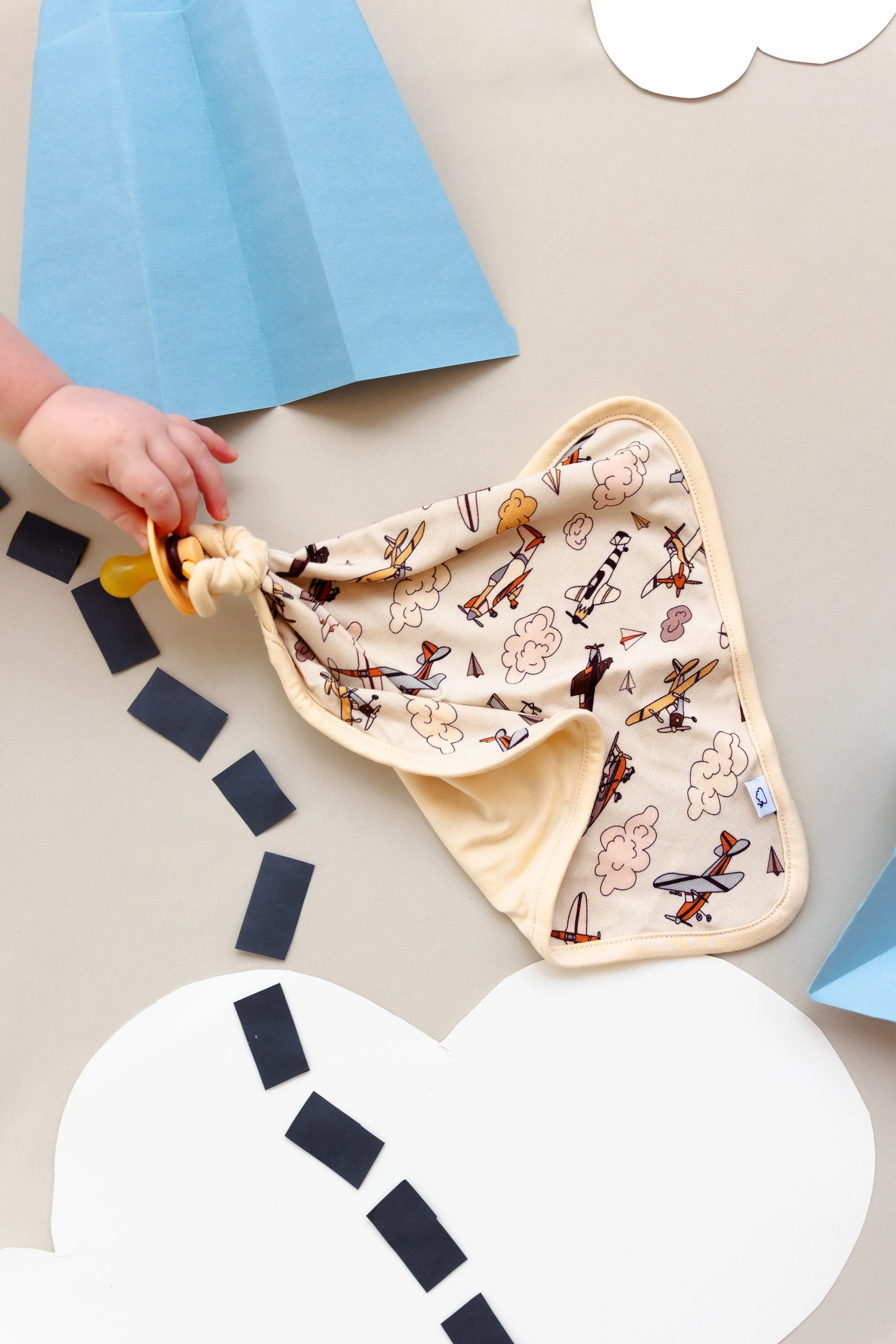 Fly high in style with So Fly Dream Lovey! The airplane design adds a fun touch to this lovey and pacifier holder. Made from soft bamboo material, it's gentle for baby's delicate skin. Say bye-bye to lost pacifiers and hello to a happy baby!