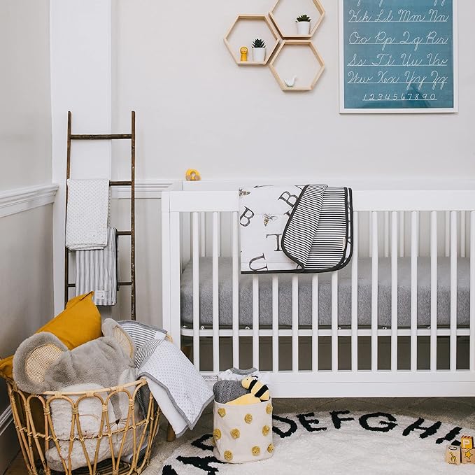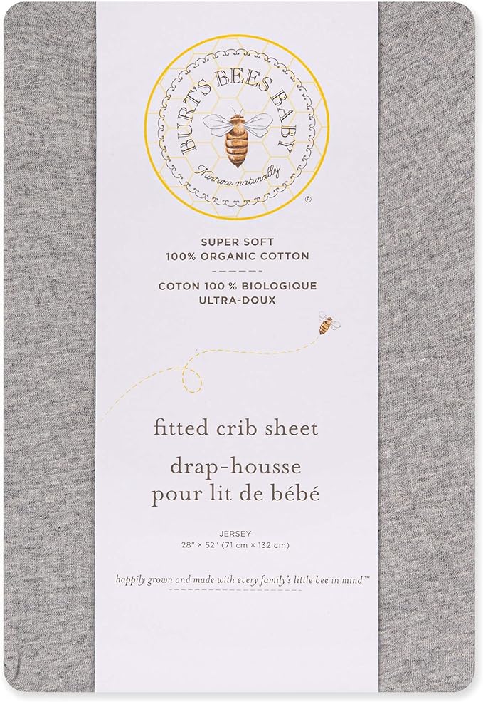 All of Burt’s Bees Baby crib bedding is made with GOTS certified 100% organic cotton and safe for babies sensitive skin. This jersey knit breathable fabric provides ultimate comfort. These full-fitted 28” x 52” crib sheet fit standard crib and toddler mattresses. Burt’s Bees Baby uses a ring-spun cotton and an extra combing process to guarantee organic cotton fibers are super soft wash after wash for a restful night's sleep.