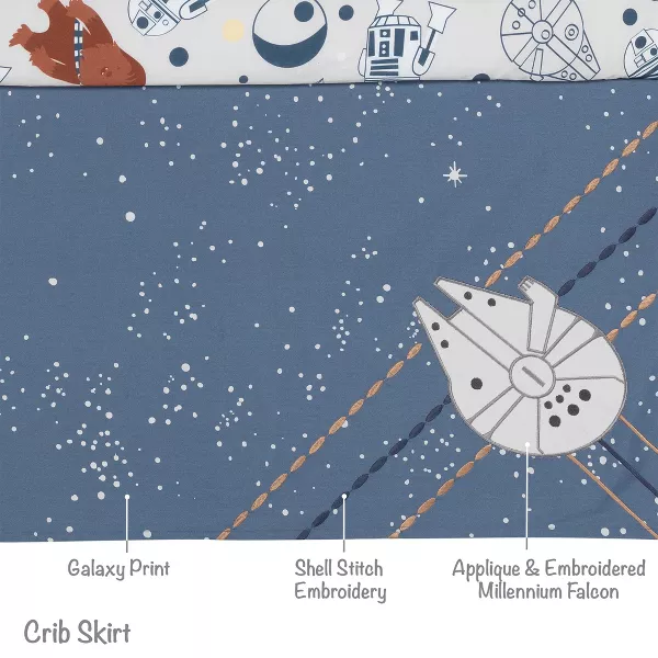 - Crib skirt features appliqued Millennium Falcon with embroidered stitching