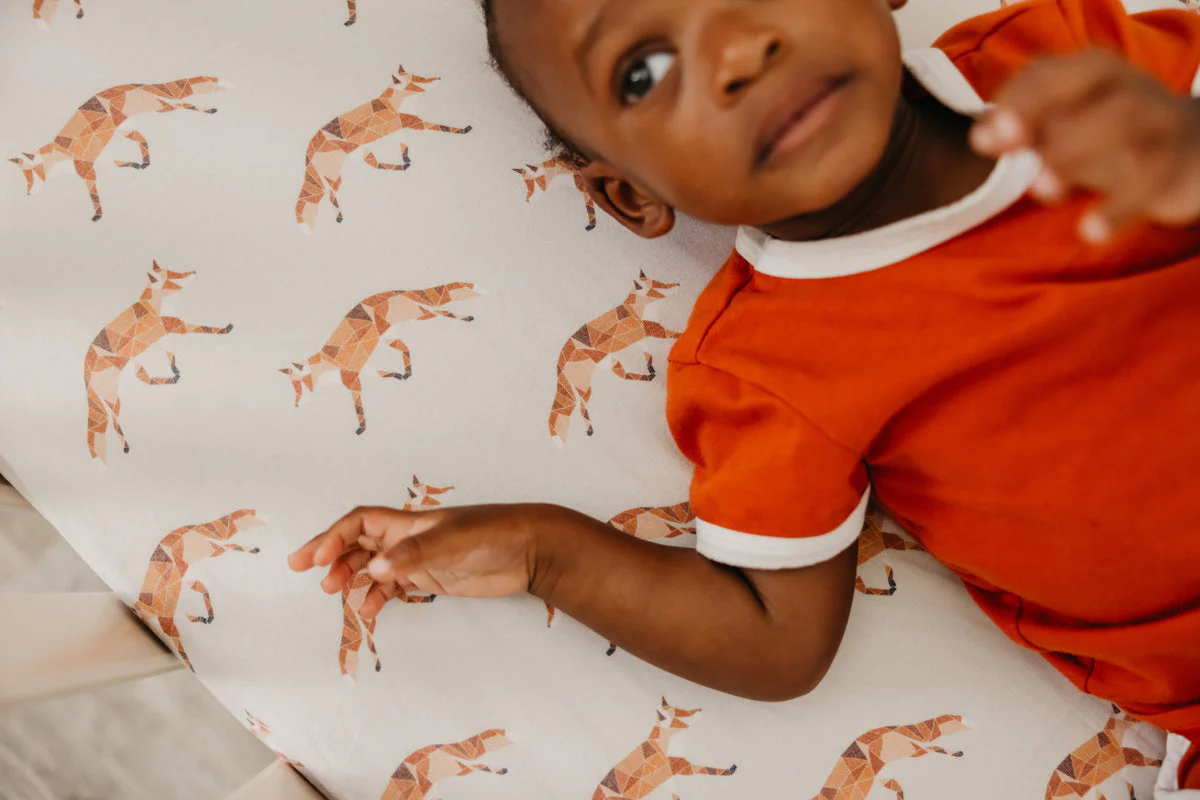 This luxurious Swift Premium fitted Crib Sheet from Copper Pearl will create a soft spot for your little one to dream. It is elasticized all around for a snug fit on standard-size mattresses along with a fun deer print to match your nursery decor.