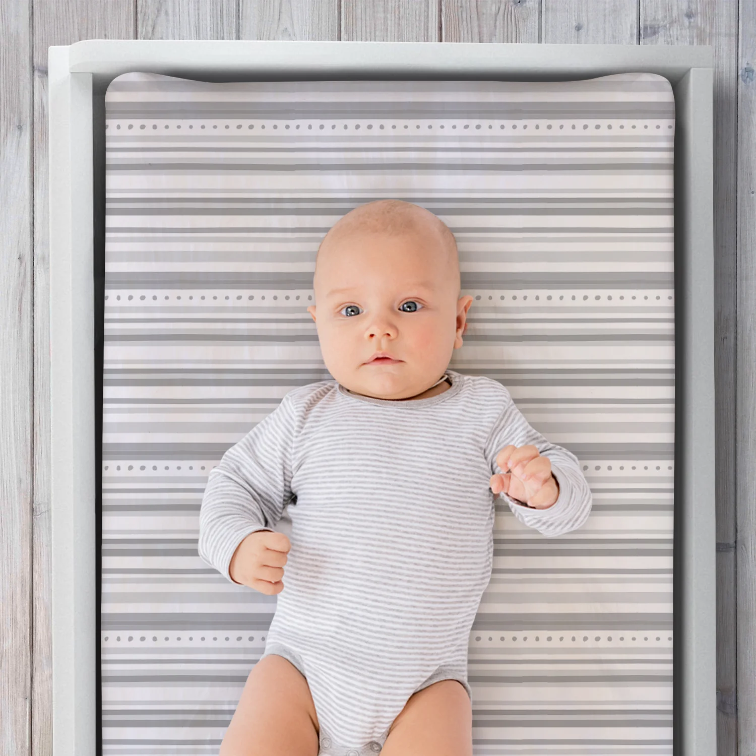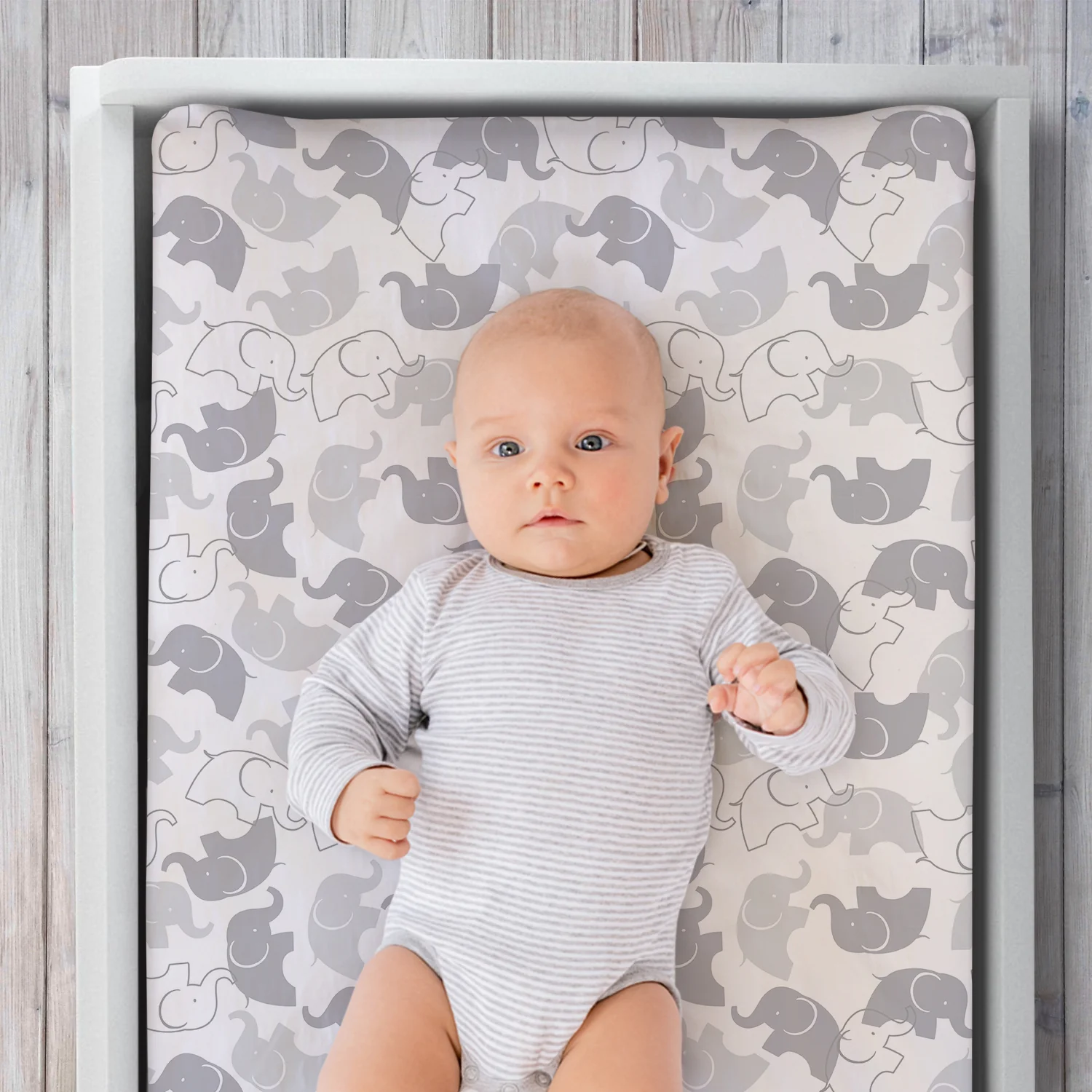 It's Sunday in the park every day with the Pink Roses Floral 2 pack Changing Pad Cover set from The Peanutshell. Shades of pink, grey, and white, these two changing pad covers will surround your baby with softness. The first changing pad cover is a soft watercolor print of roses, while the second is a sweet all-over ditsy print. Microfiber fabric is comfy and soft and the easiest of care; pack of two allows for quick changes. Perfect for any little girl's room!