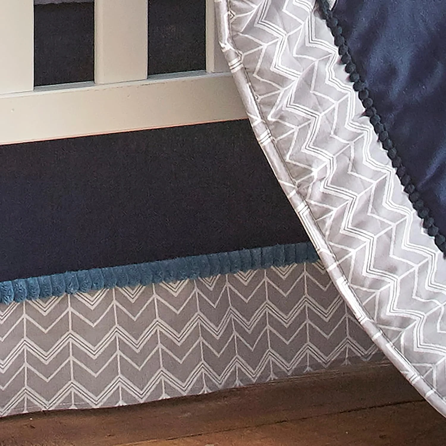 - LITTLE BOY BABY ACCESSORIES: The navy, grey blue and white color palette of the Trail Mix crib set is fun and adventurous, making this bedding set, or any of the nursery accessories that coordinate with it, the perfect baby shower gift or accent for a new