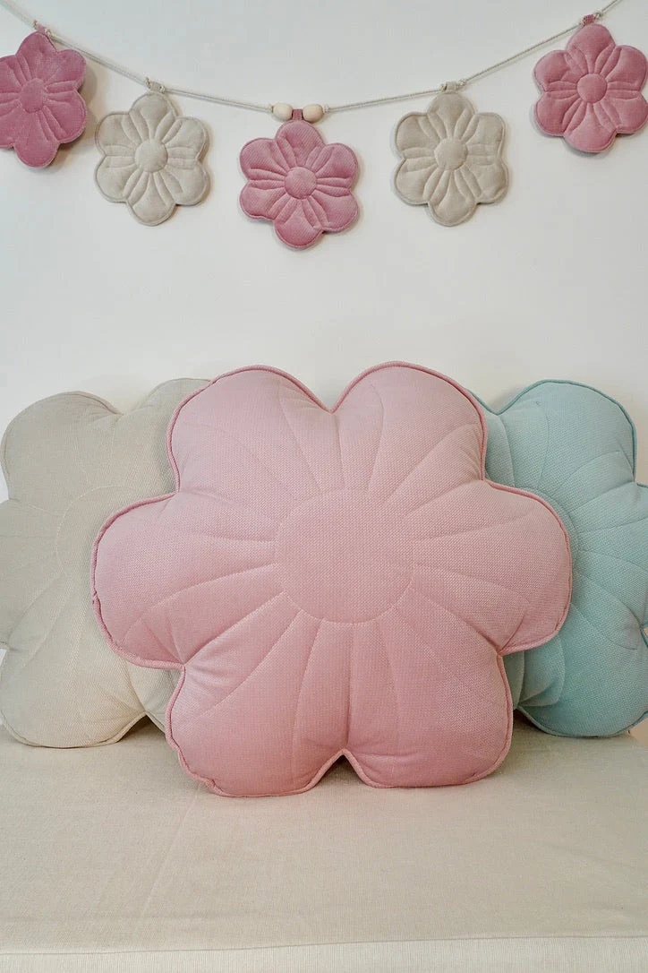 This fluffy flower-shaped cushion is carefully sewn from high-quality velvet fabric. The muted tone is inspired by the natural colors of plants making it especially compatible with light, pastel interiors.
