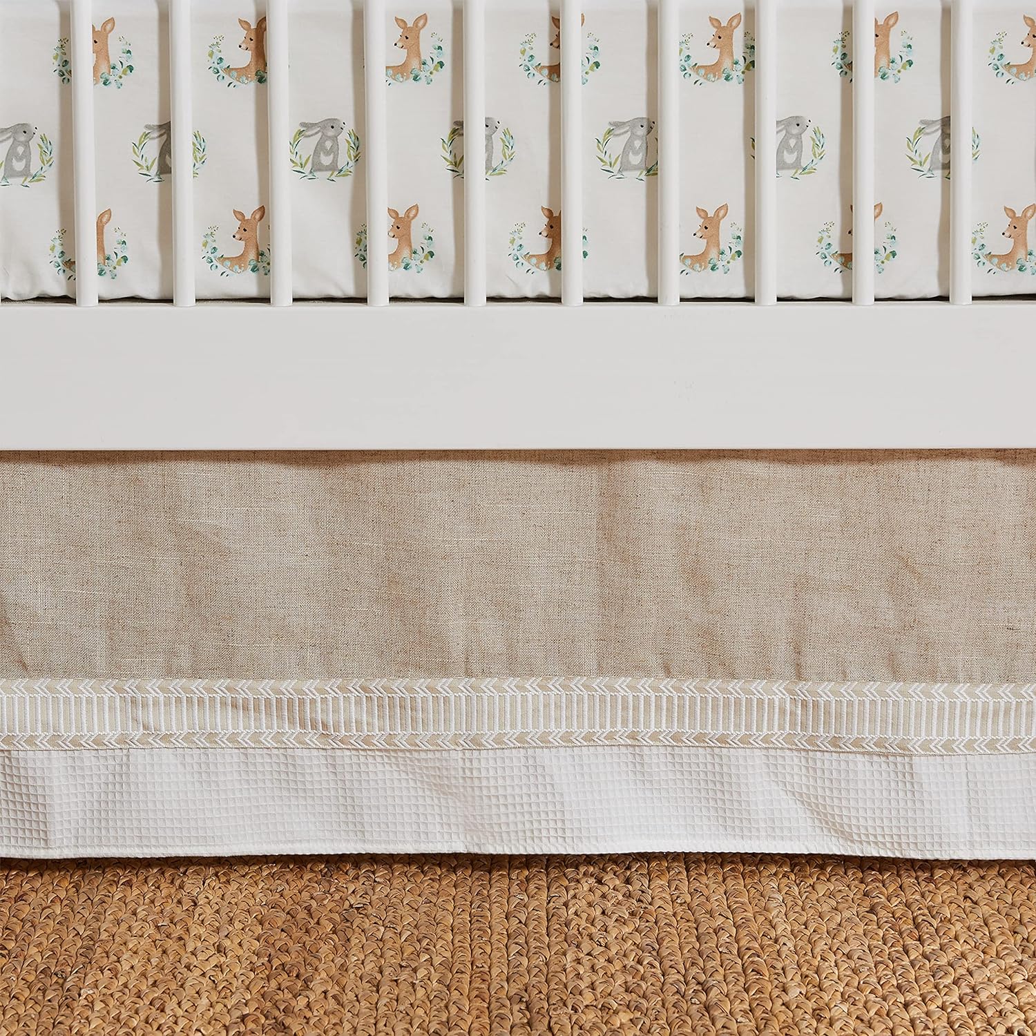 - ADORABLE WOODLAND FRIENDS THEME: You will think you are fantastic woodland adventure surrounded by adorable animal friends with our adorable woodland babies look. The fitted sheet is rows of cute deer and bunny portraits in brown and grey on a cream groun