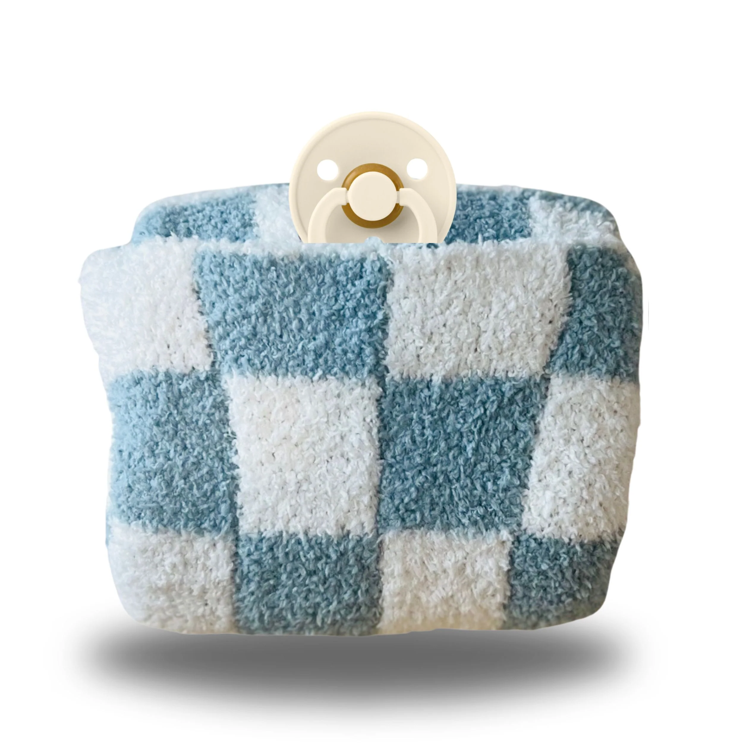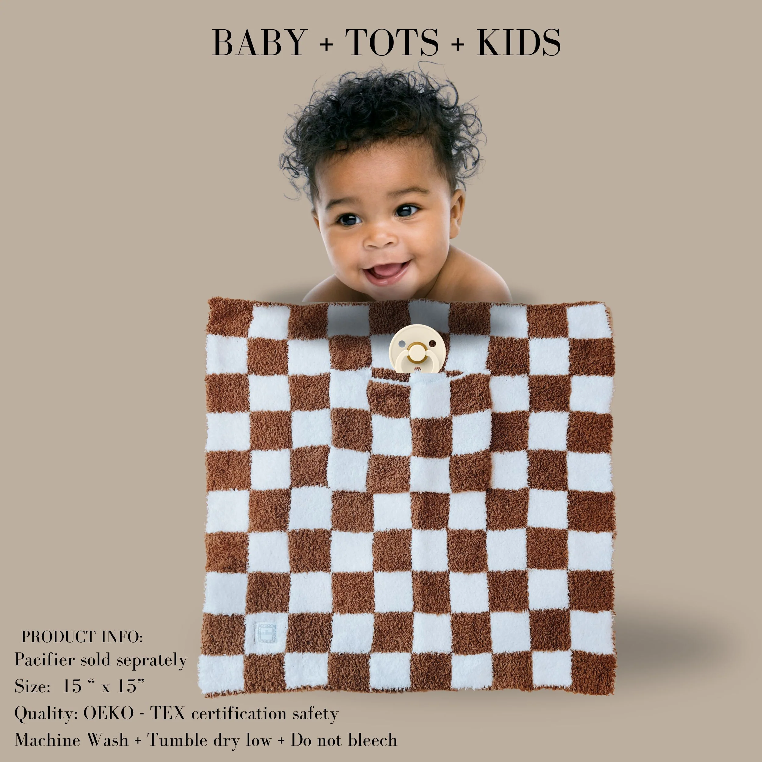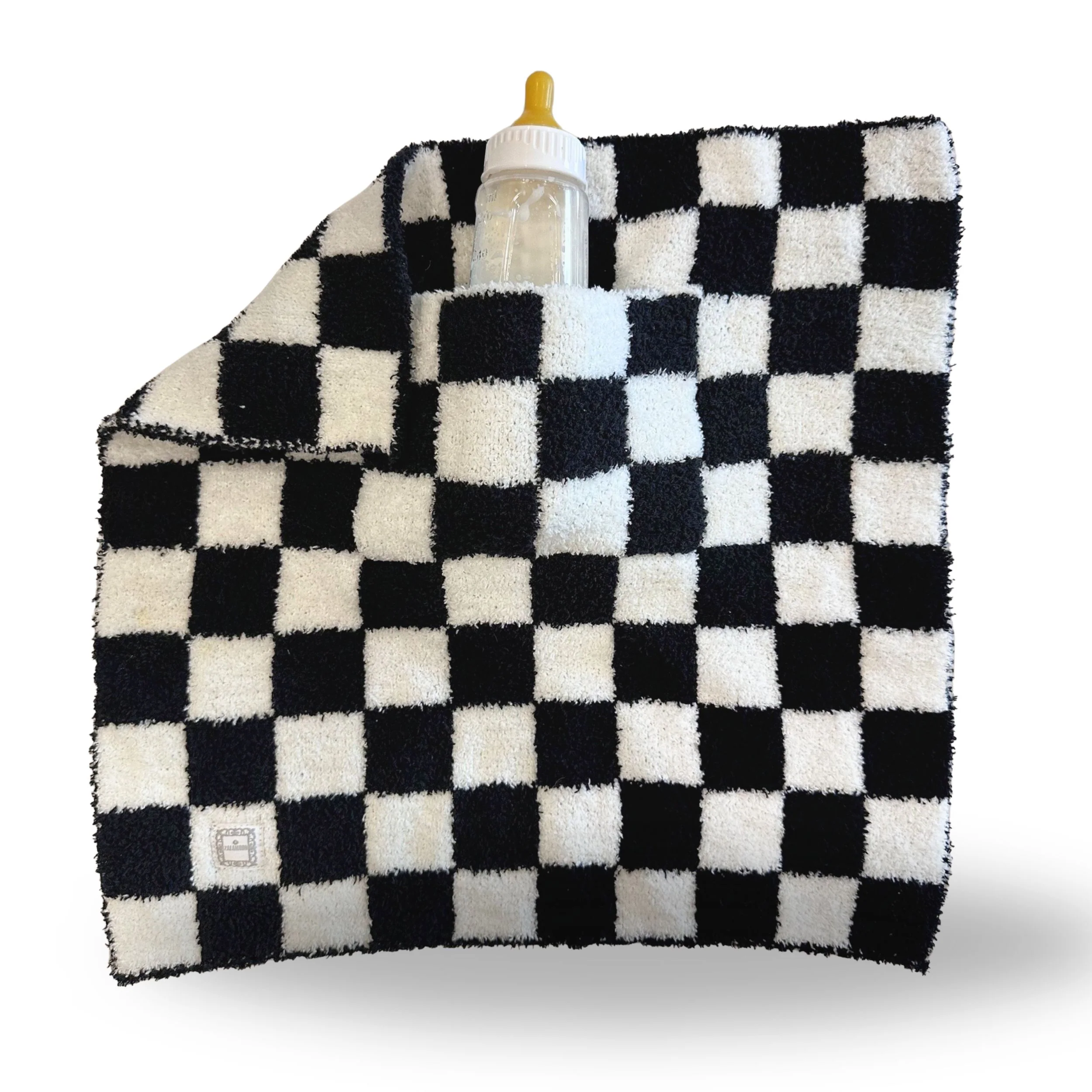 This plush checkered ZALAMOON mini-blanket has a sweet pocket for stashing their favorite toy, pacifier or snack. The smaller size makes it great for on-the-go soothing.