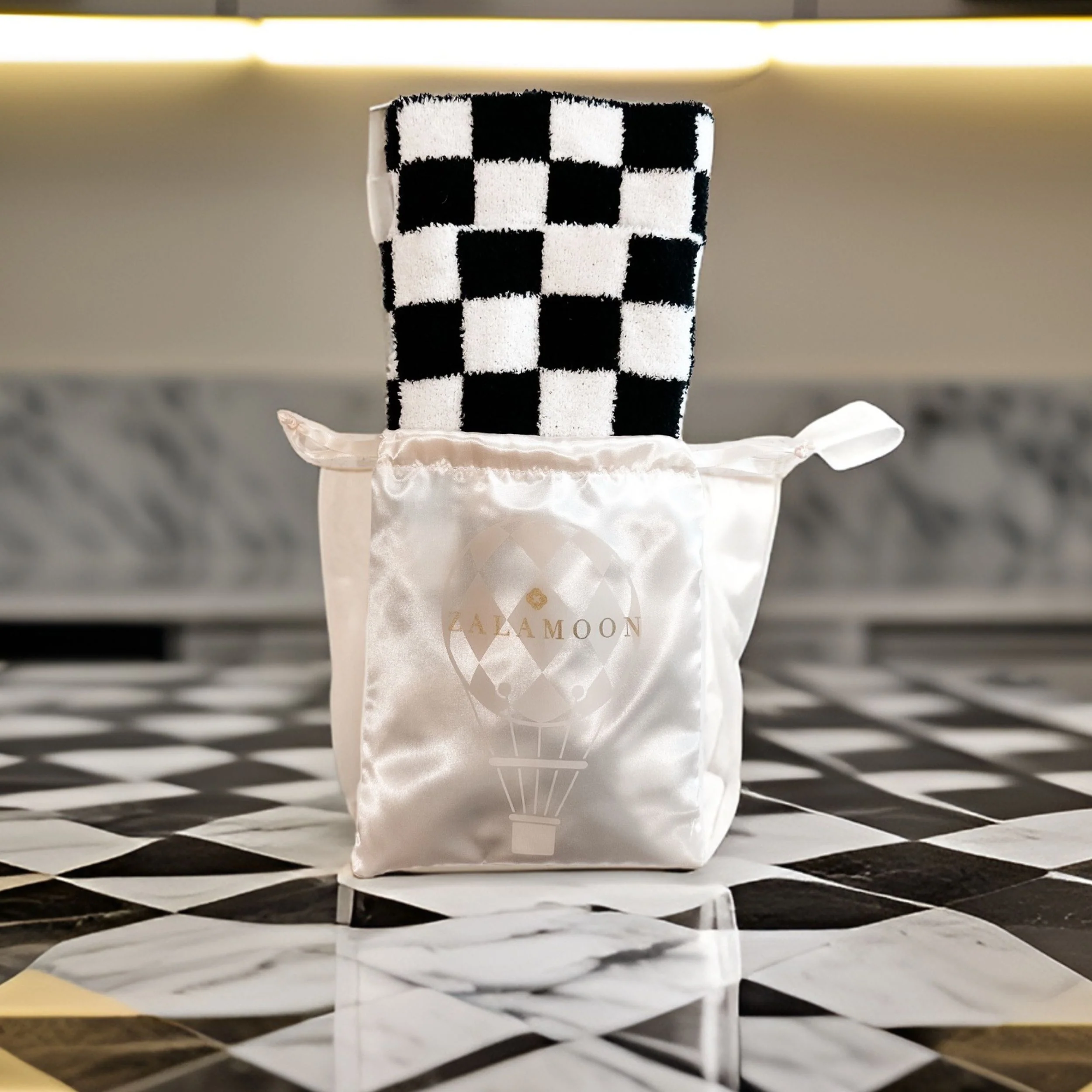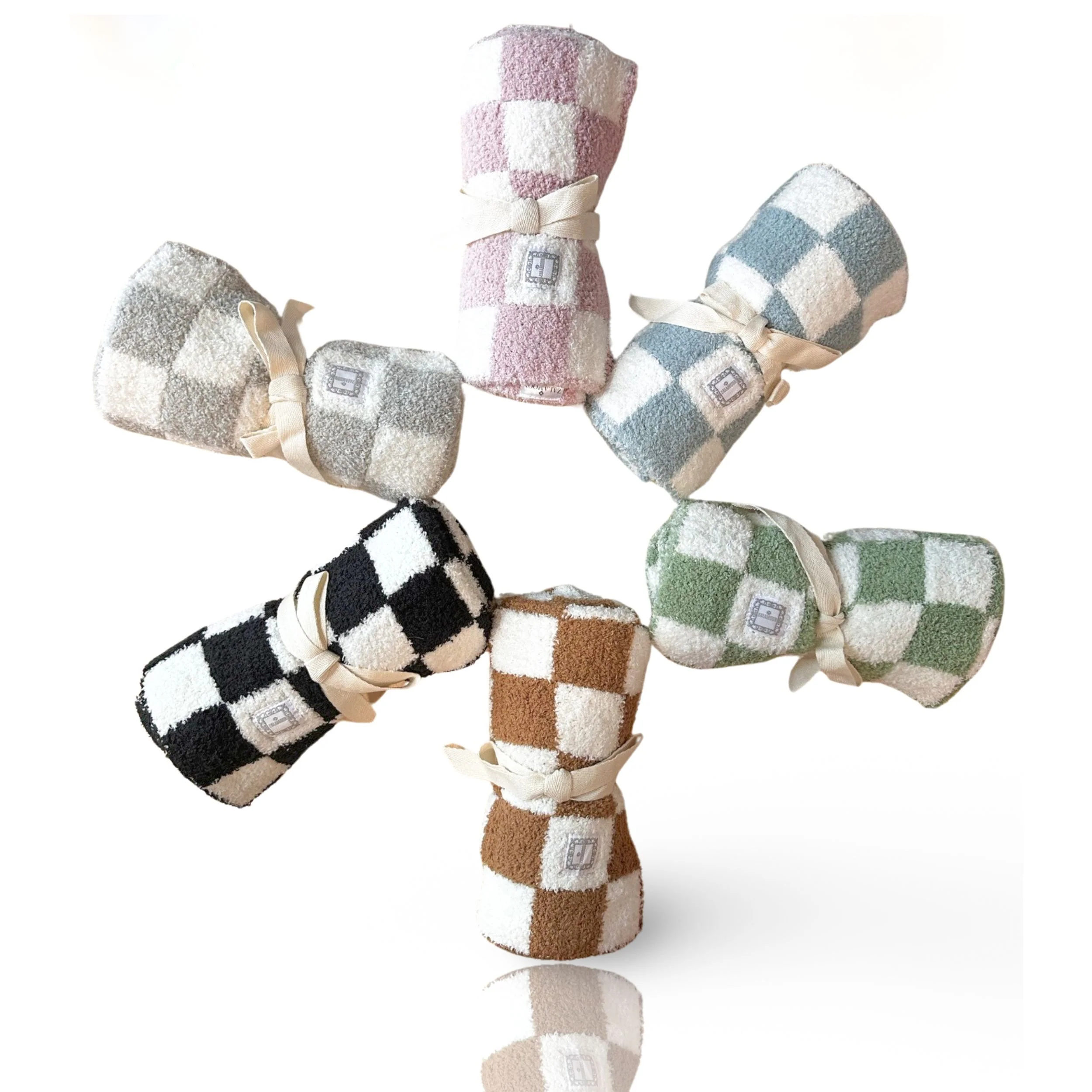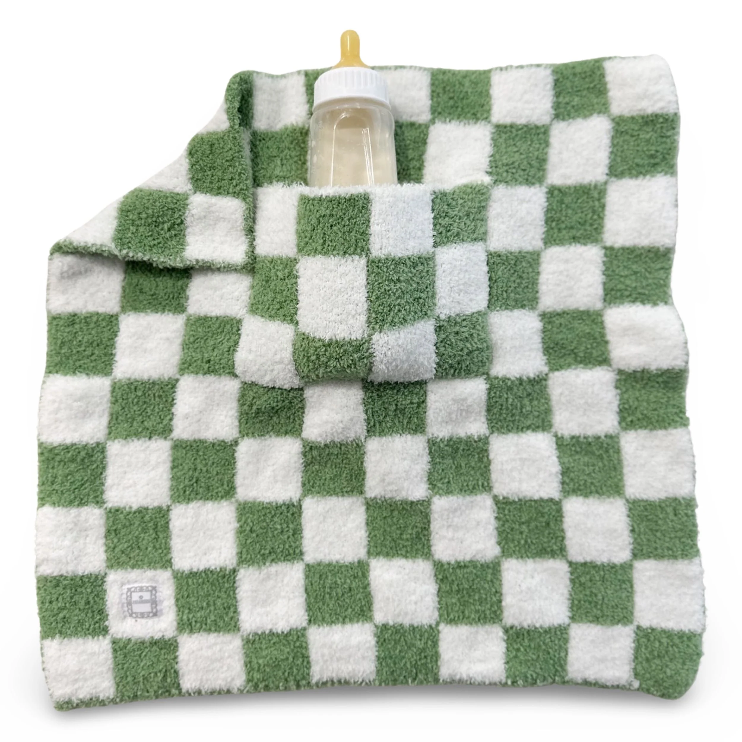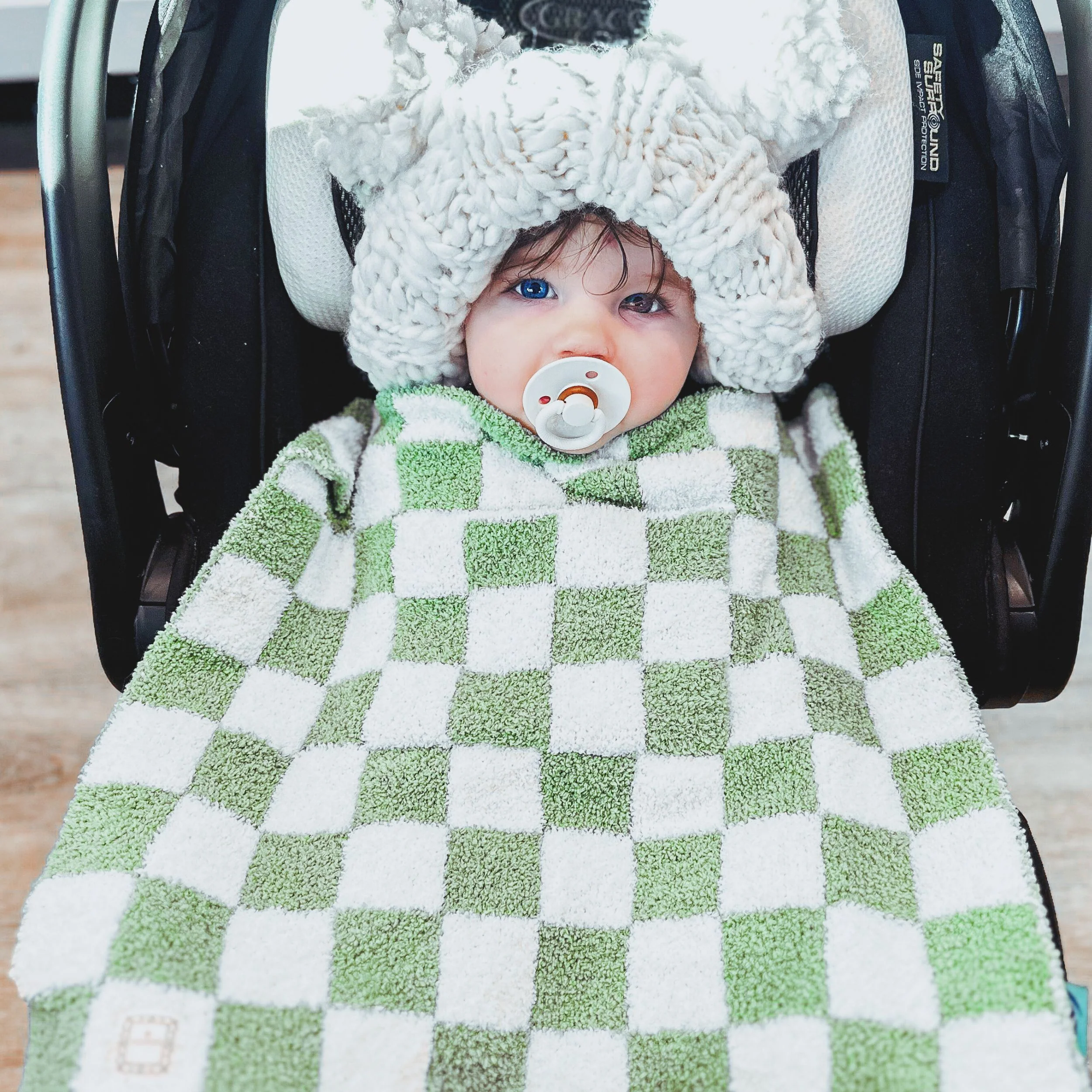 This plush checkered ZALAMOON mini-blanket has a sweet pocket for stashing their favorite toy, pacifier or snack. The smaller size makes it great for on-the-go soothing.